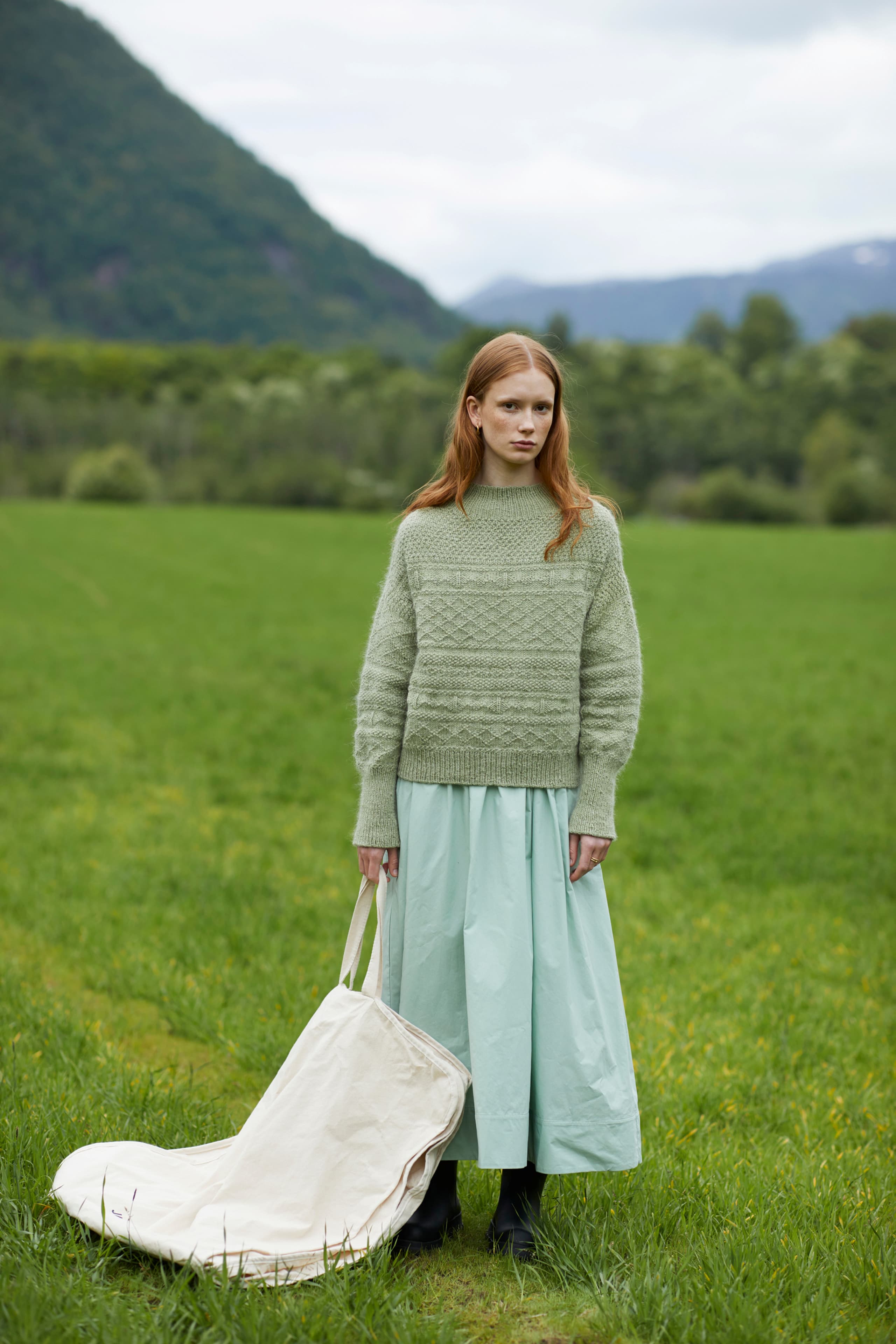 Kolleksjonen inneholder fire oppskrifter. Her finner du Vingejakken, en glattstrikket jakke med dobbeltstrikket halskant. Femjagenseren, med strukturborder av rette og vrange masker. Floriagenseren, med vakker flettestruktur og Maiagenseren, en perfekt glattstrikket v-halsgenser. Kolleksjonen er fargesatt i tidsriktige, lyse pasteller, komplementert med dype jordtoner og en knæsj oransje for å gi kolleksjonen det lille ekstra.