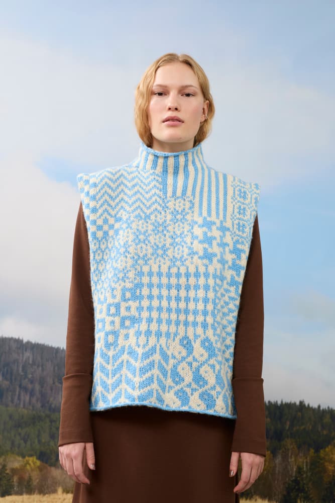 Den ikoniske Nordic Mix Sweater, som Laura designet for magasinet vårt Fremstrikk i 2023, har blitt en stor favoritt blant strikkere. Genseren er inspirert av tradisjonsstrikk fra de nordiske landene og det kontrastrike mønsteret er en sammensetning av mange forskjellige mønstre.