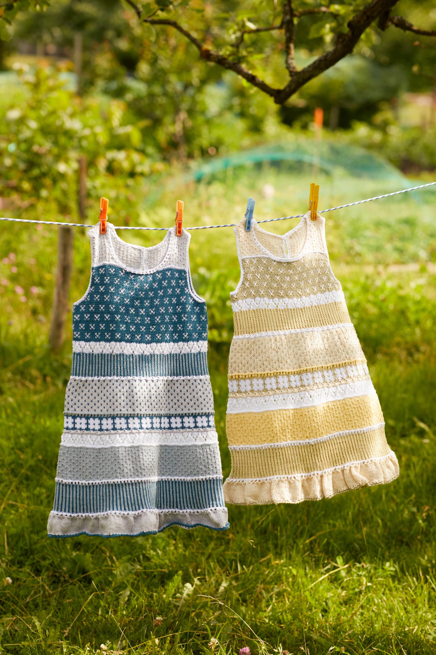 Petrinekjolen har mange vokst opp med og nå kan du strikke den til dine egne barn eller barnebarn! Denne populære oppskriften har blitt en favoritt blant bestemødre, som ofte strikker flere. Den er morsom å strikke og barna elsker den! De nye, friske fargene gir en skikkelig glad-følelse, og kjolen passer til de aller fleste anledninger. Med sitt nostalgiske preg bringer den frem gode sommerminner og barndomsøyeblikk.