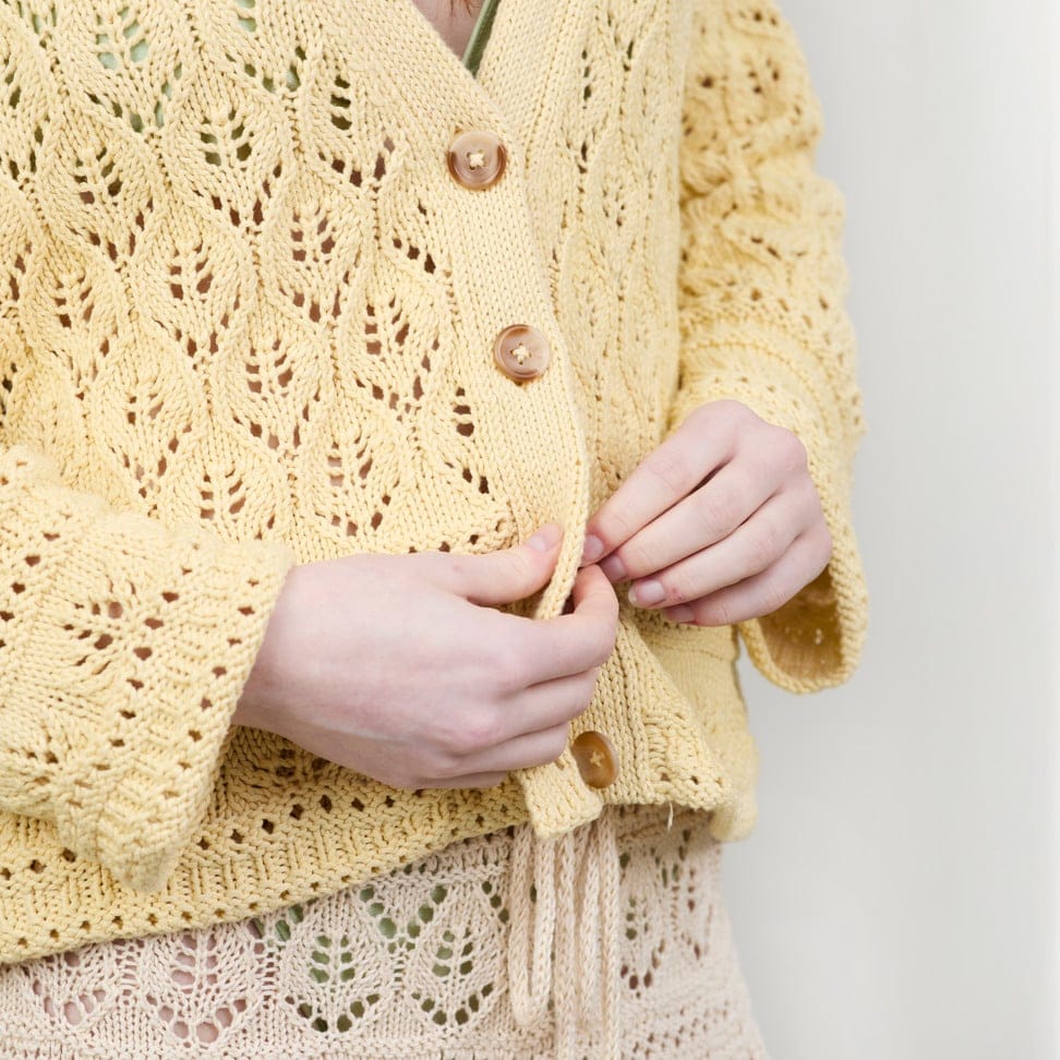 Blonder gir en følelse av eleganse og romantikk, og strikkes i bomull som lar huden puste. Plaggene er designet for å kunne styles på flere måter, enten du velger å kombinere topp og skjørt som et sett, eller jakke og topp som et twin-set.