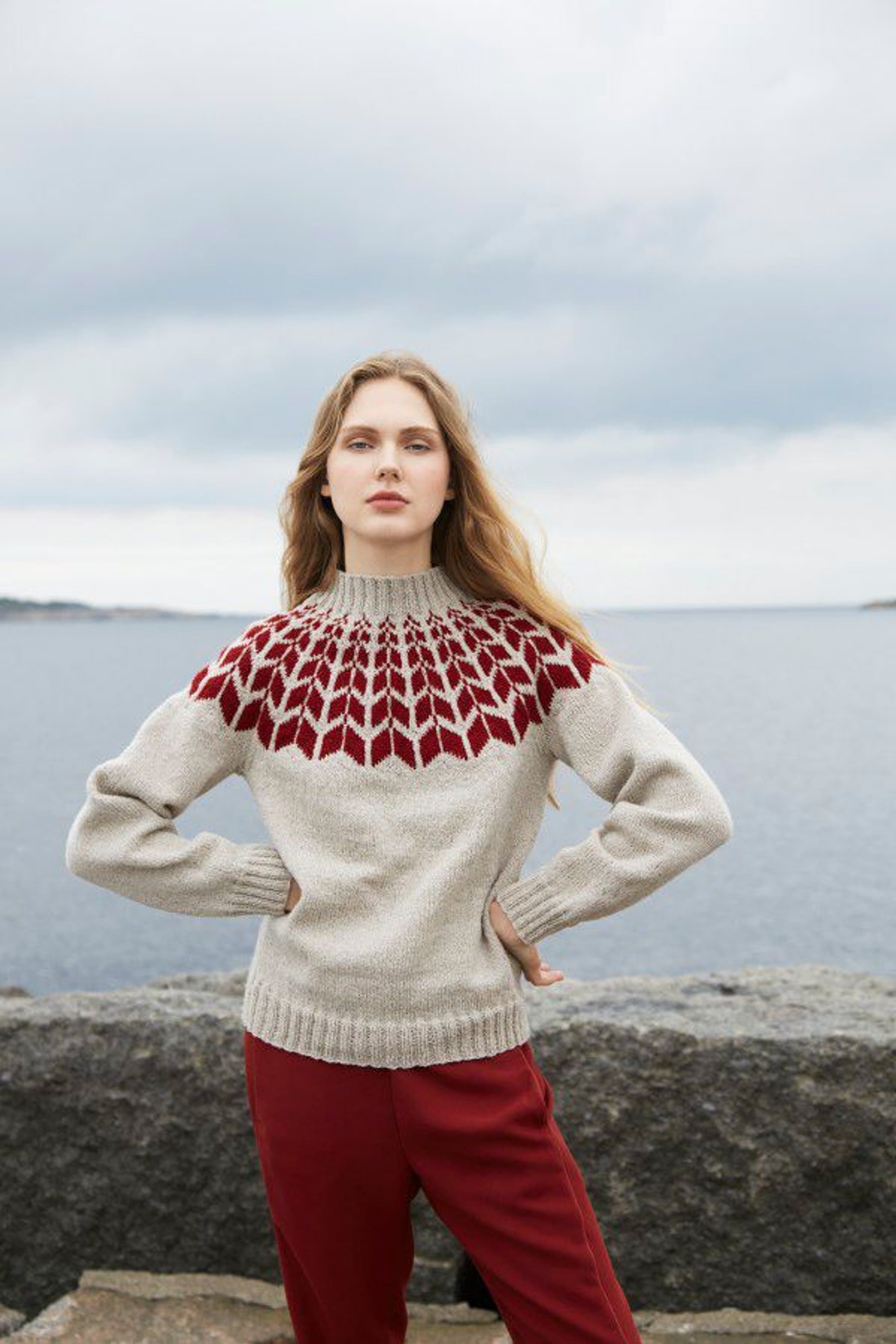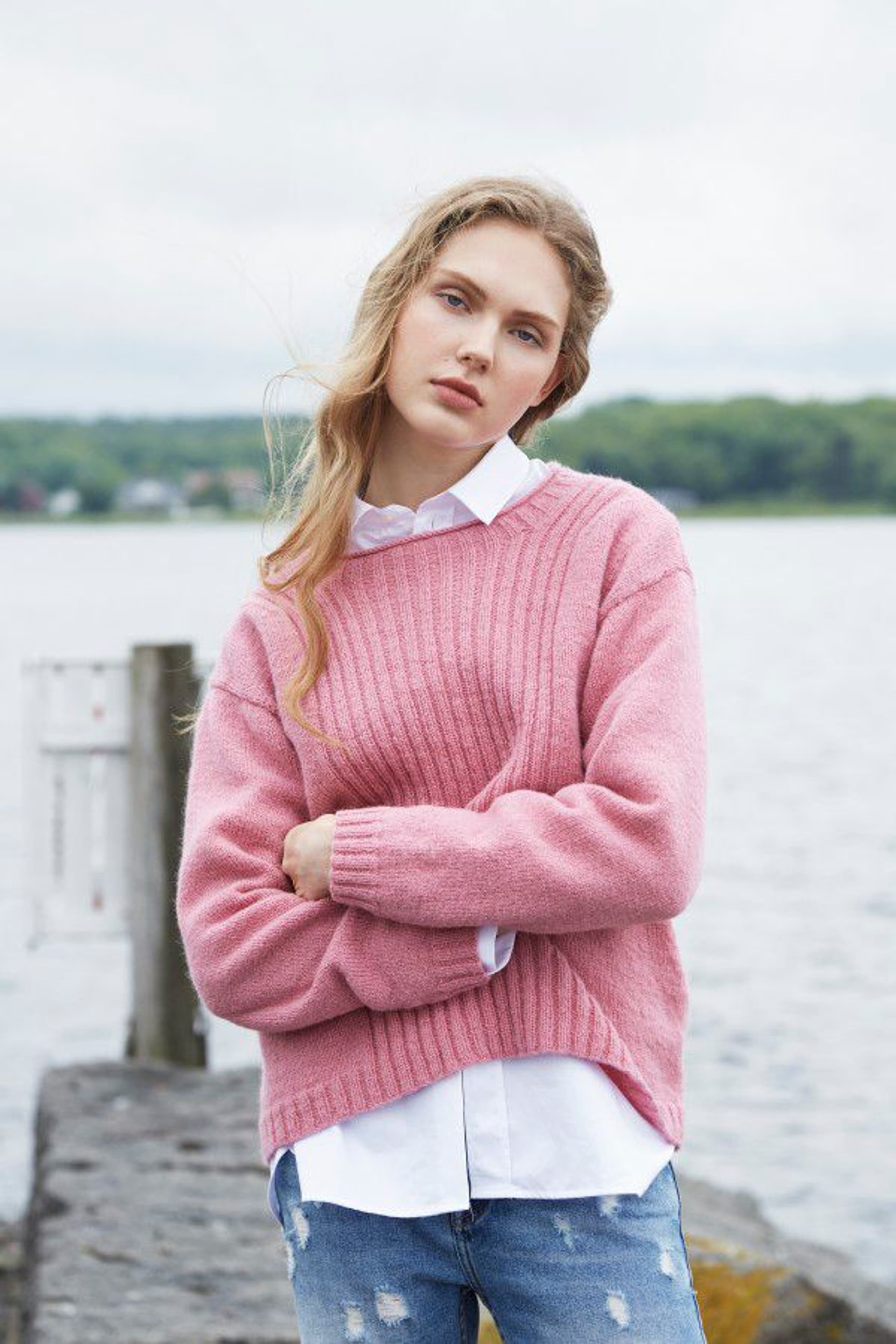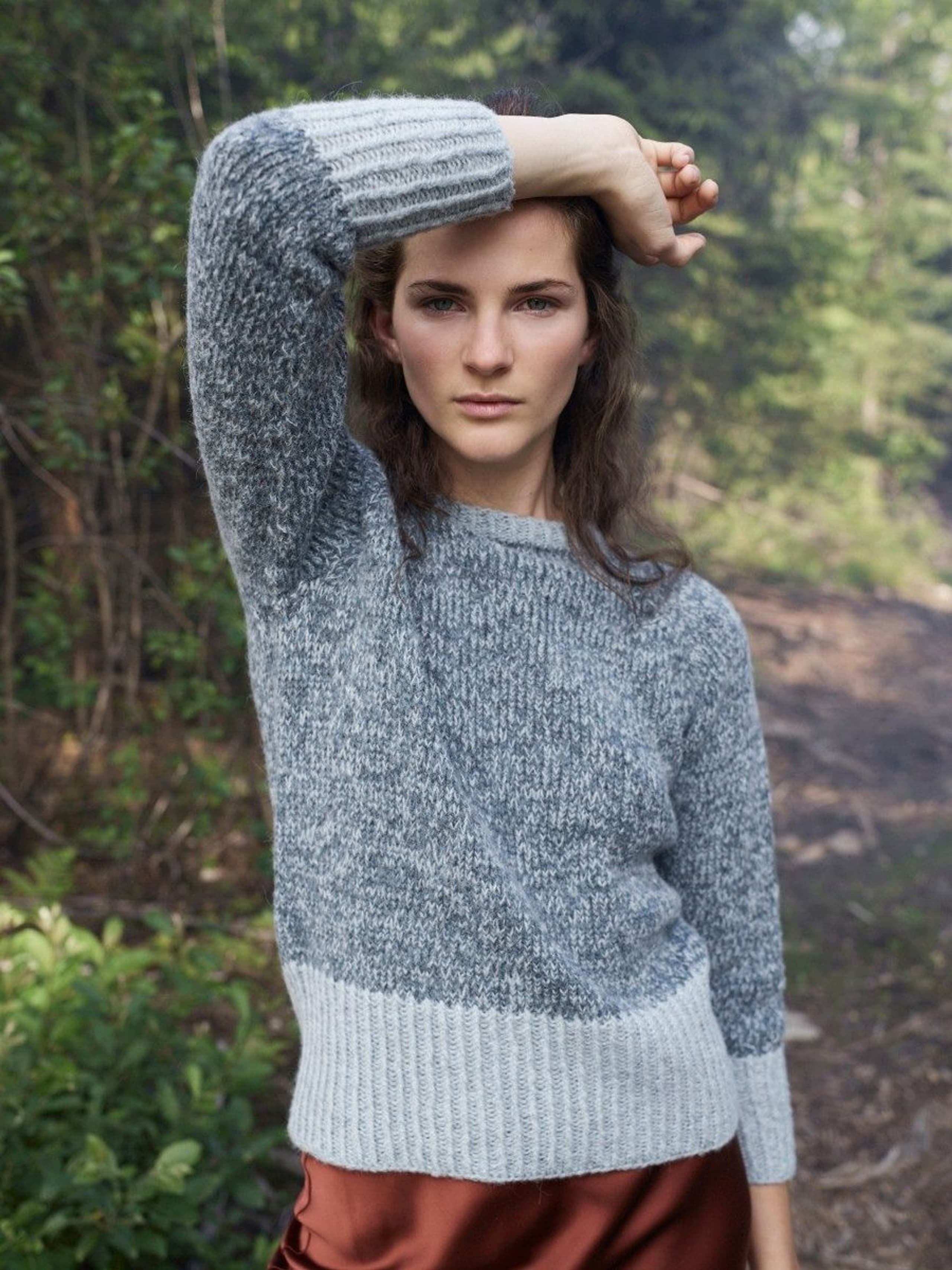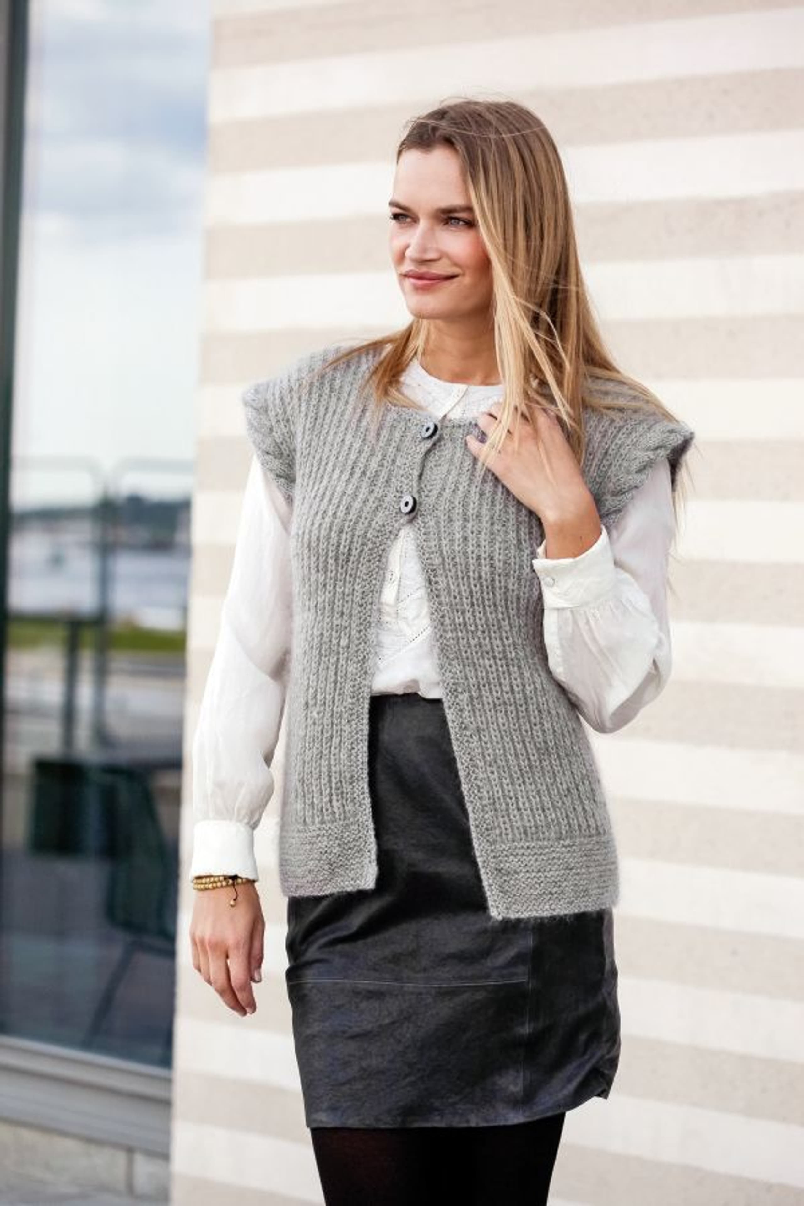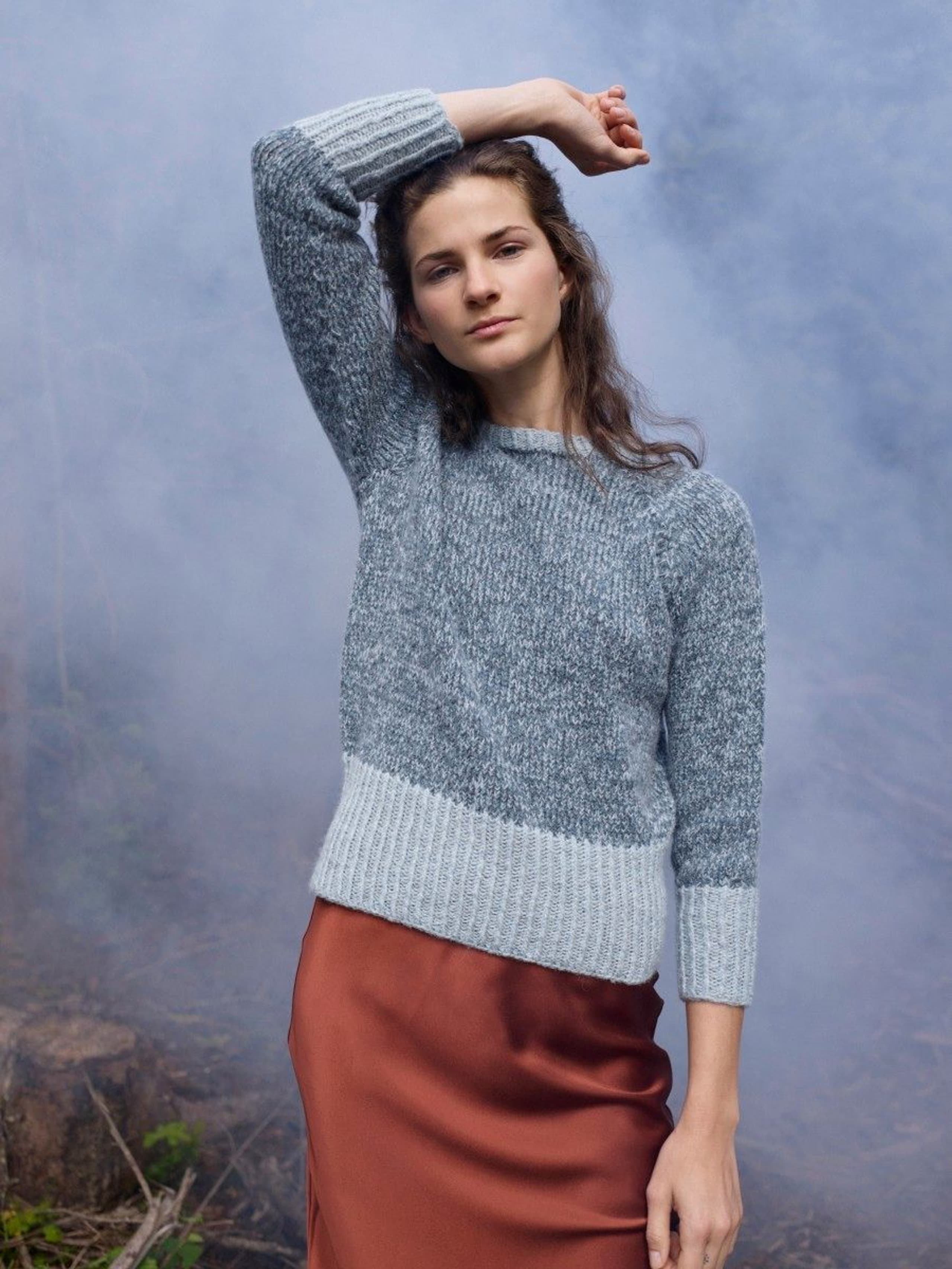 Garnkombinasjoner og forslag til strikkefasthet (p): Husk å strikke prøvelapp. Finull + Plum: 21 m = 10 cm (3,5) Finull + Alpaca Silk: 18 m = 10 cm (4) Finull x 2: 16 m = 10 cm (4,5) Finull x 2 + Plum: 14 m = 10 cm (6) Finull + Plum x 2: 14 m = 10 cm (6) Finull + Alpakka Lin: 14 m = 10 cm (5,5) Garnalternativer: Tumi Pt 5 Petunia Pelini