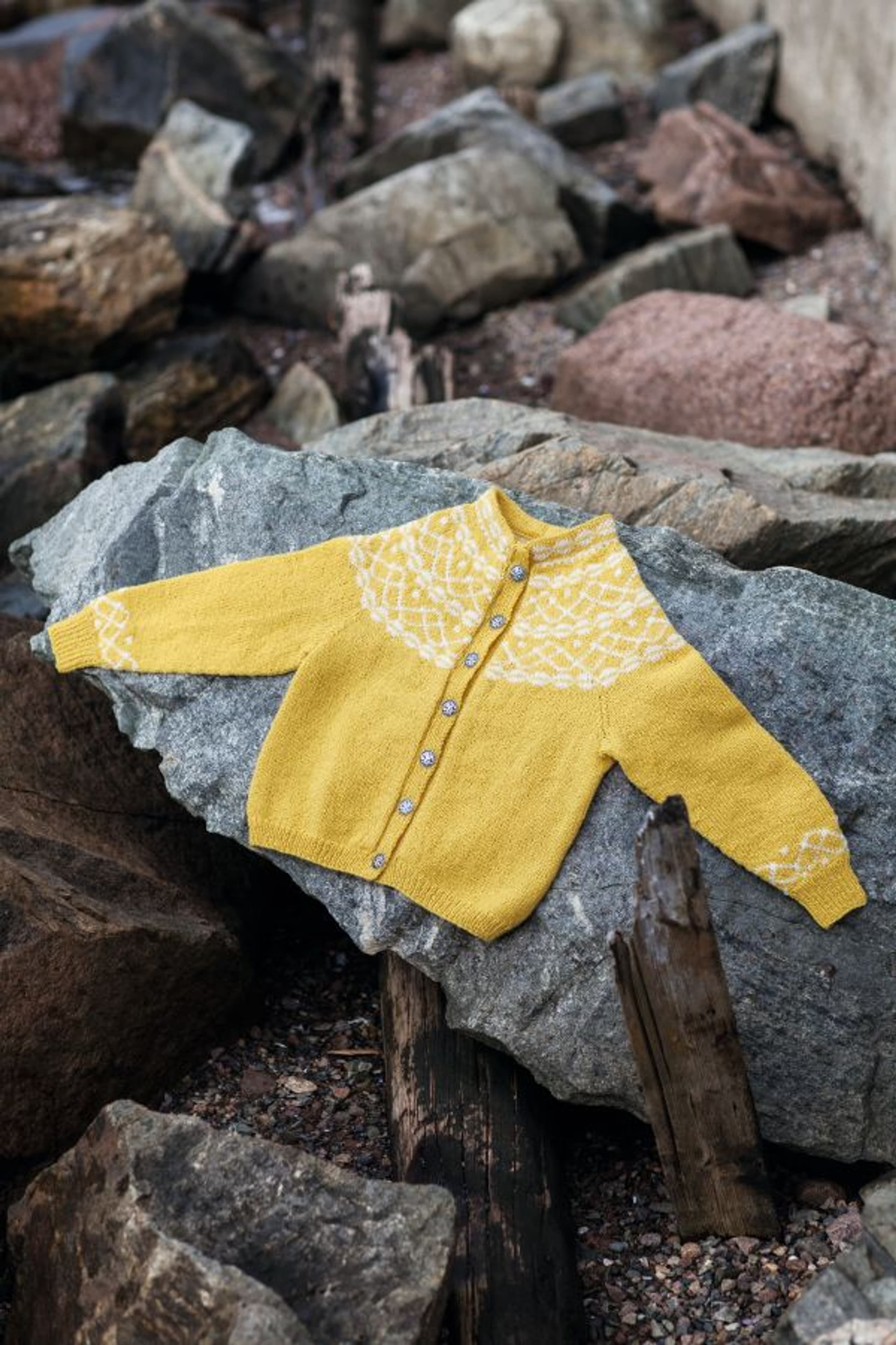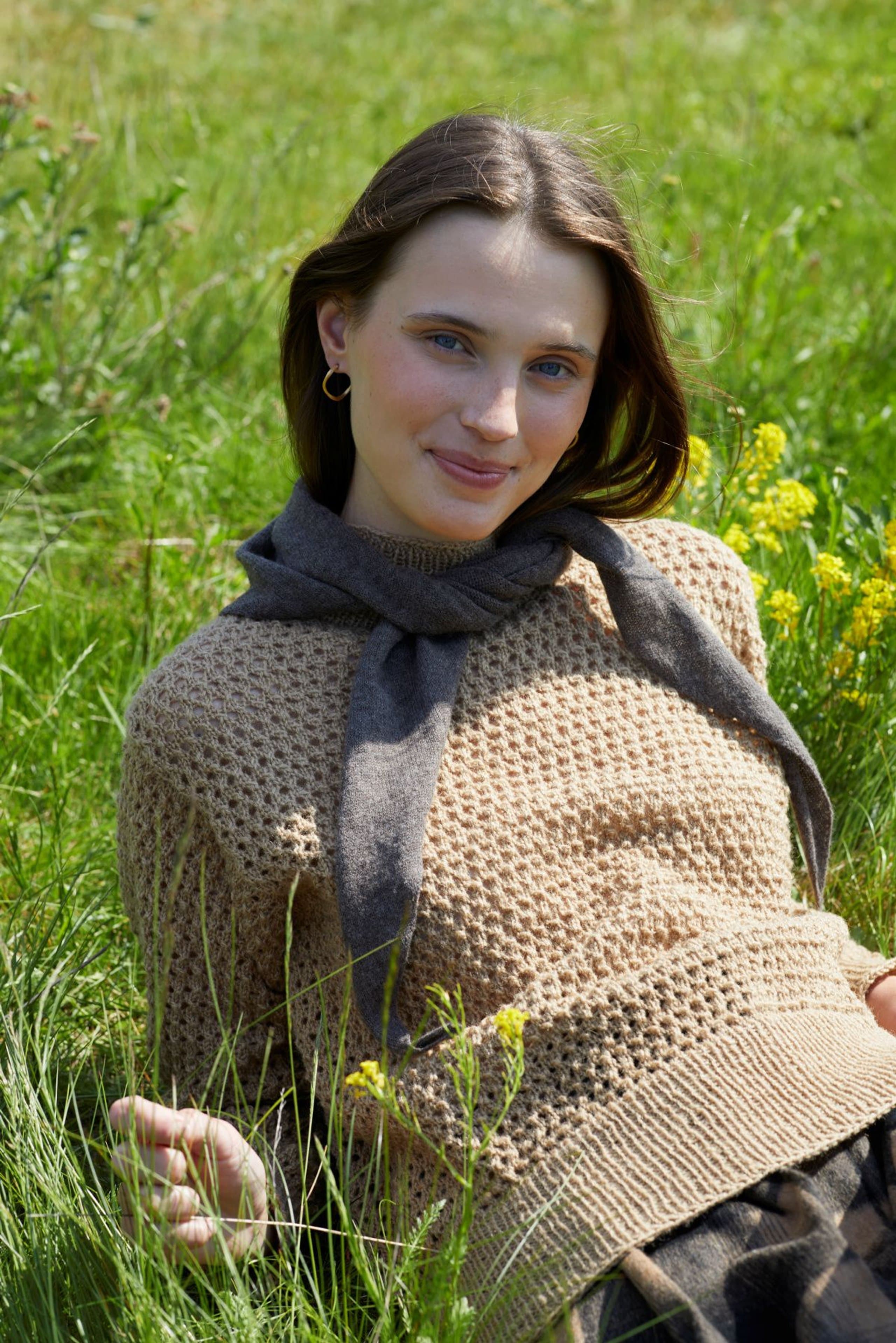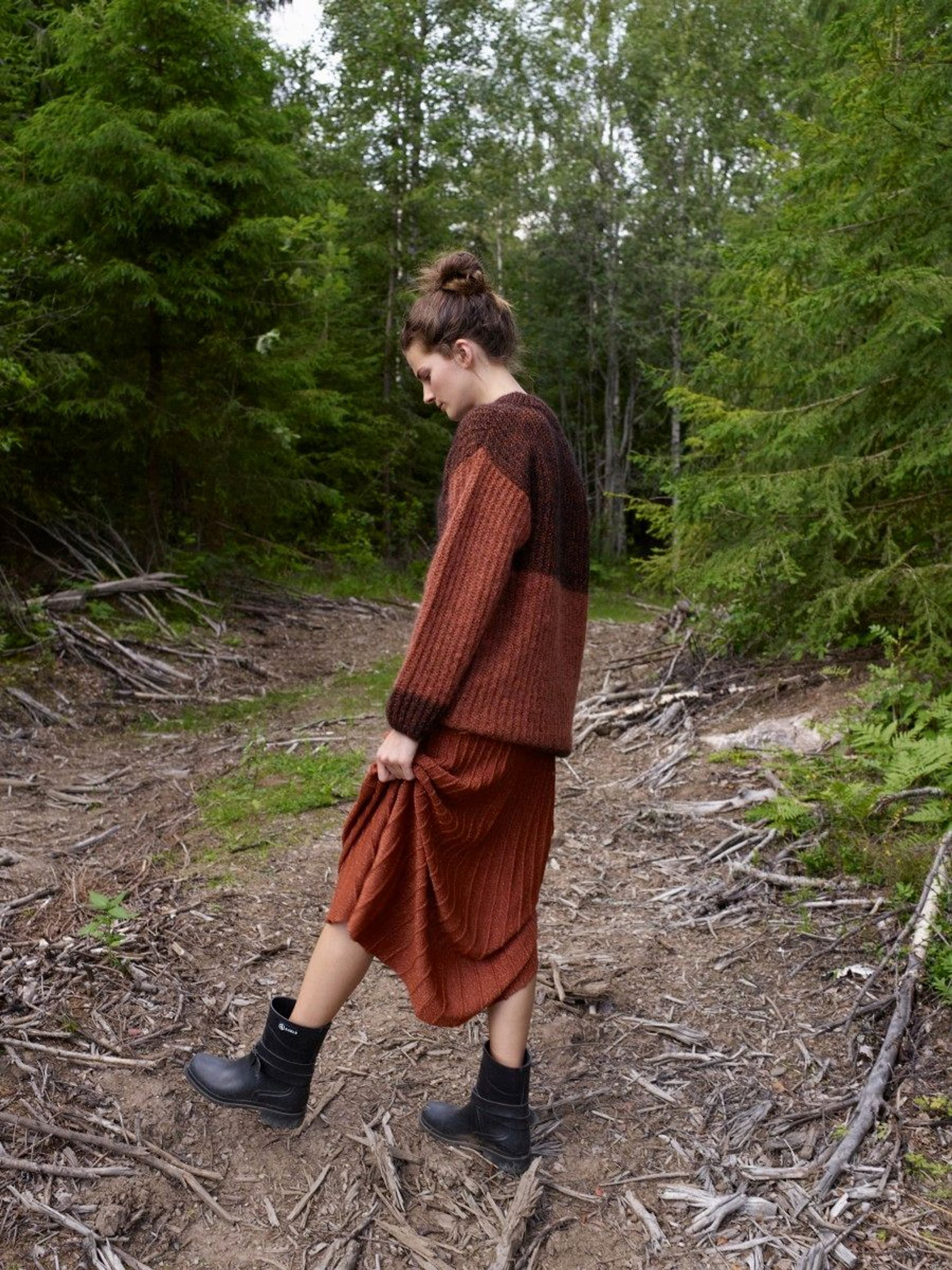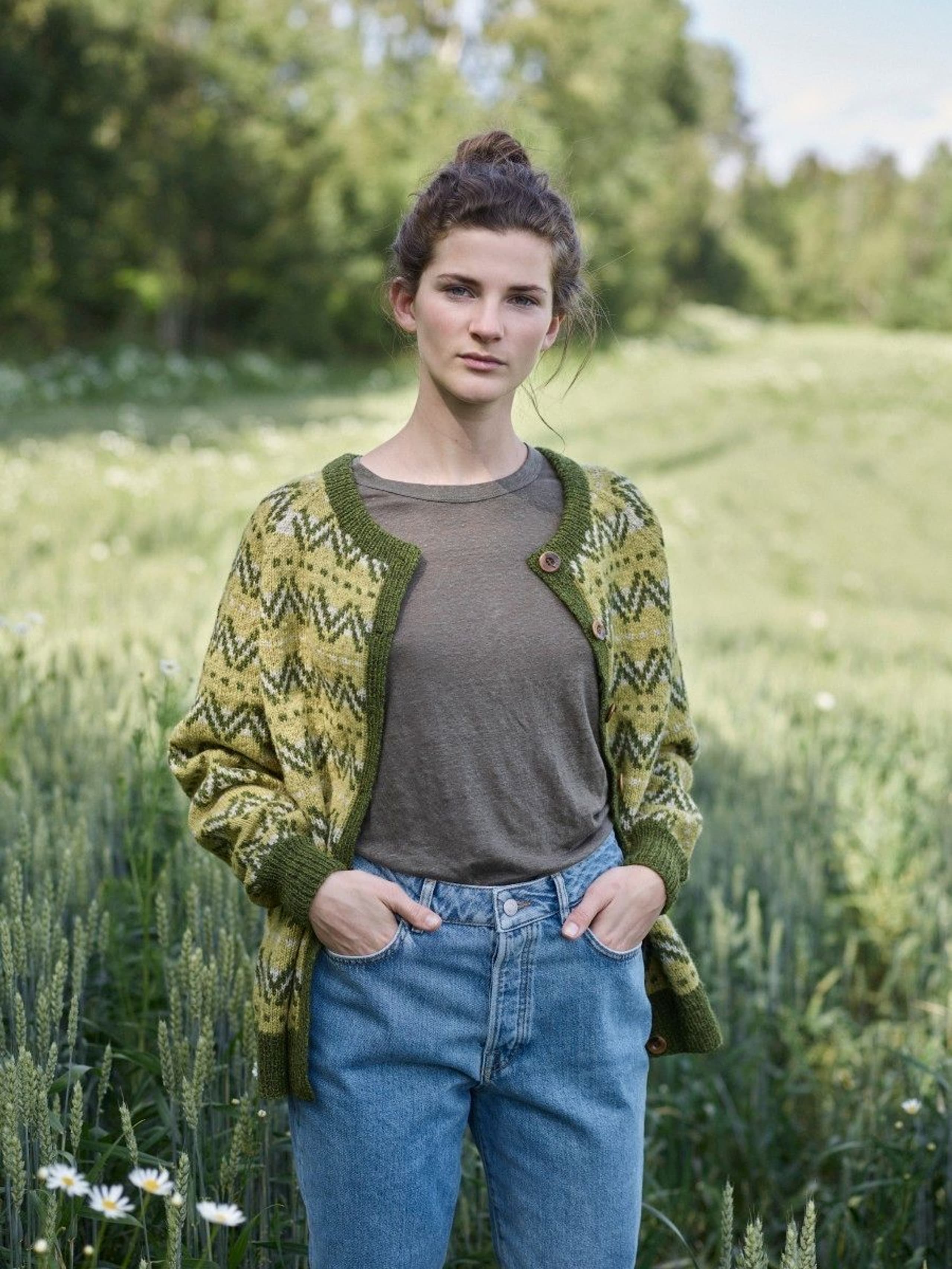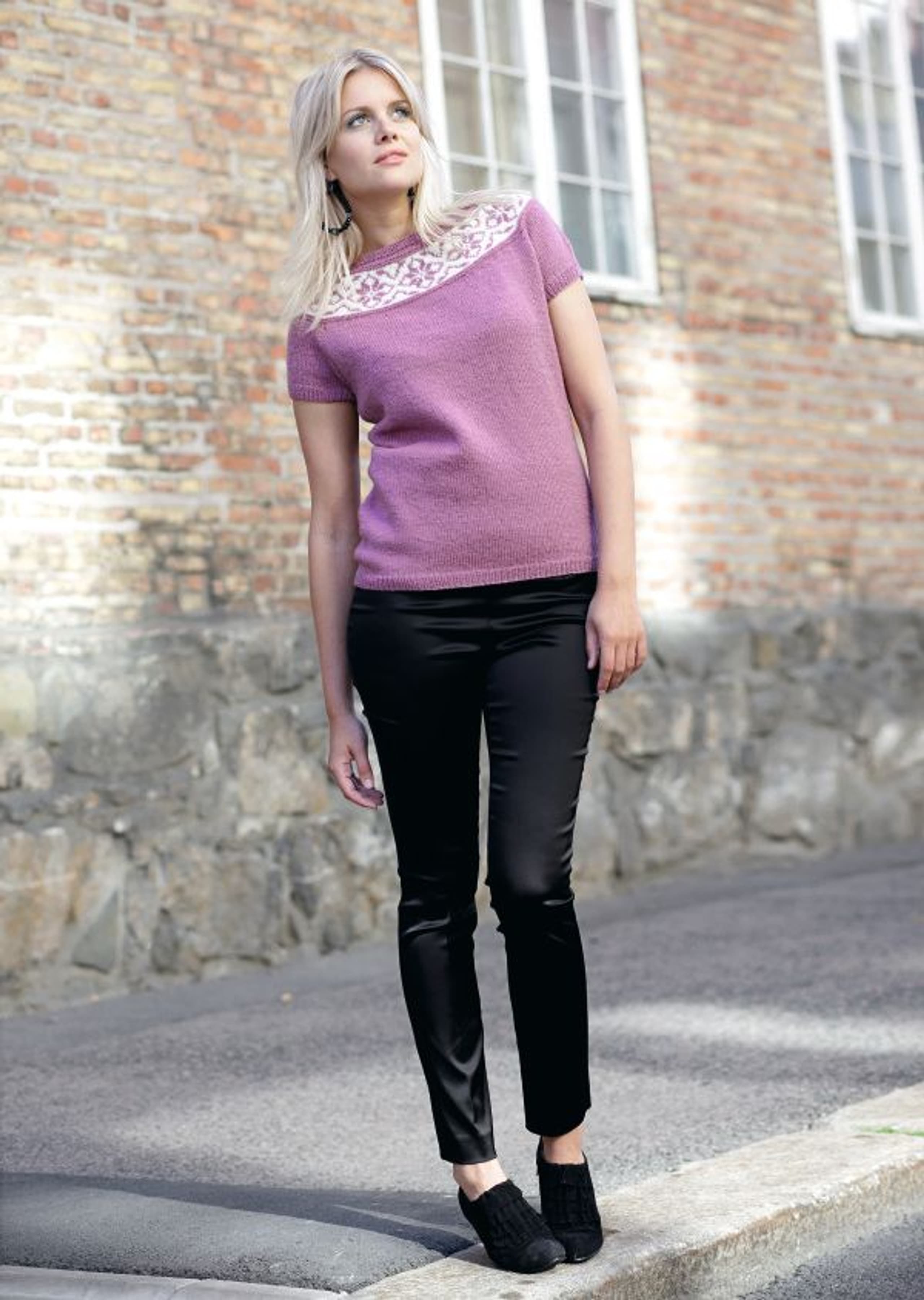 Garnkombinasjoner og forslag til strikkefasthet (p): Husk å strikke prøvelapp. Finull + Plum: 21 m = 10 cm (3,5) Finull + Alpaca Silk: 18 m = 10 cm (4) Finull x 2: 16 m = 10 cm (4,5) Finull x 2 + Plum: 14 m = 10 cm (6) Finull + Plum x 2: 14 m = 10 cm (6) Finull + Alpakka Lin: 14 m = 10 cm (5,5) Garnalternativer: Tumi Pt 5 Petunia Pelini