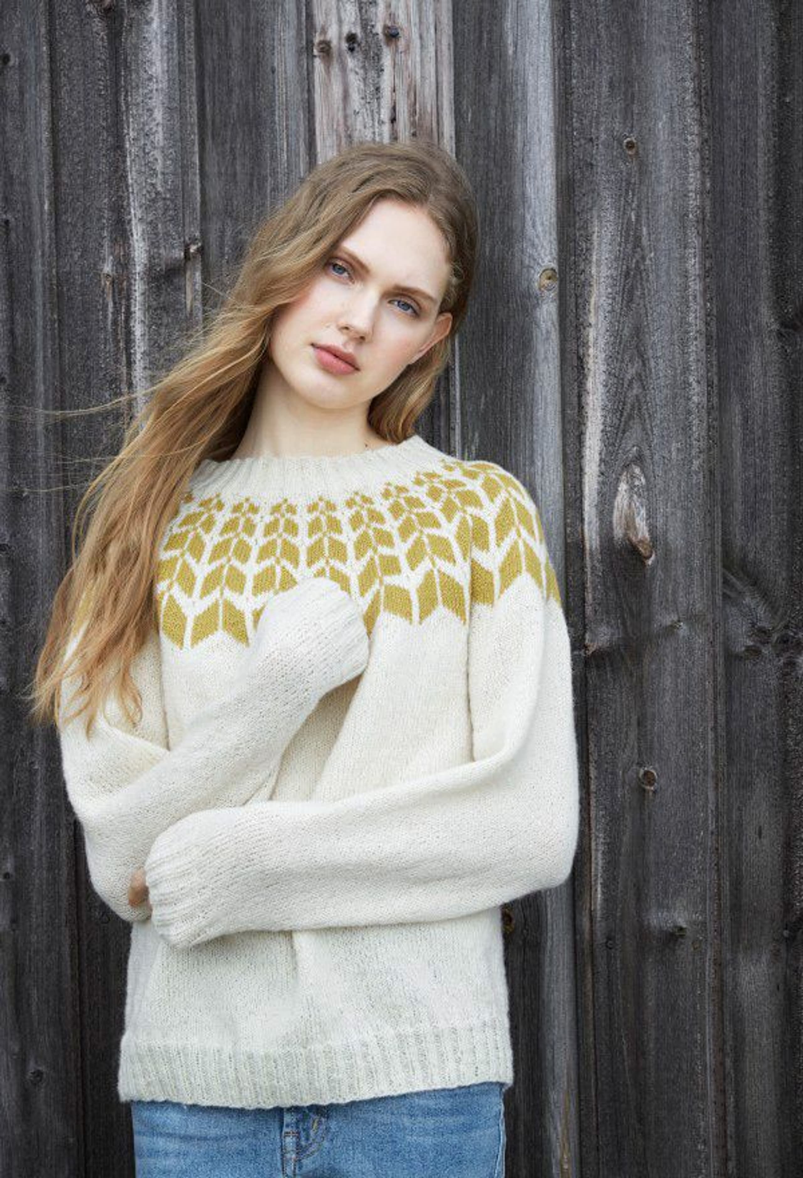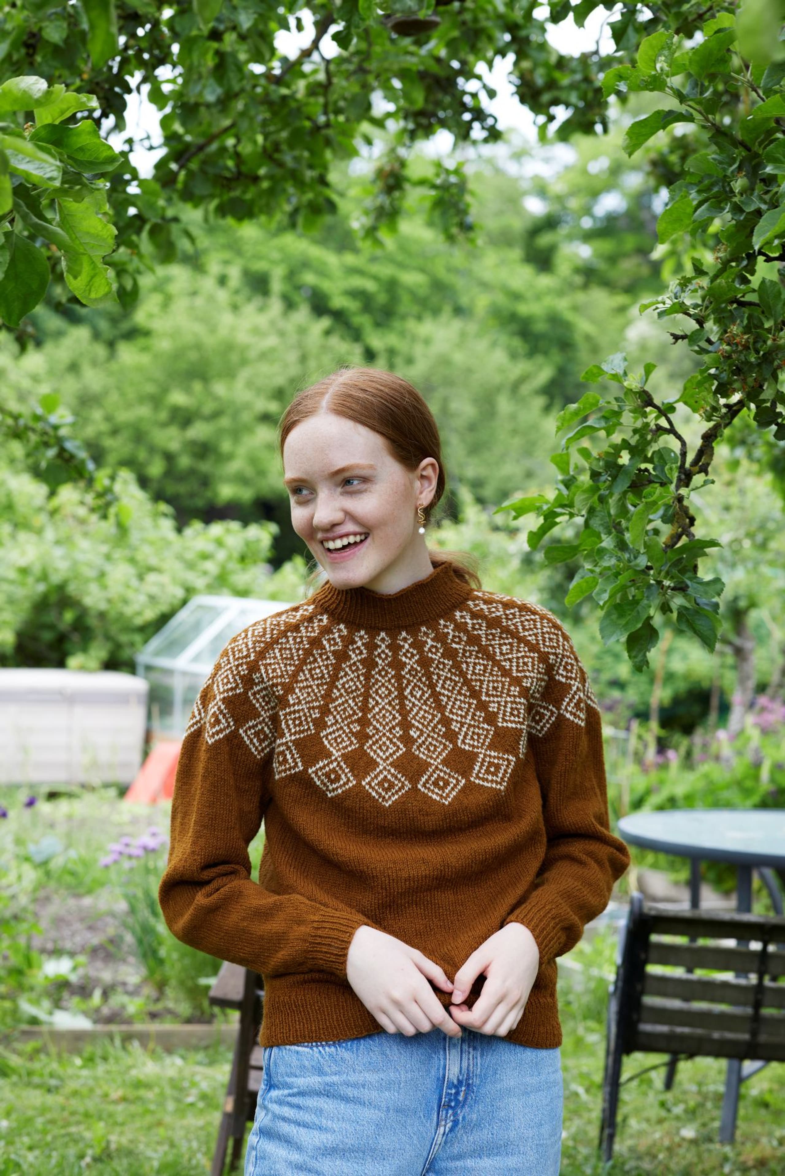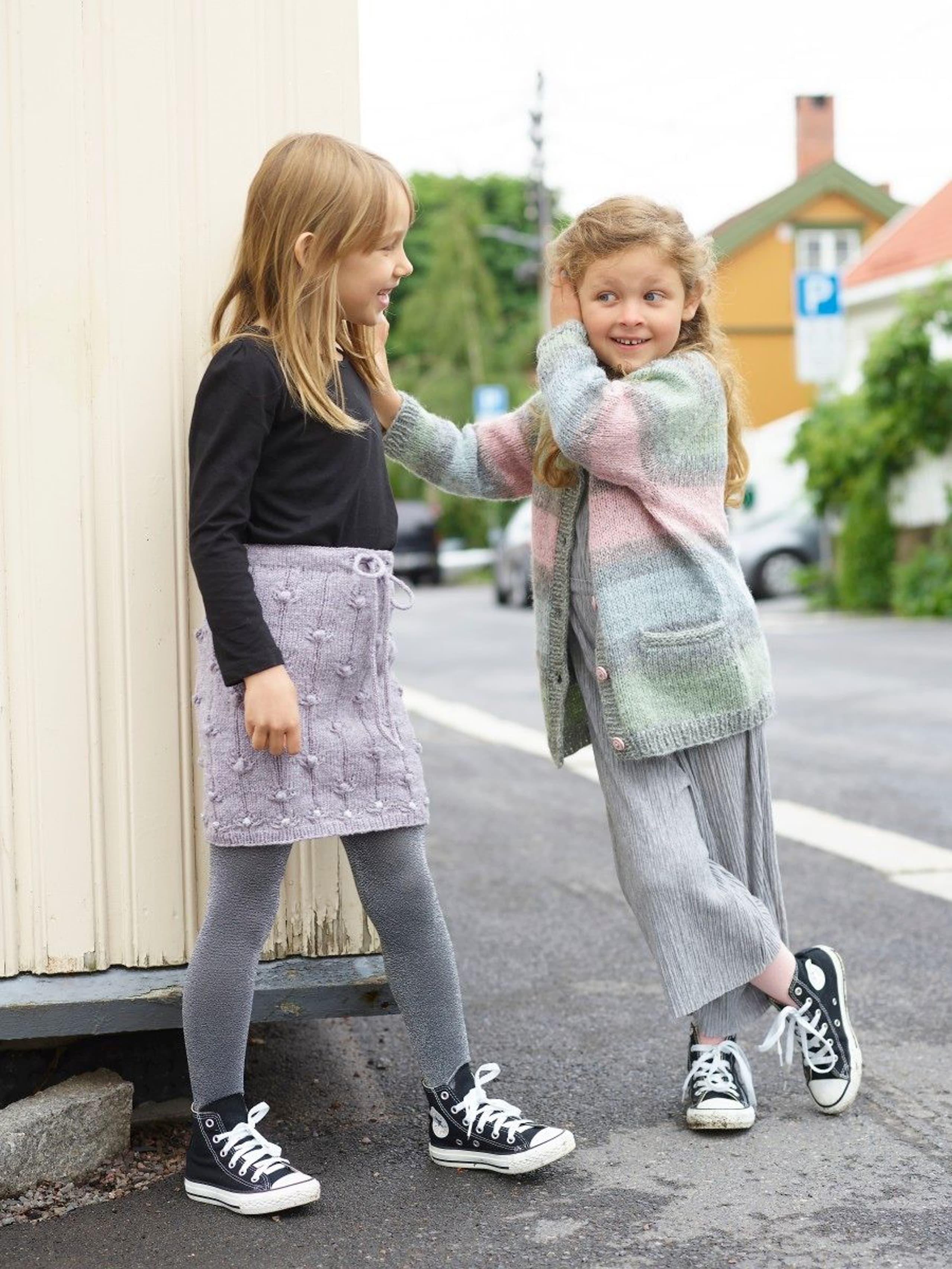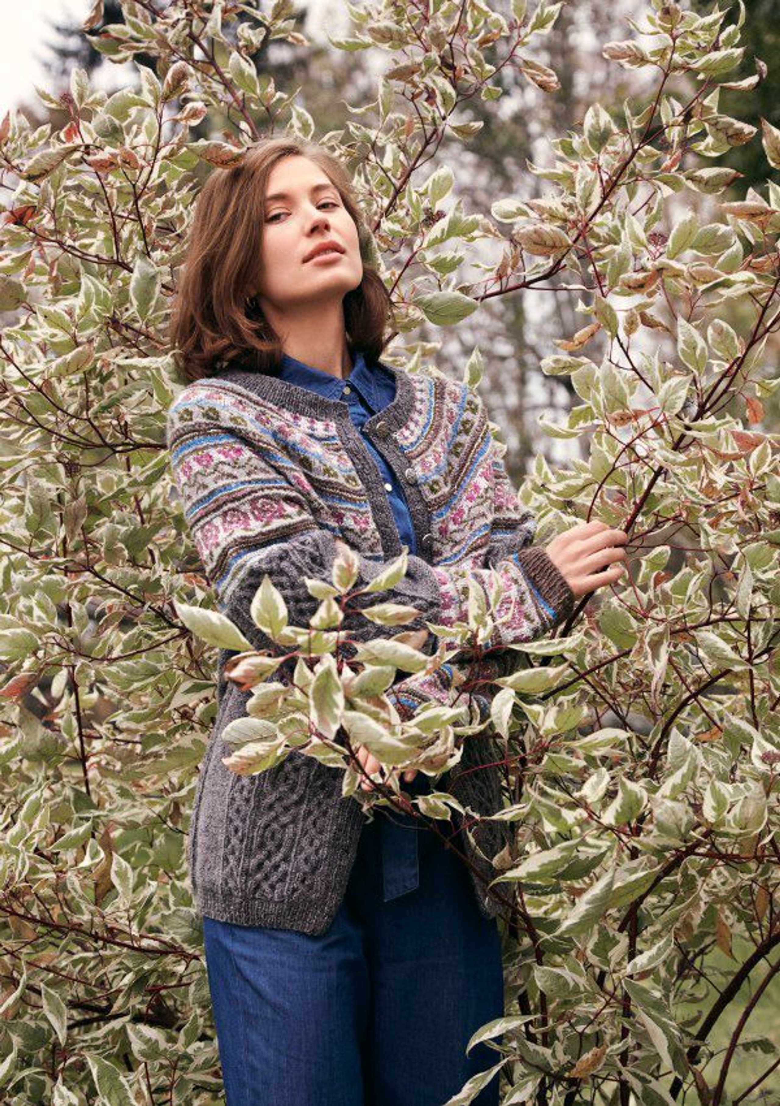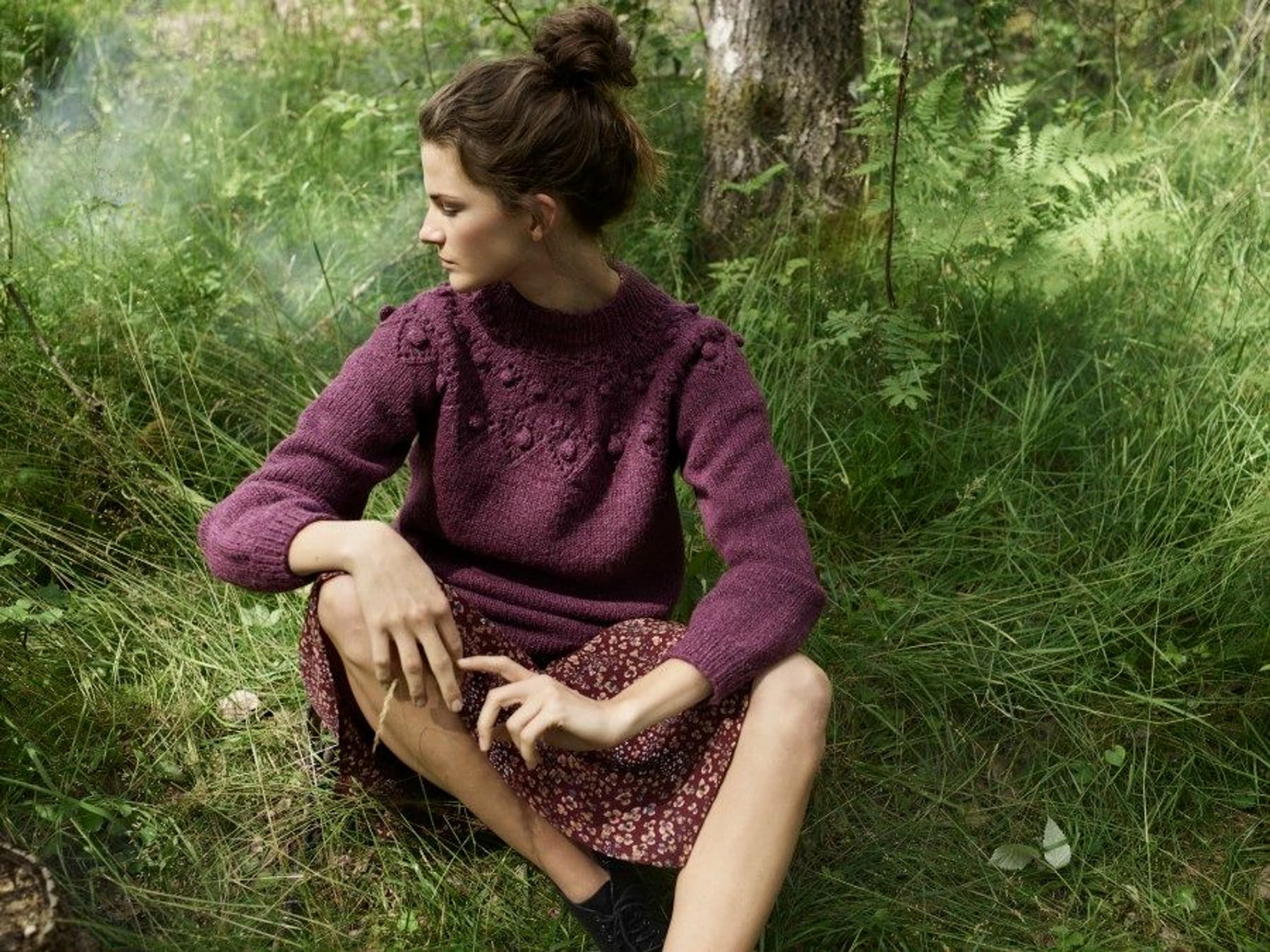 Garnkombinasjoner og forslag til strikkefasthet (p): Husk å strikke prøvelapp. Finull + Plum: 21 m = 10 cm (3,5) Finull + Alpaca Silk: 18 m = 10 cm (4) Finull x 2: 16 m = 10 cm (4,5) Finull x 2 + Plum: 14 m = 10 cm (6) Finull + Plum x 2: 14 m = 10 cm (6) Finull + Alpakka Lin: 14 m = 10 cm (5,5) Garnalternativer: Tumi Pt 5 Petunia Pelini