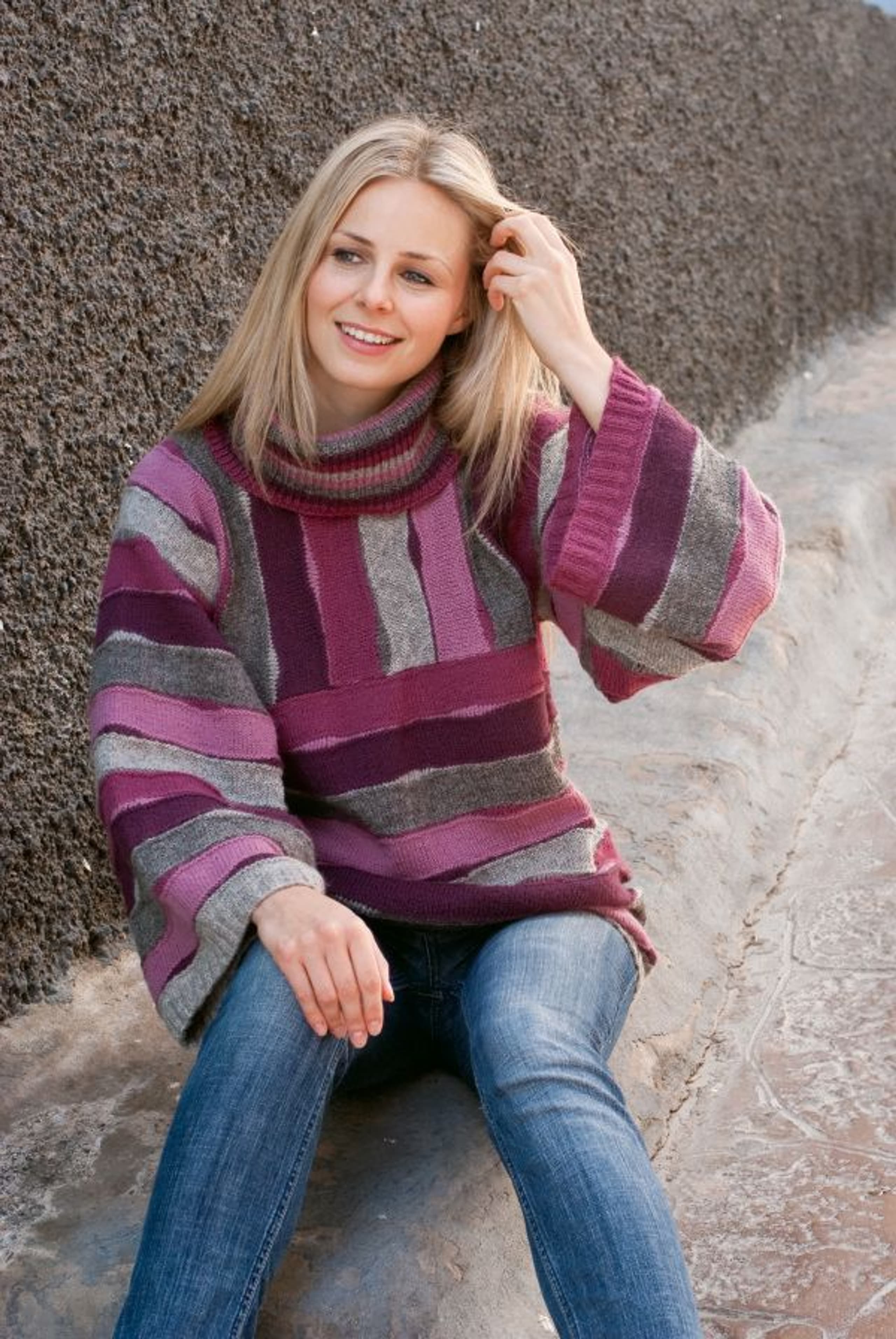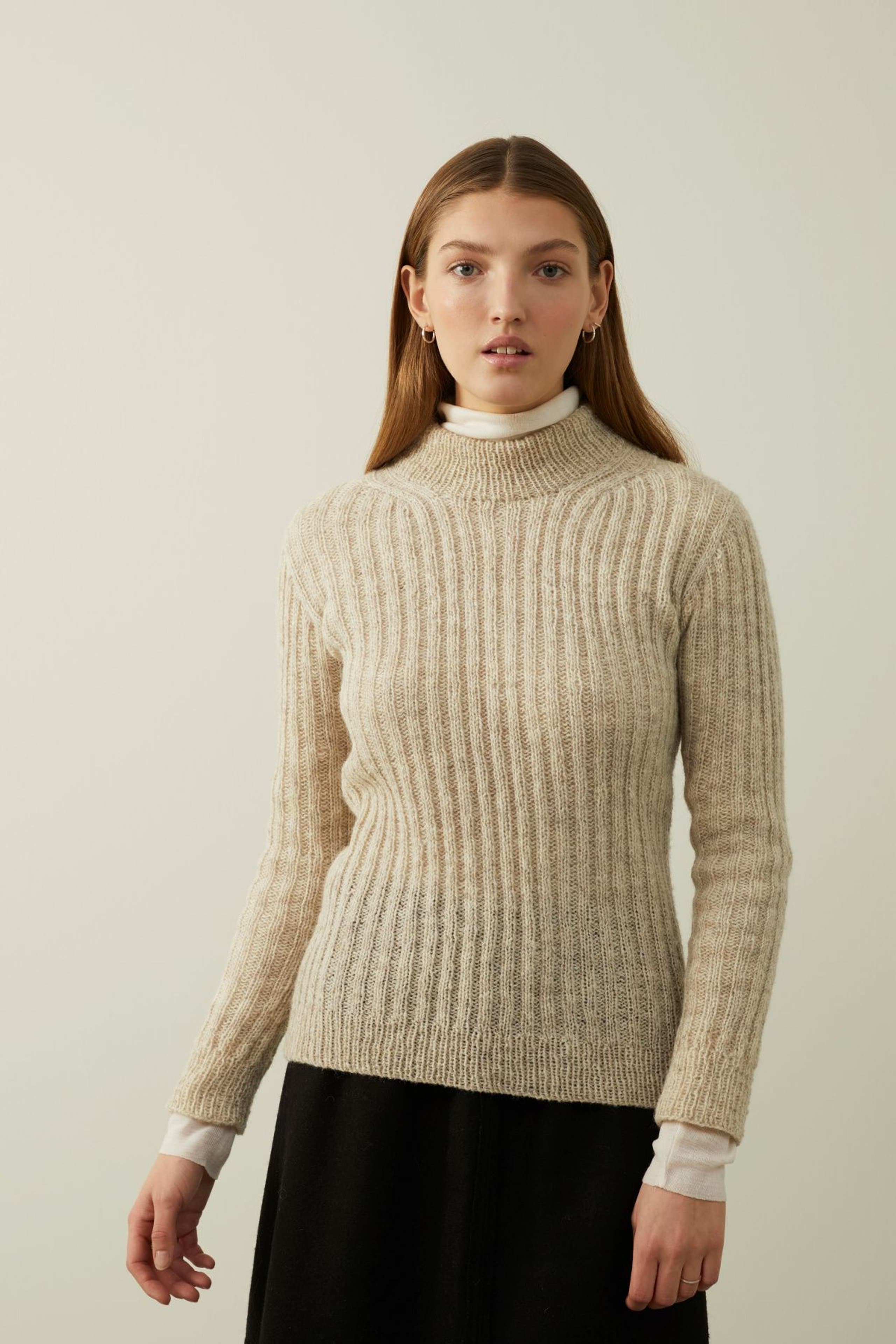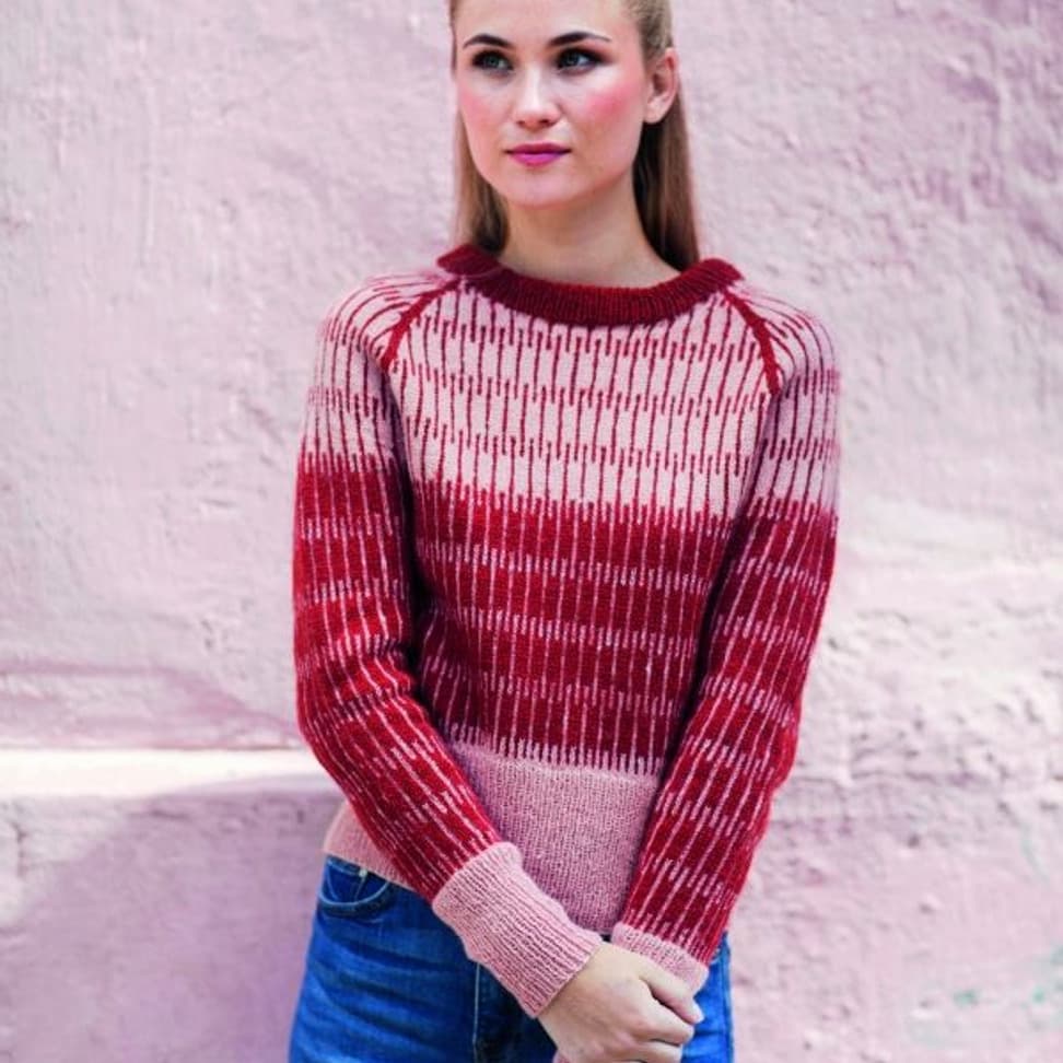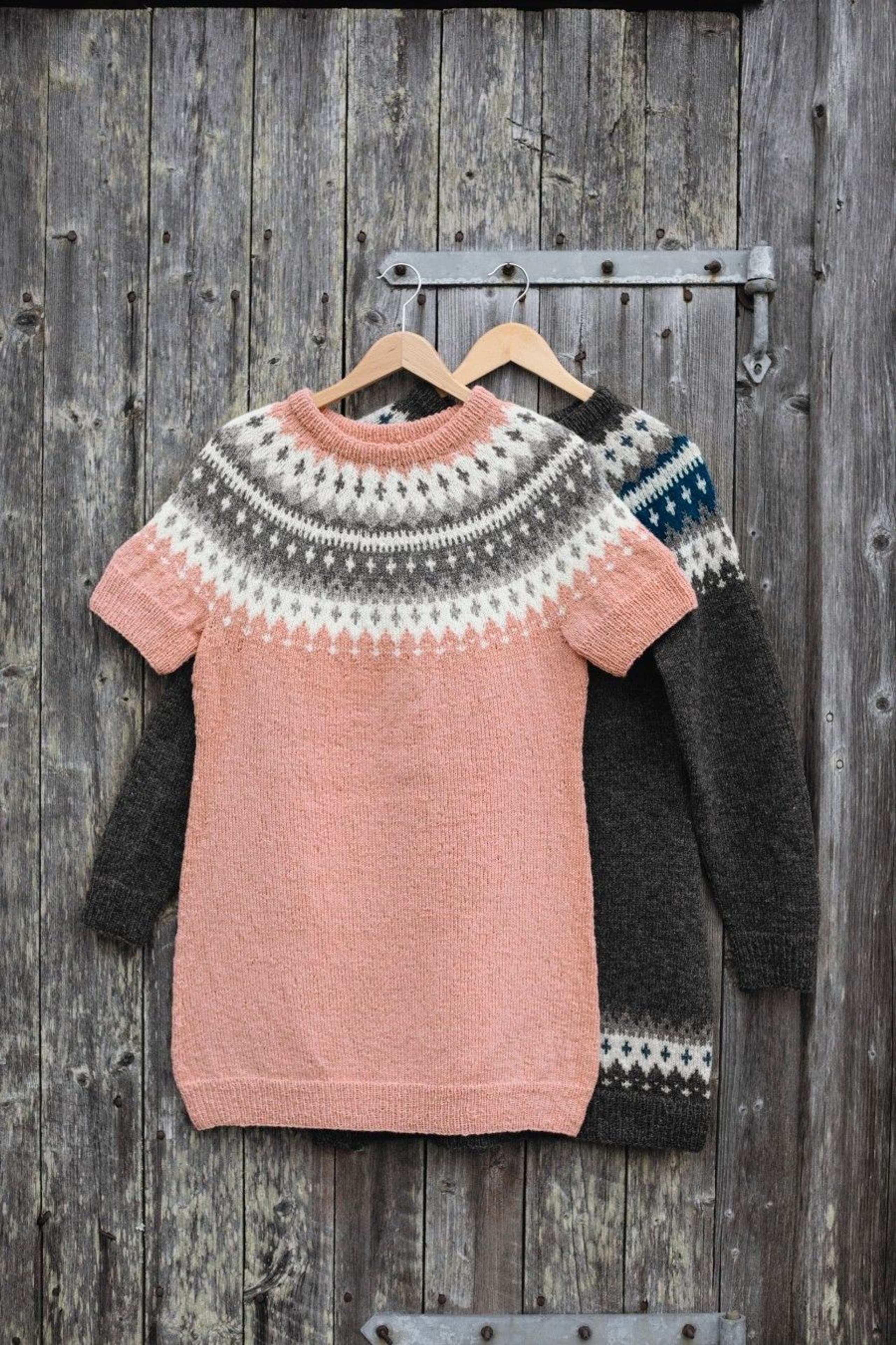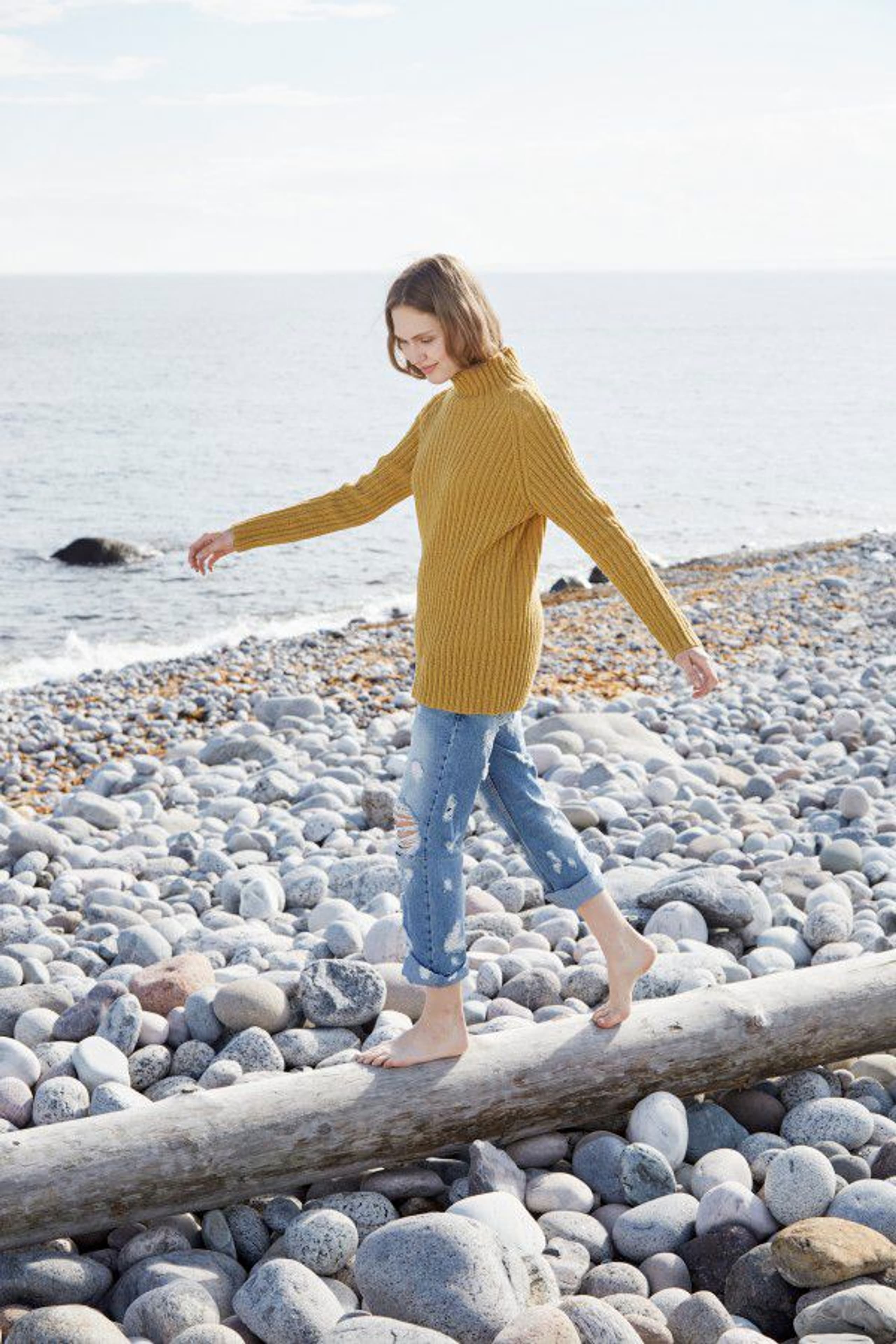 Garnkombinasjoner og forslag til strikkefasthet (p): Husk å strikke prøvelapp. Finull + Plum: 21 m = 10 cm (3,5) Finull + Alpaca Silk: 18 m = 10 cm (4) Finull x 2: 16 m = 10 cm (4,5) Finull x 2 + Plum: 14 m = 10 cm (6) Finull + Plum x 2: 14 m = 10 cm (6) Finull + Alpakka Lin: 14 m = 10 cm (5,5) Garnalternativer: Tumi Pt 5 Petunia Pelini