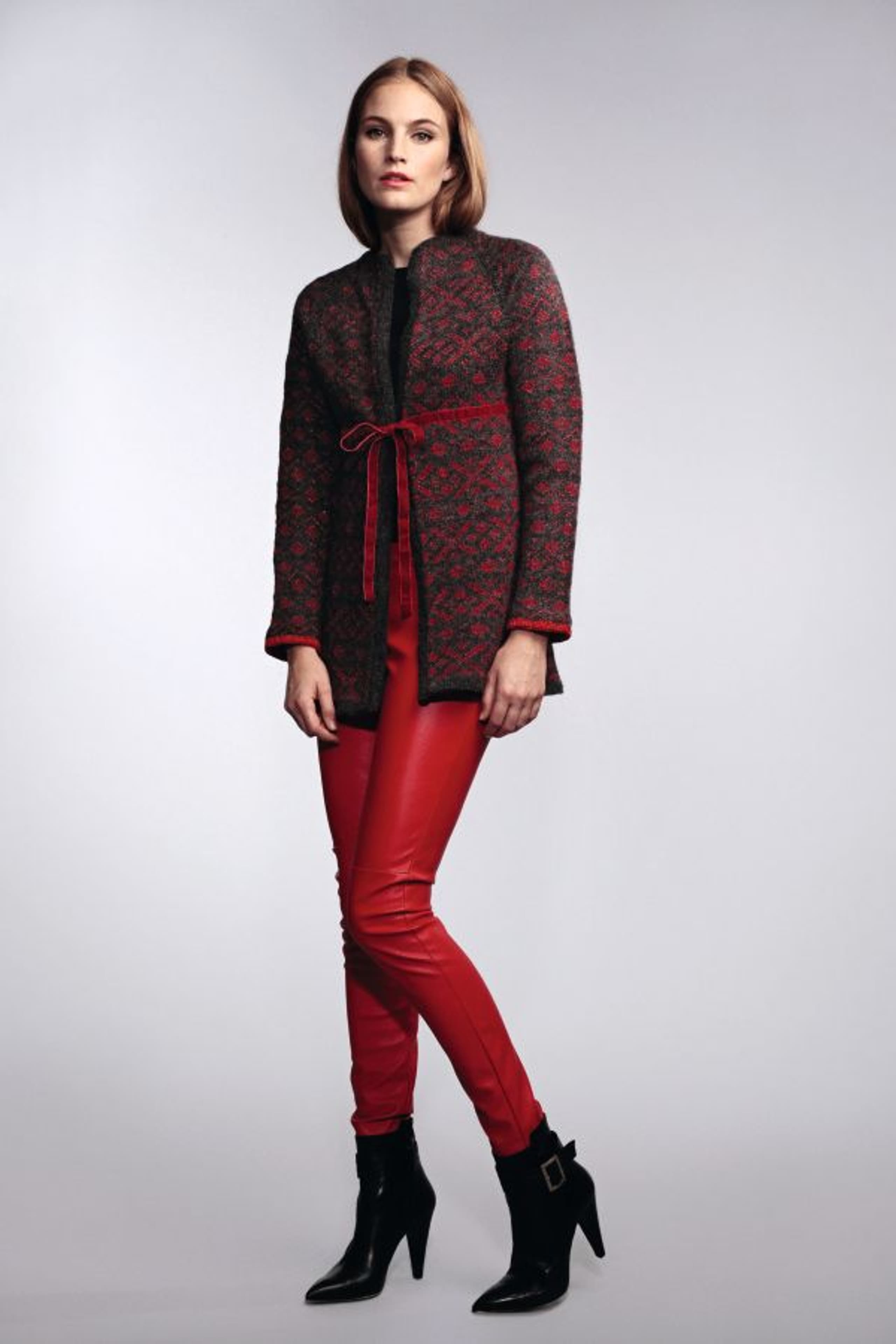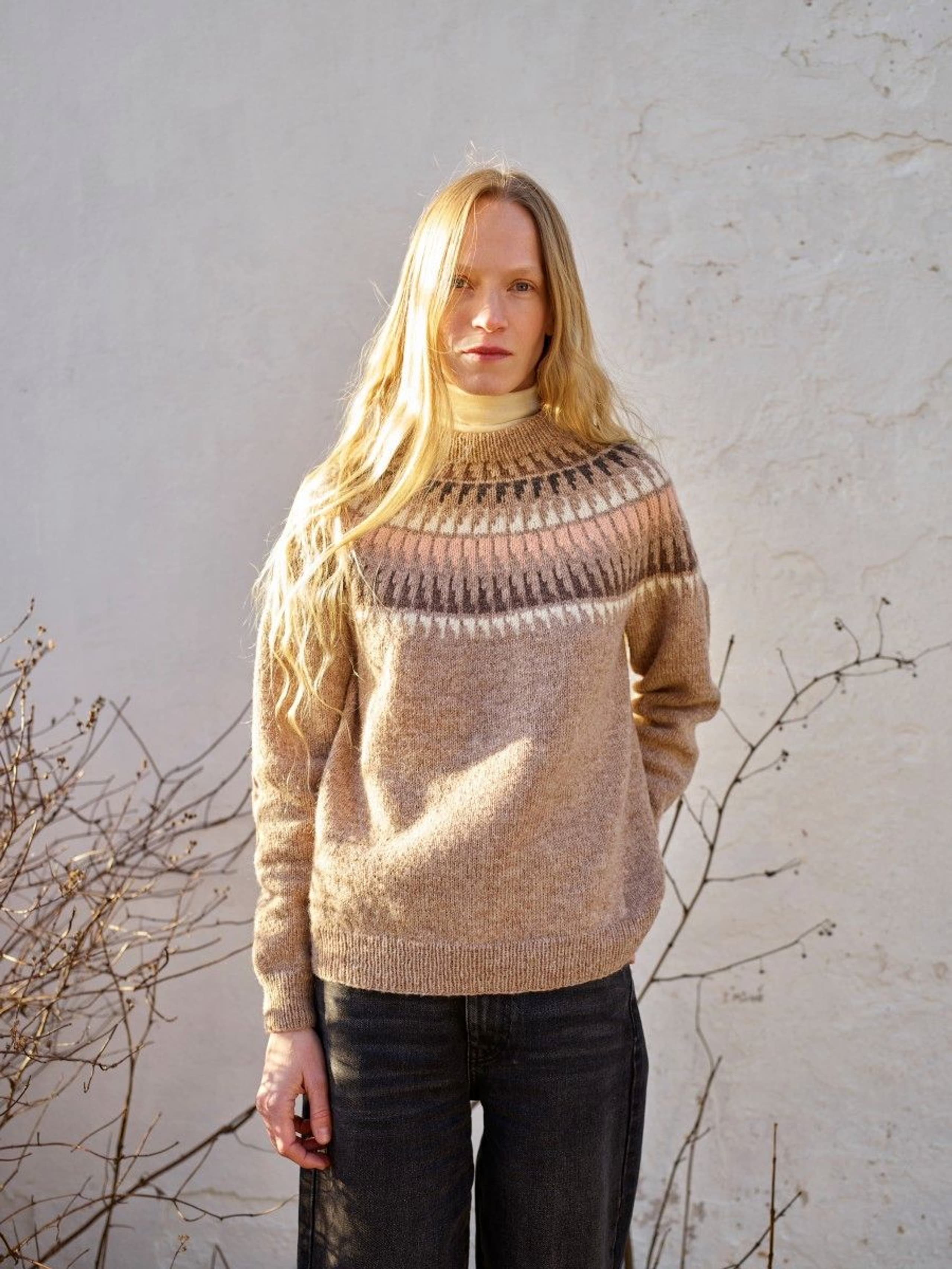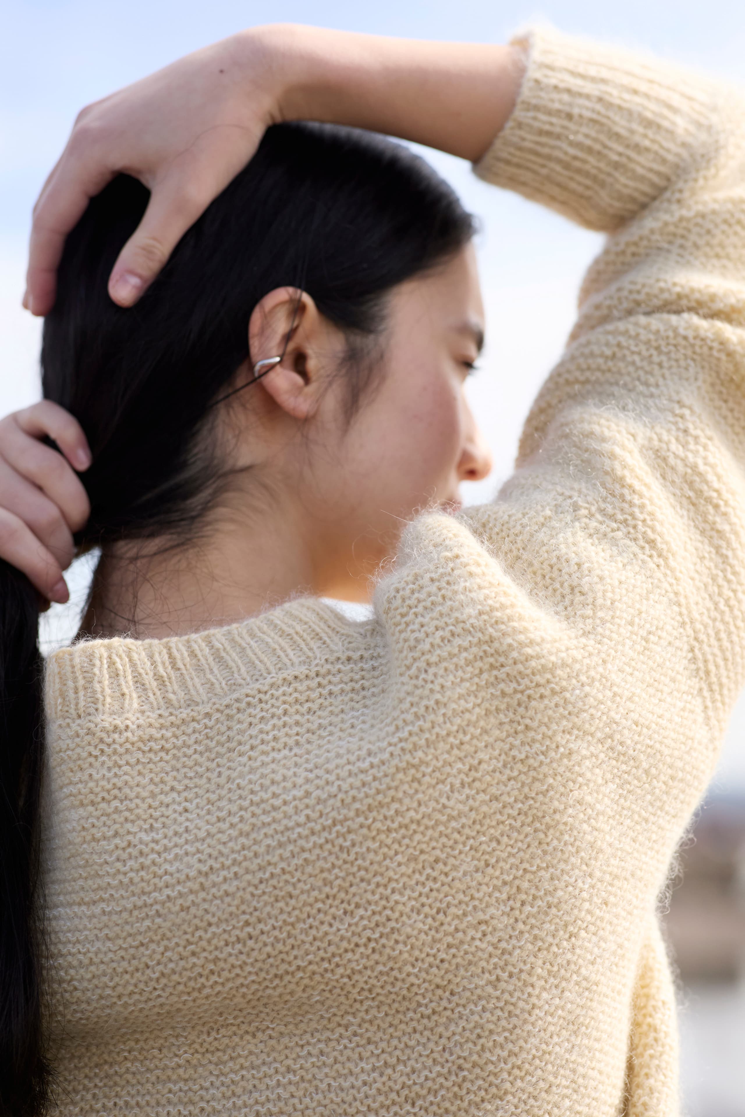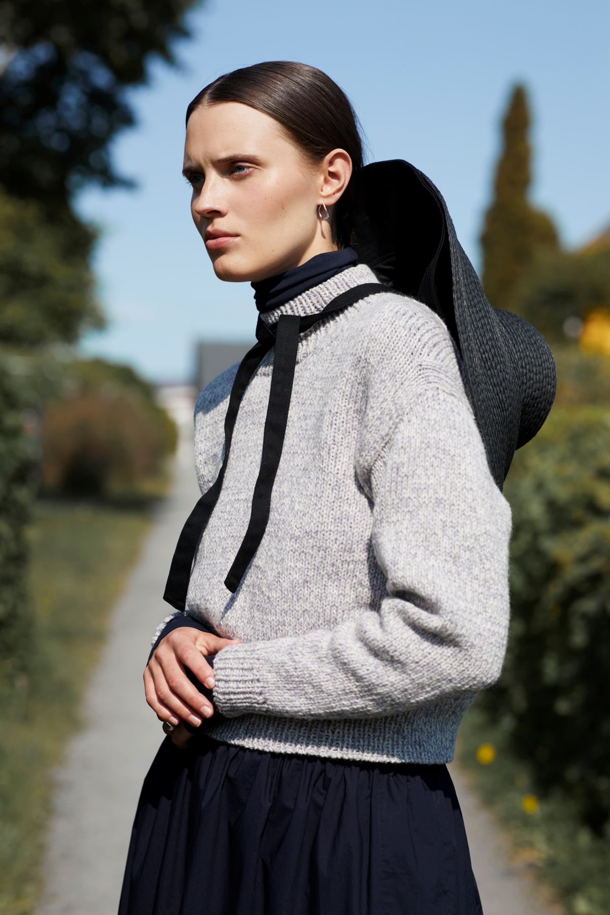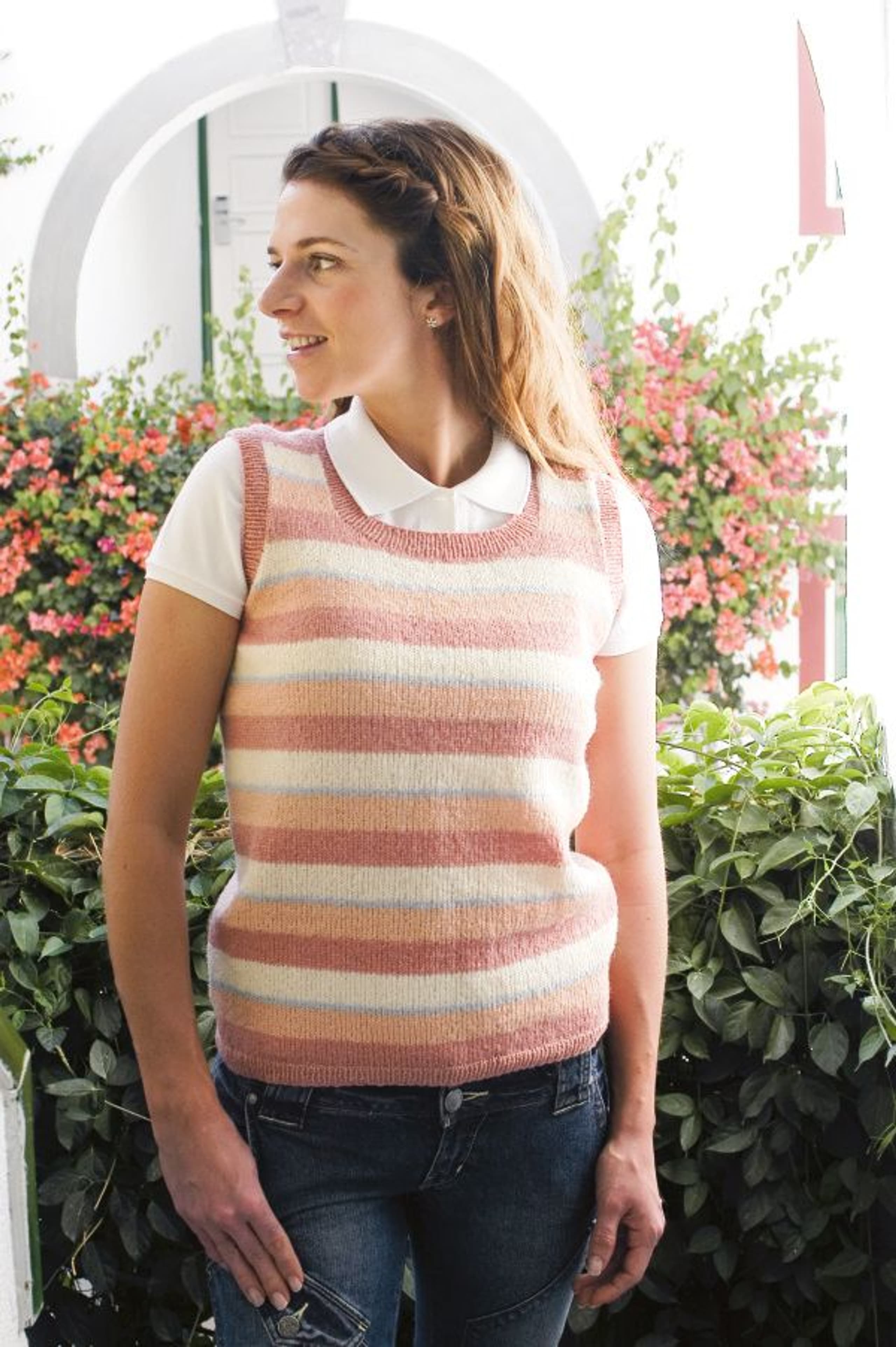 Garnkombinasjoner og forslag til strikkefasthet (p): Husk å strikke prøvelapp. Finull + Plum: 21 m = 10 cm (3,5) Finull + Alpaca Silk: 18 m = 10 cm (4) Finull x 2: 16 m = 10 cm (4,5) Finull x 2 + Plum: 14 m = 10 cm (6) Finull + Plum x 2: 14 m = 10 cm (6) Finull + Alpakka Lin: 14 m = 10 cm (5,5) Garnalternativer: Tumi Pt 5 Petunia Pelini