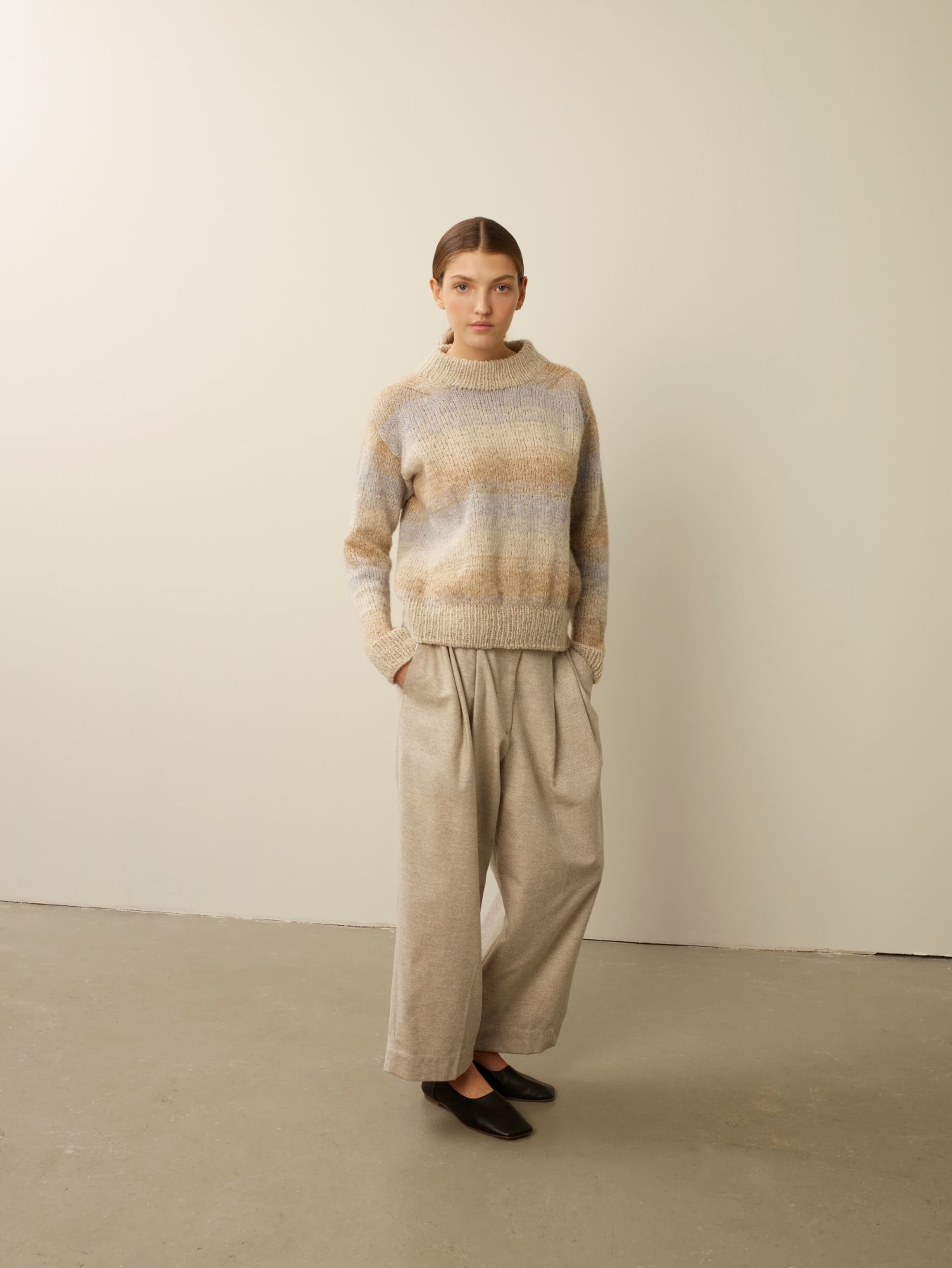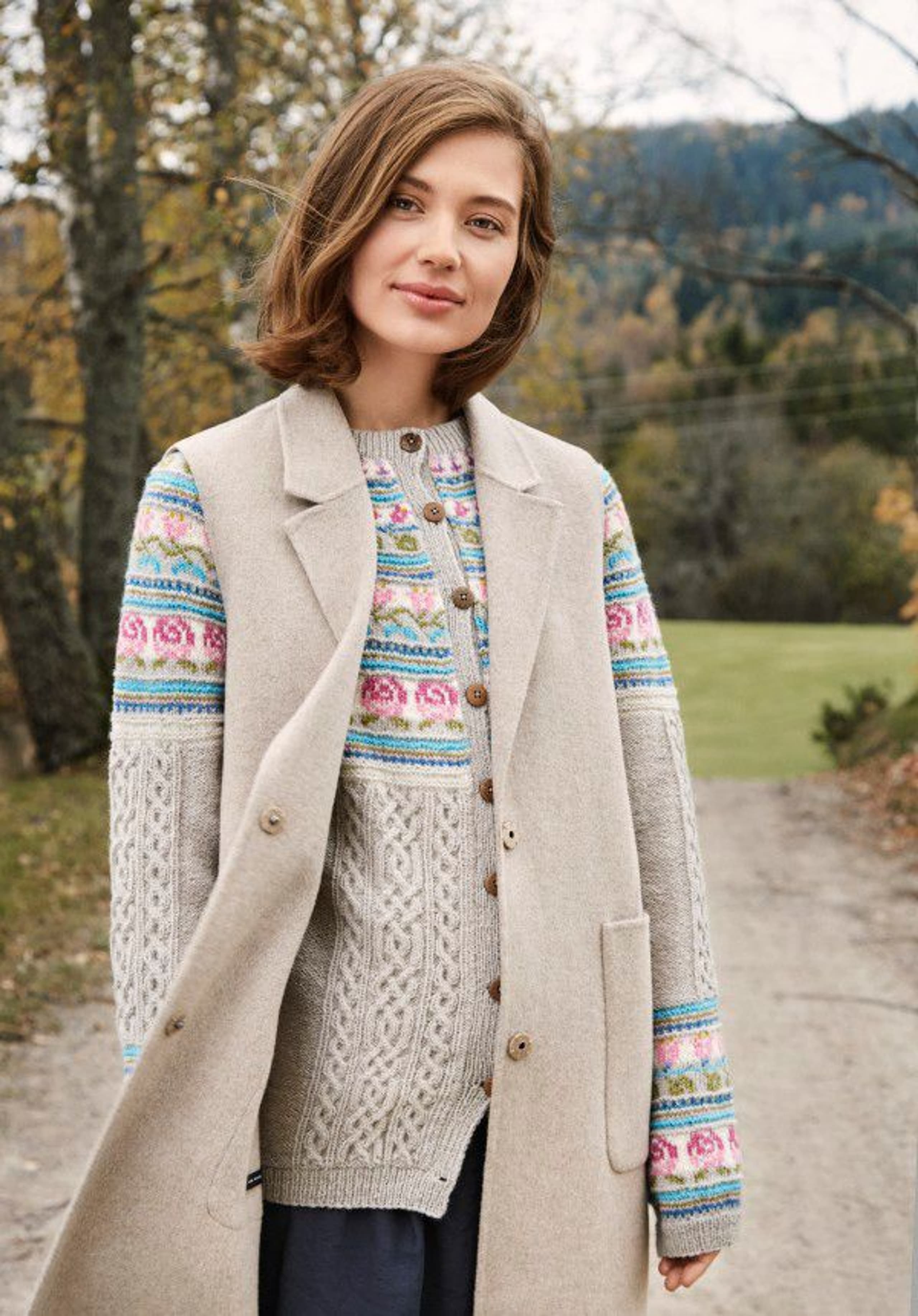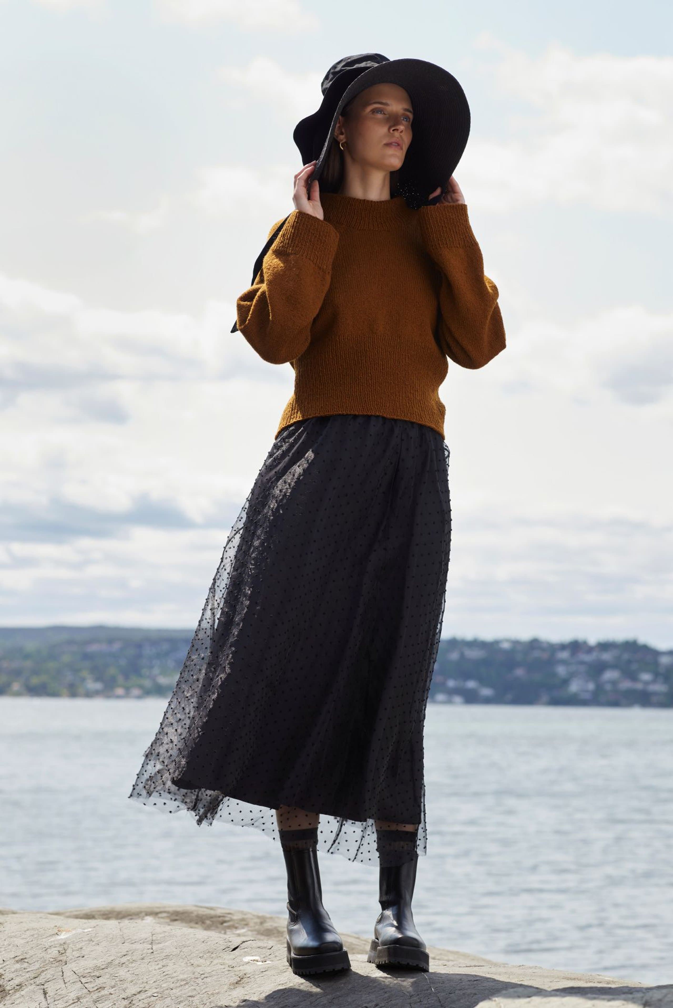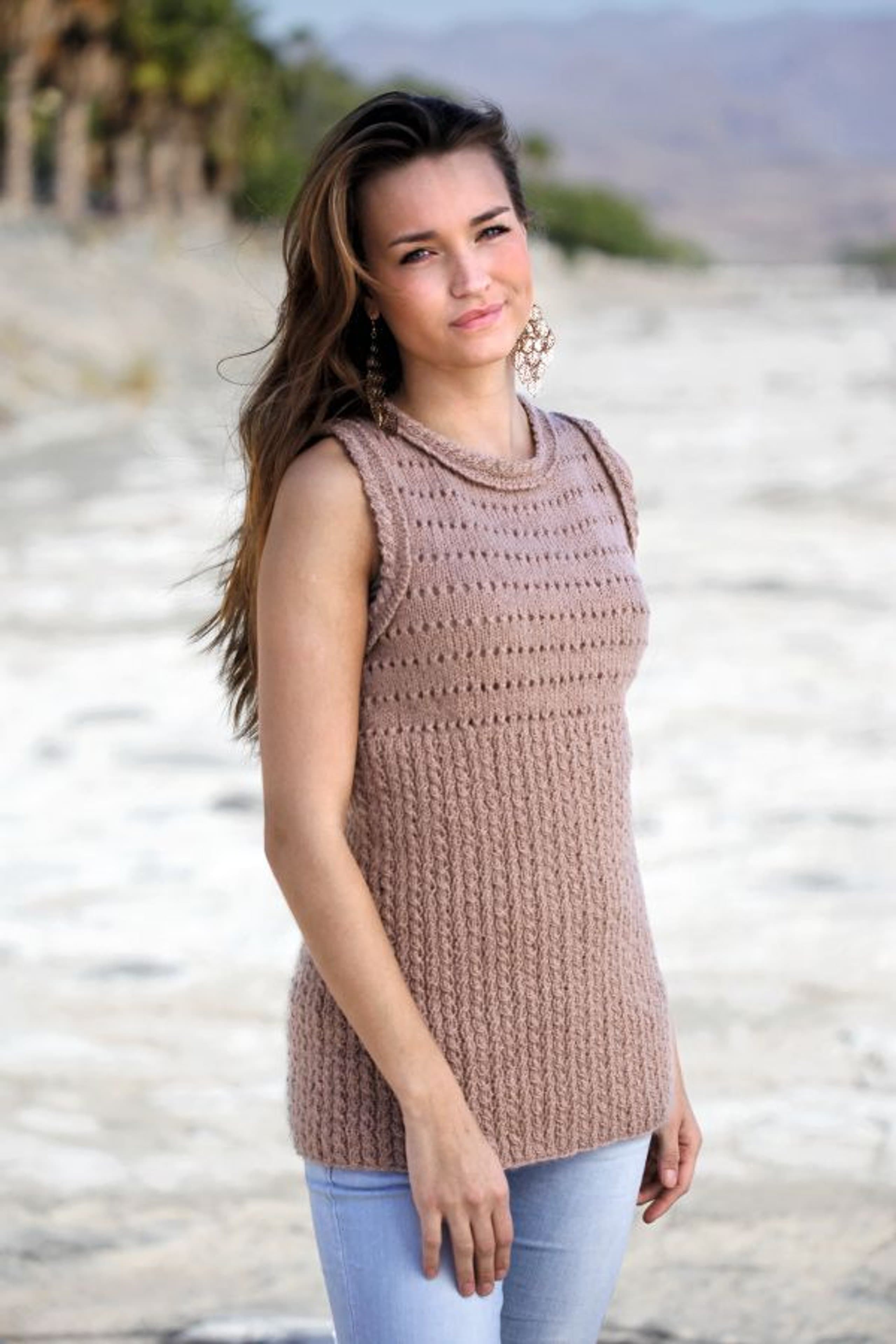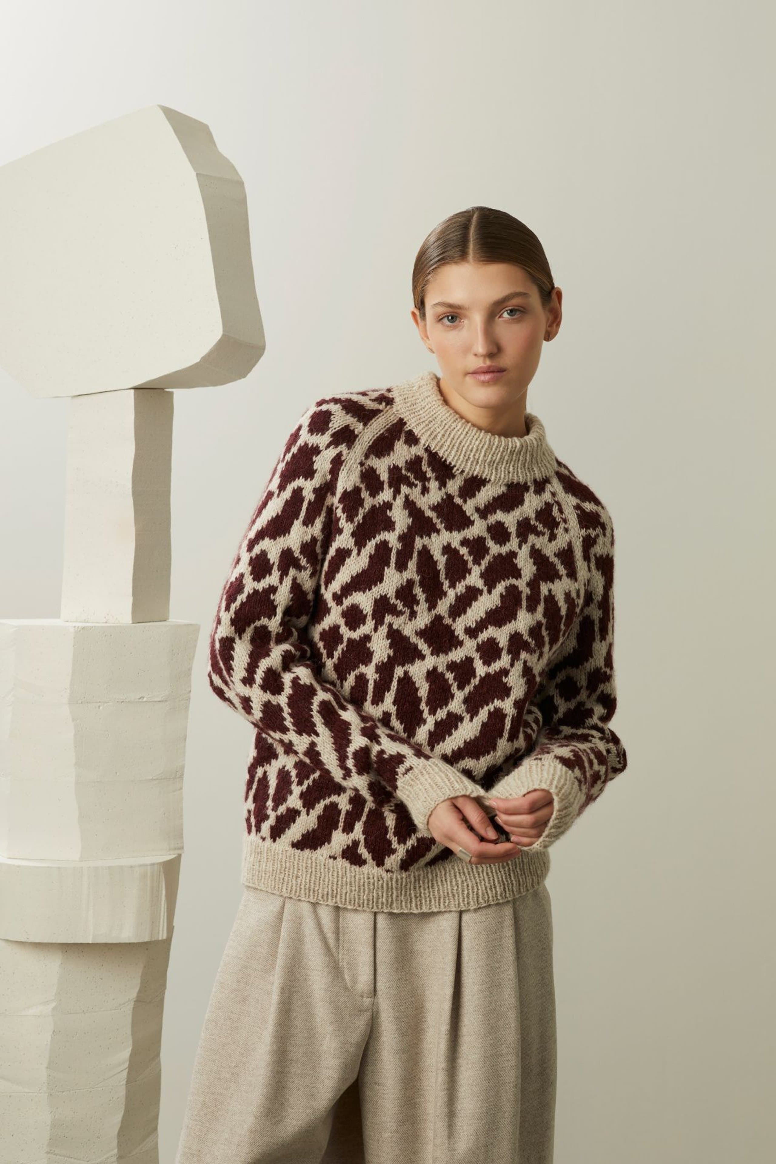 Garnkombinasjoner og forslag til strikkefasthet (p): Husk å strikke prøvelapp. Finull + Plum: 21 m = 10 cm (3,5) Finull + Alpaca Silk: 18 m = 10 cm (4) Finull x 2: 16 m = 10 cm (4,5) Finull x 2 + Plum: 14 m = 10 cm (6) Finull + Plum x 2: 14 m = 10 cm (6) Finull + Alpakka Lin: 14 m = 10 cm (5,5) Garnalternativer: Tumi Pt 5 Petunia Pelini