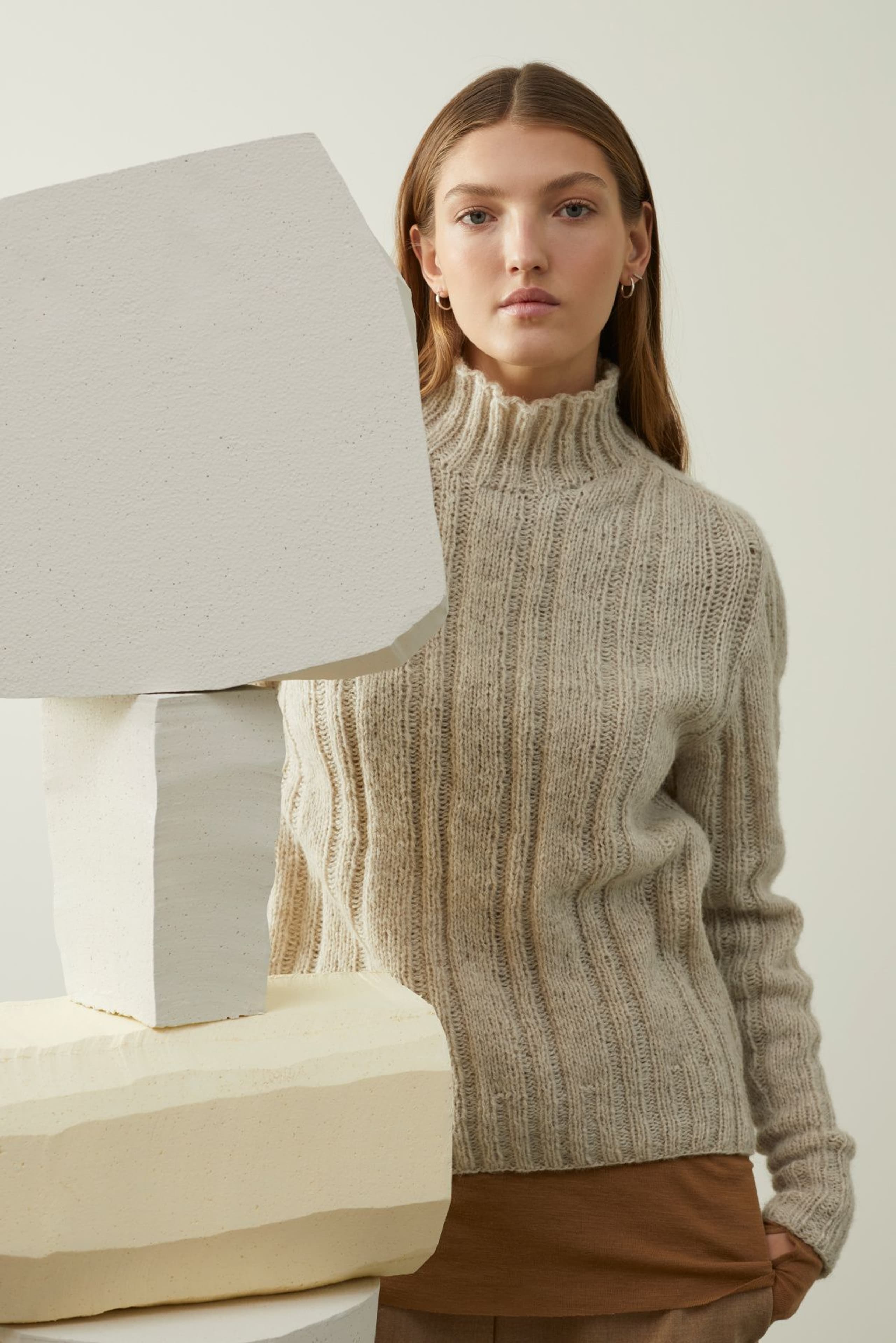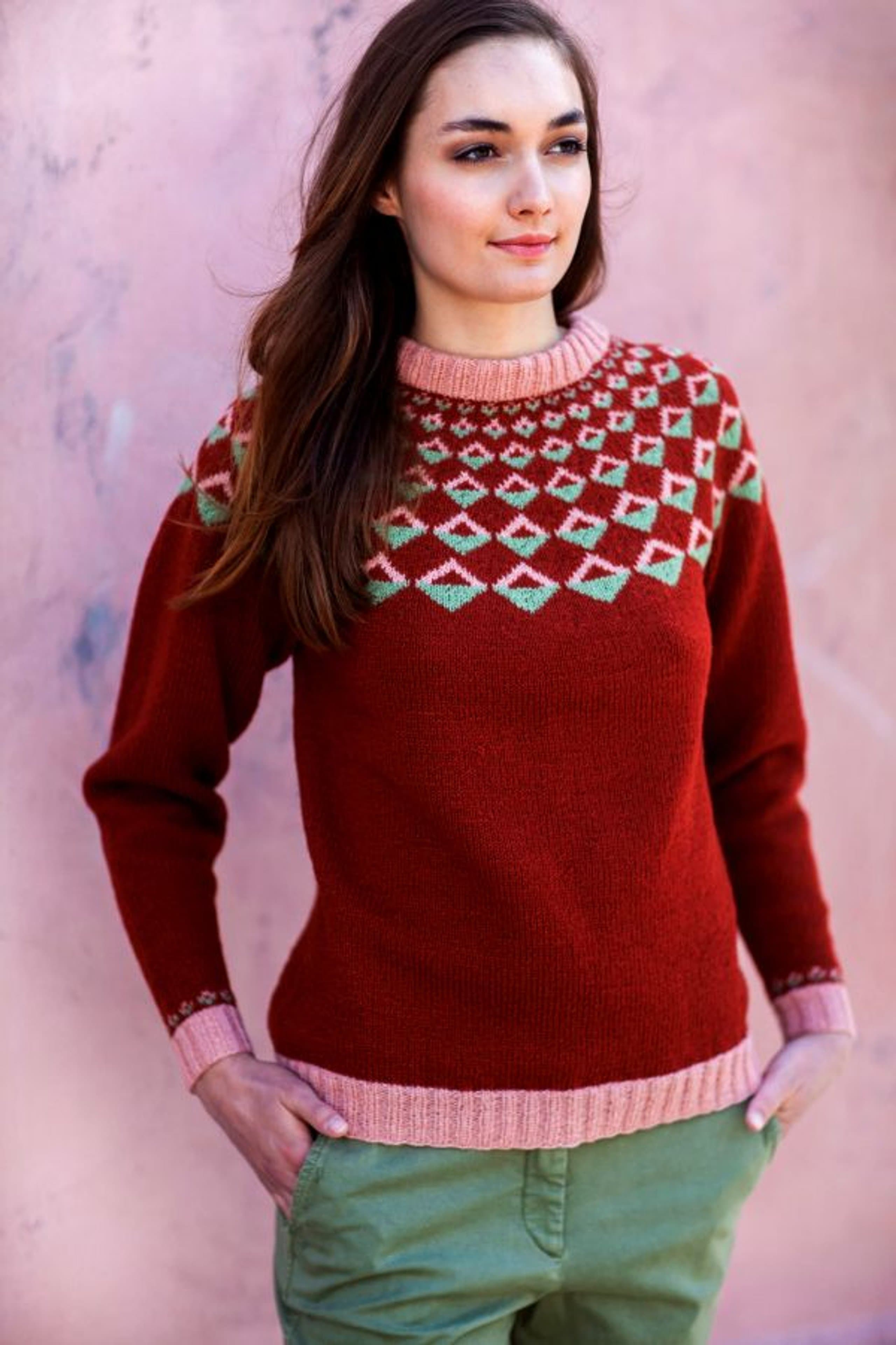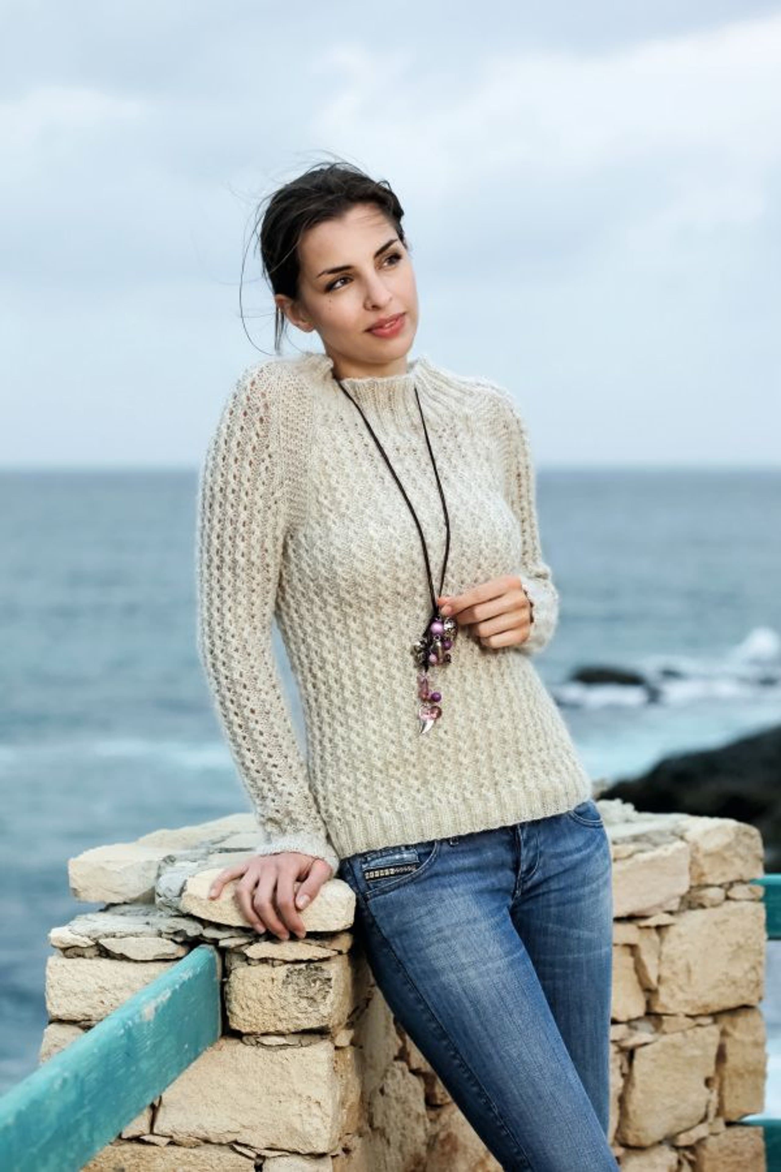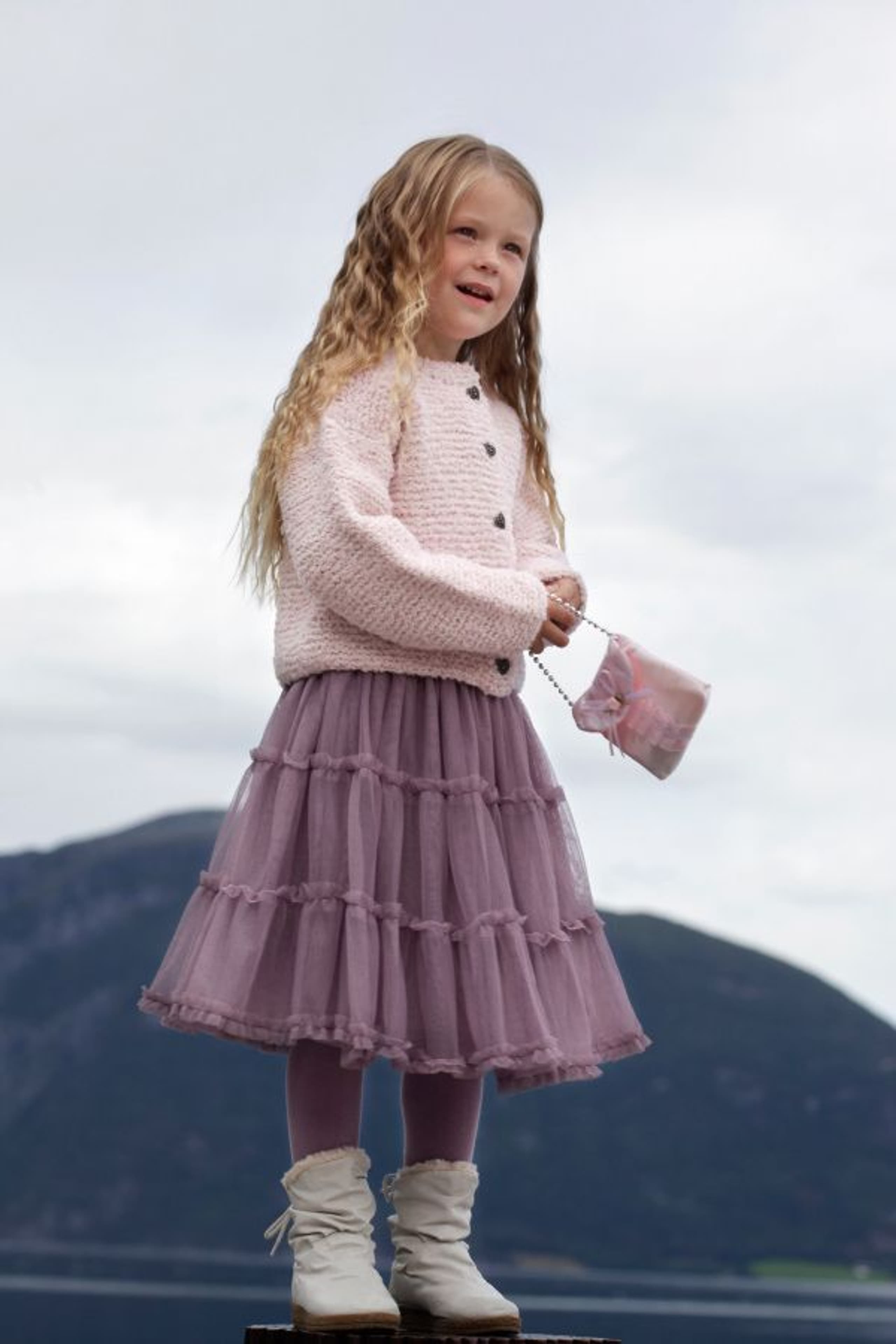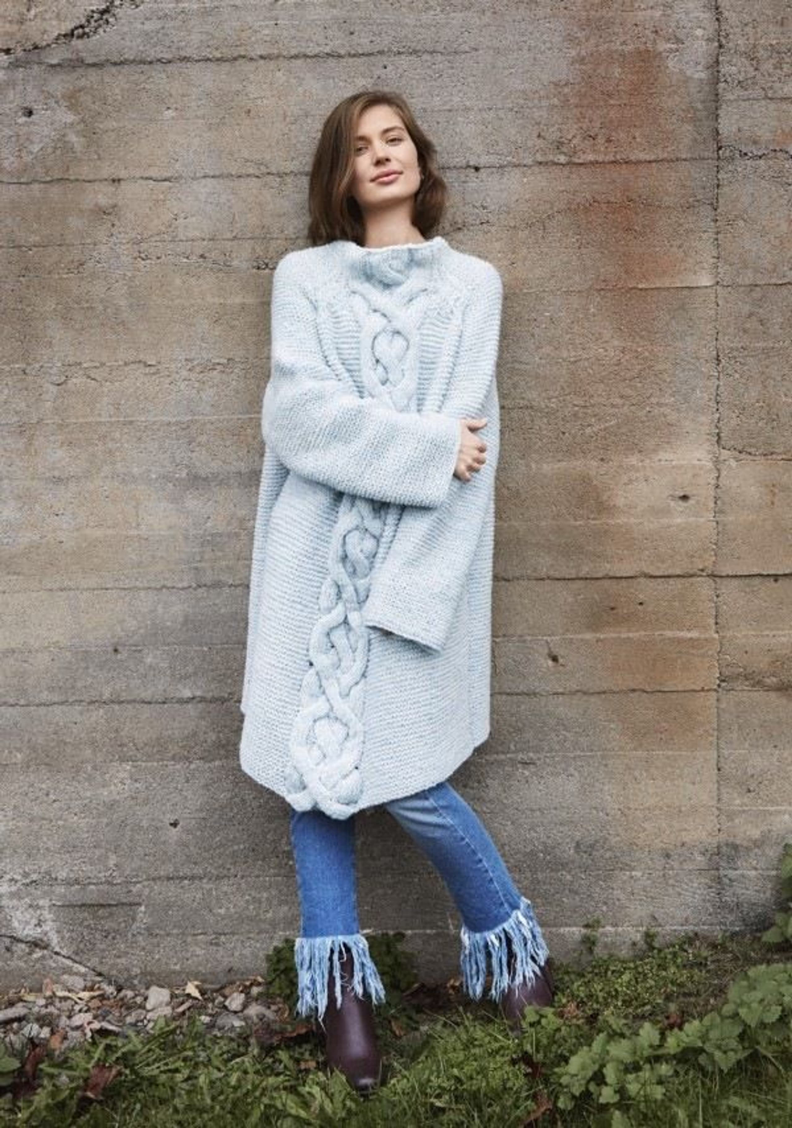 Garnkombinasjoner og forslag til strikkefasthet (p): Husk å strikke prøvelapp. Finull + Plum: 21 m = 10 cm (3,5) Finull + Alpaca Silk: 18 m = 10 cm (4) Finull x 2: 16 m = 10 cm (4,5) Finull x 2 + Plum: 14 m = 10 cm (6) Finull + Plum x 2: 14 m = 10 cm (6) Finull + Alpakka Lin: 14 m = 10 cm (5,5) Garnalternativer: Tumi Pt 5 Petunia Pelini