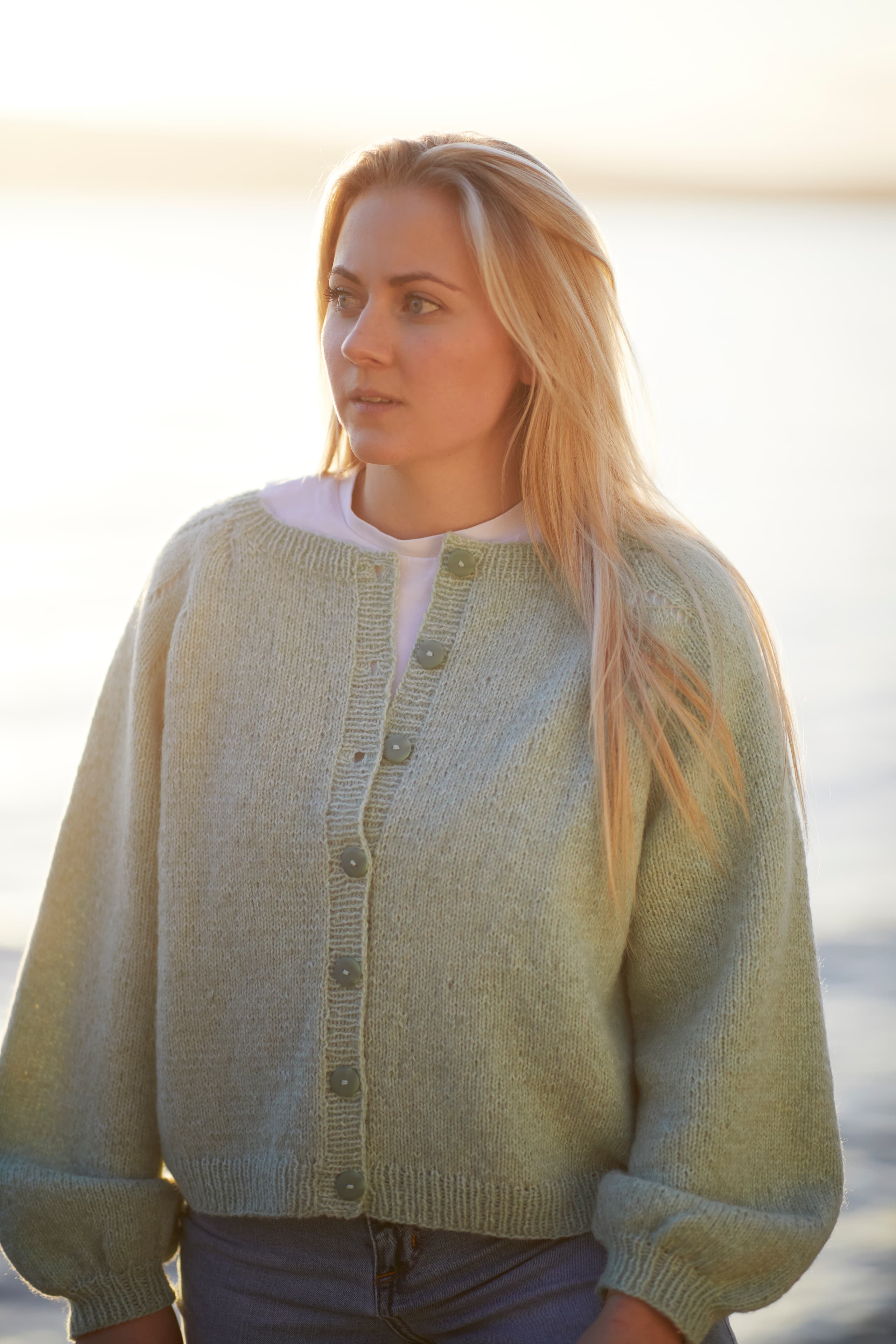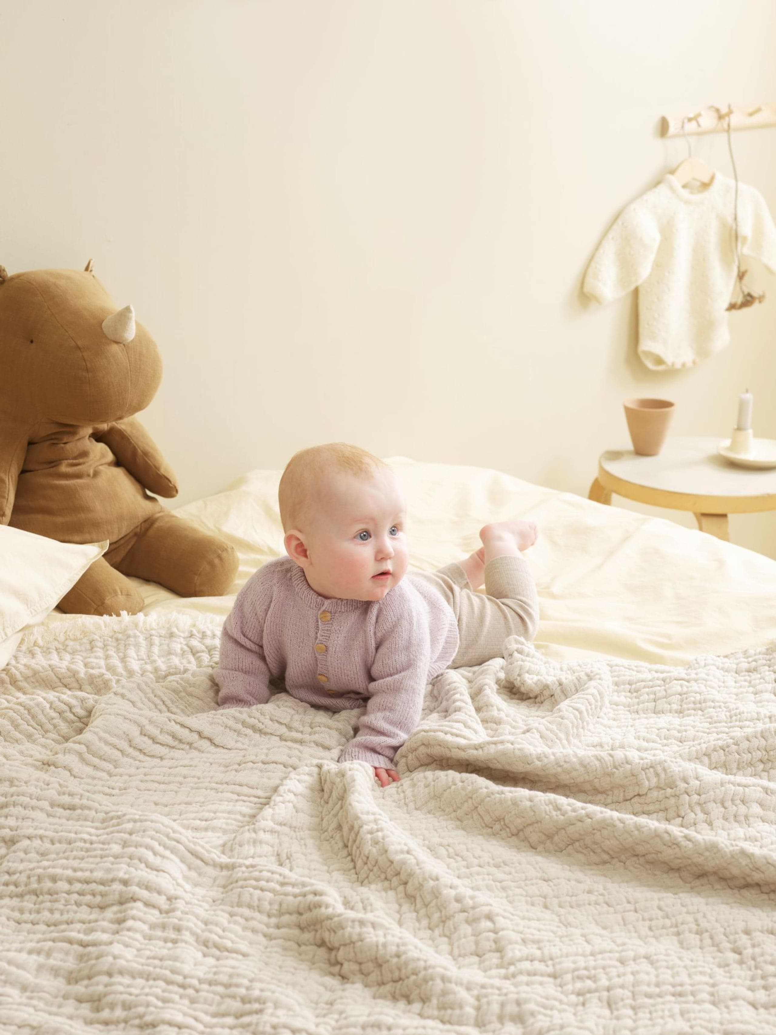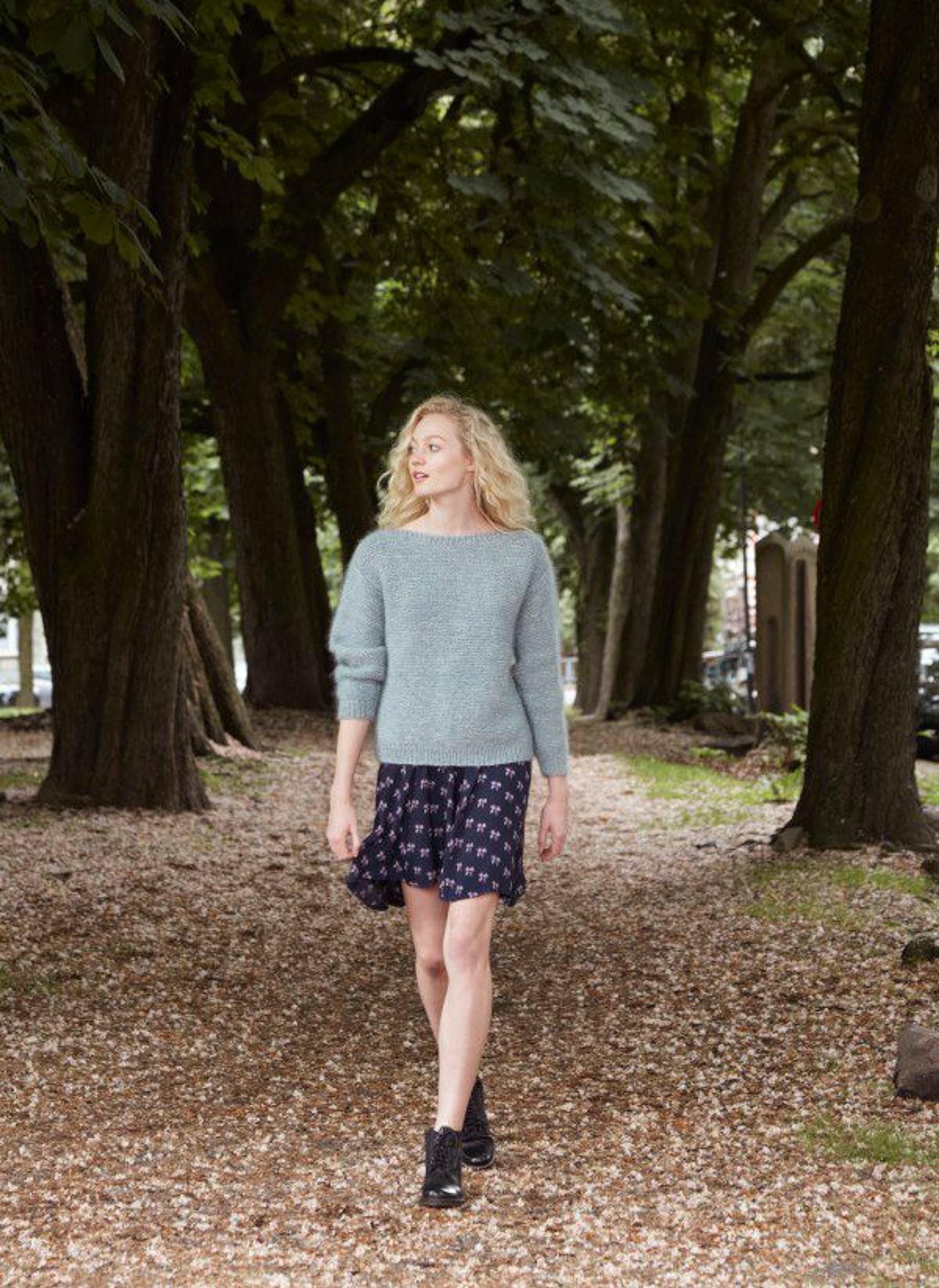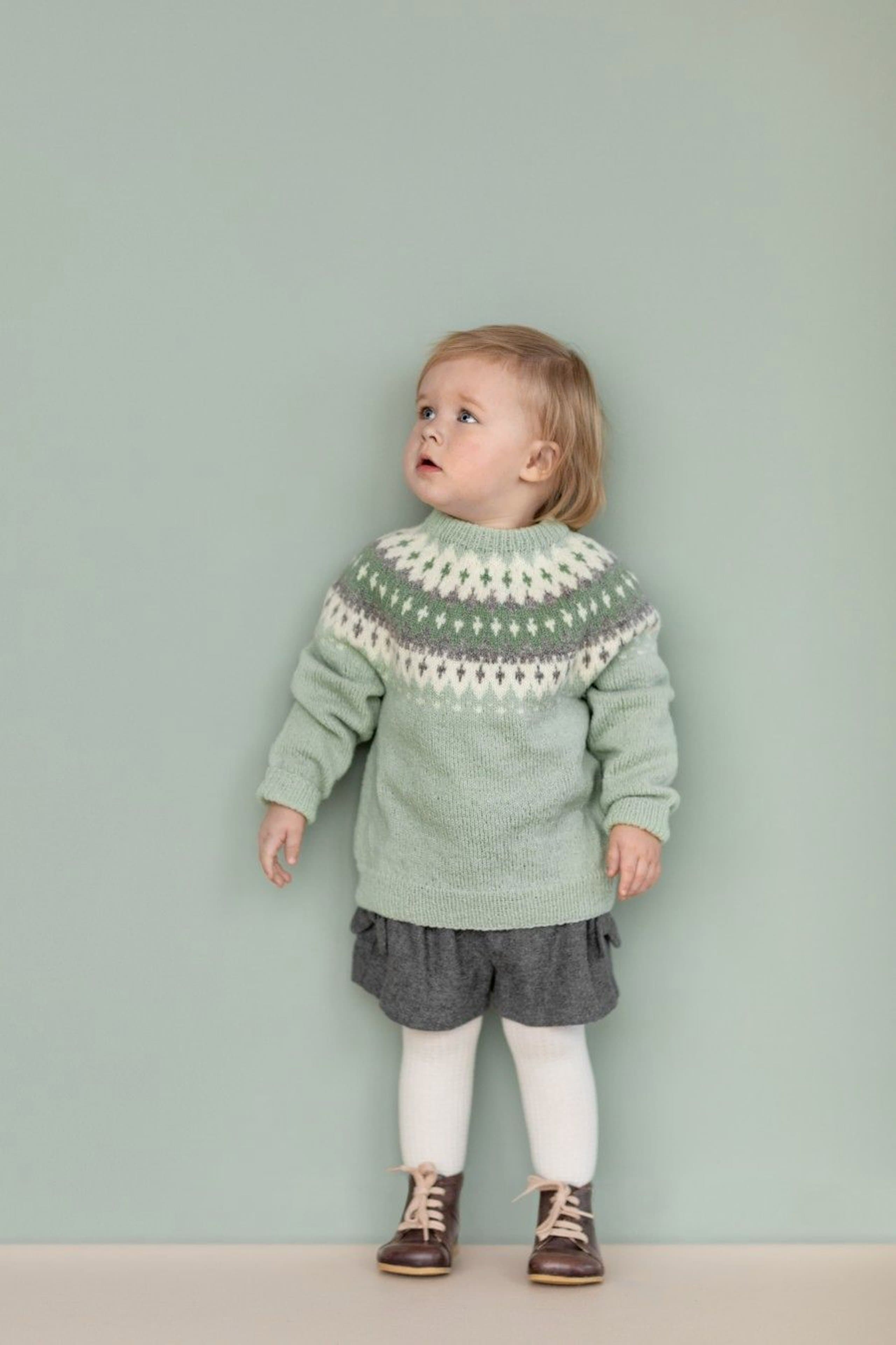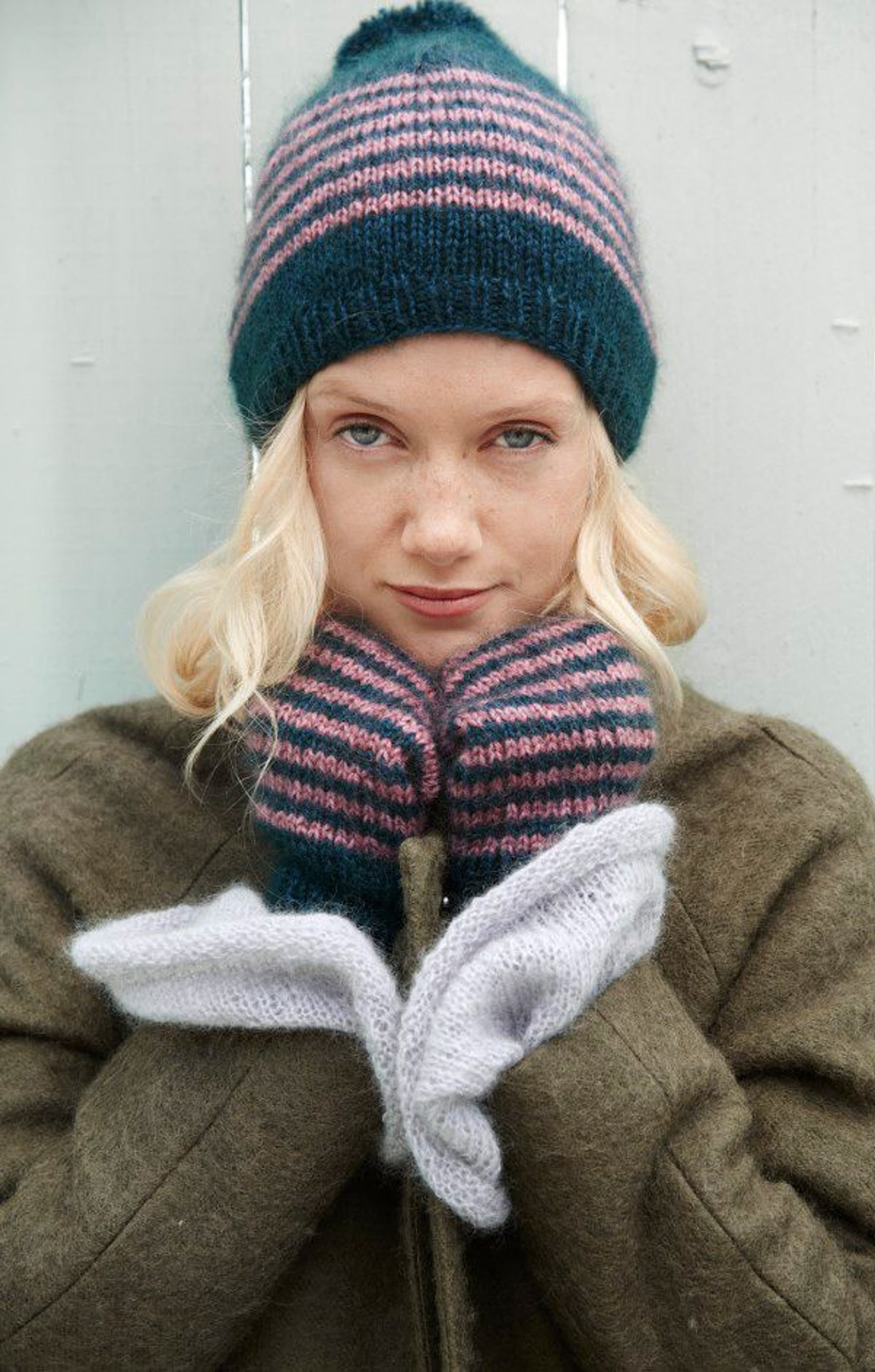 Garnkombinasjoner og forslag til strikkefasthet (p): Husk å strikke prøvelapp. Lamull + Plum: 20 m = 10 cm (3,5) Lamull + Alpaca Silk: 20 m = 10 cm (3) Lamull + Plum x 2: 18 m på 10 cm (4) Lamull x 2 : 18 m = 10 cm (3,5) Lamull + Tumi: 17 m = 10 cm (5) Lamull x 2 + Plum: 16 m = 10 cm (4,5) Lamull + Alpakka Lin: 14 m = 10 cm (4,5) Garnalternativer: Babygarn Inca Pandora