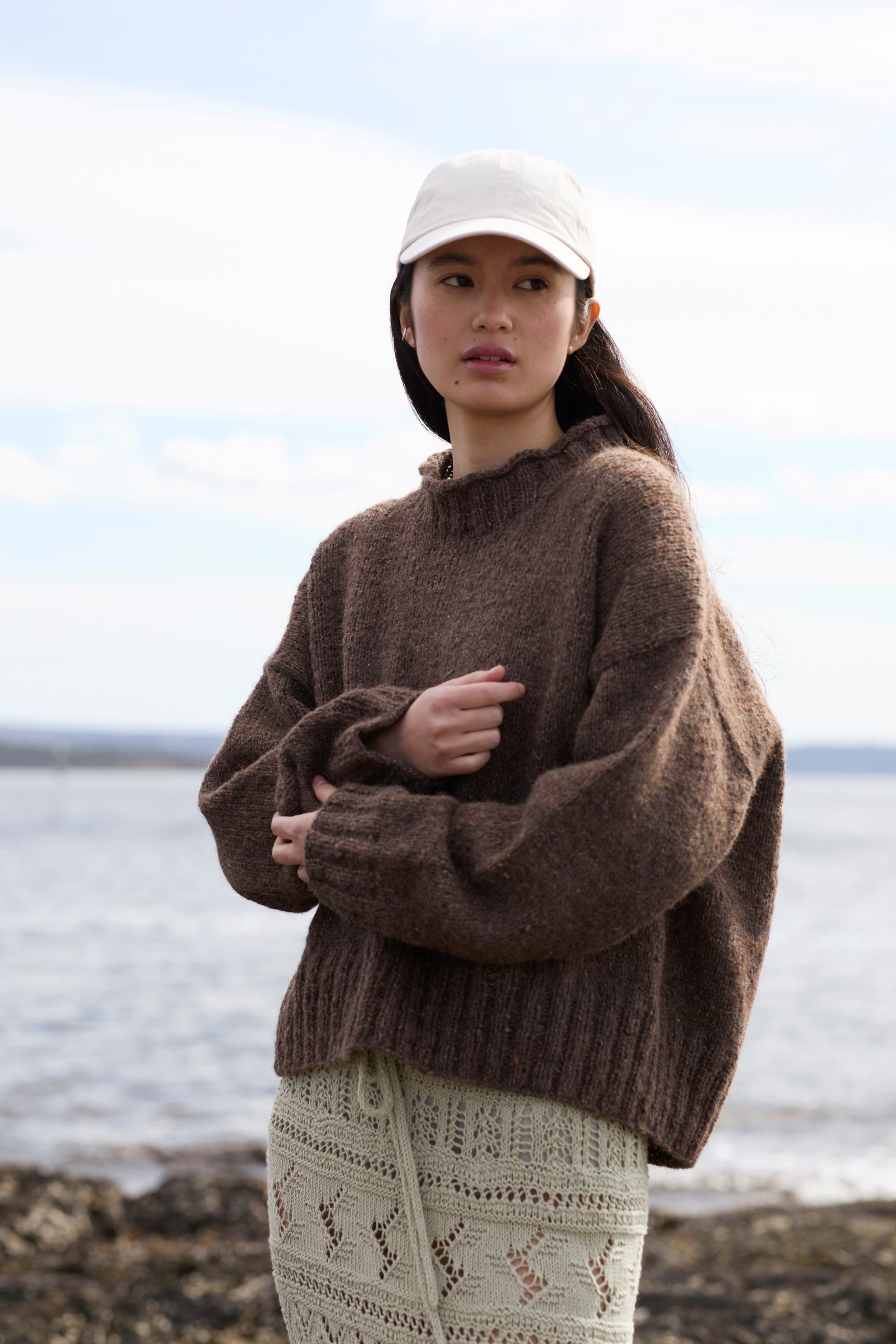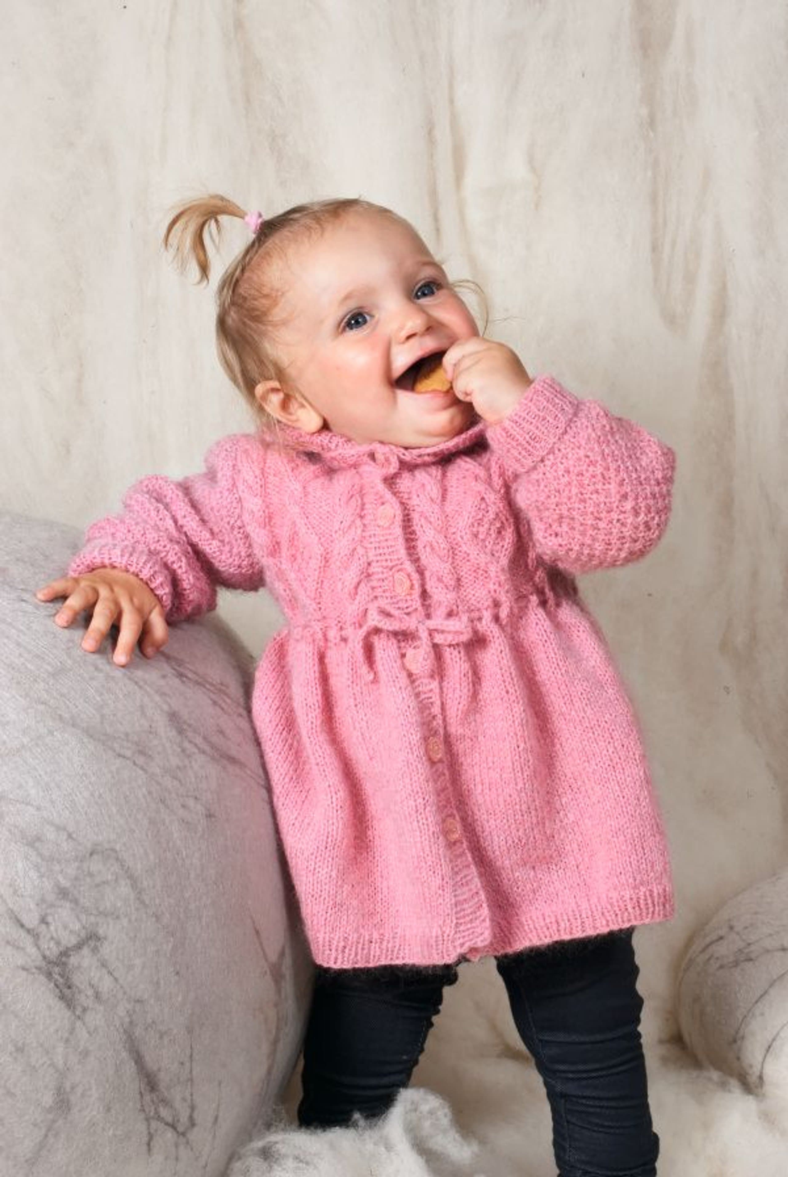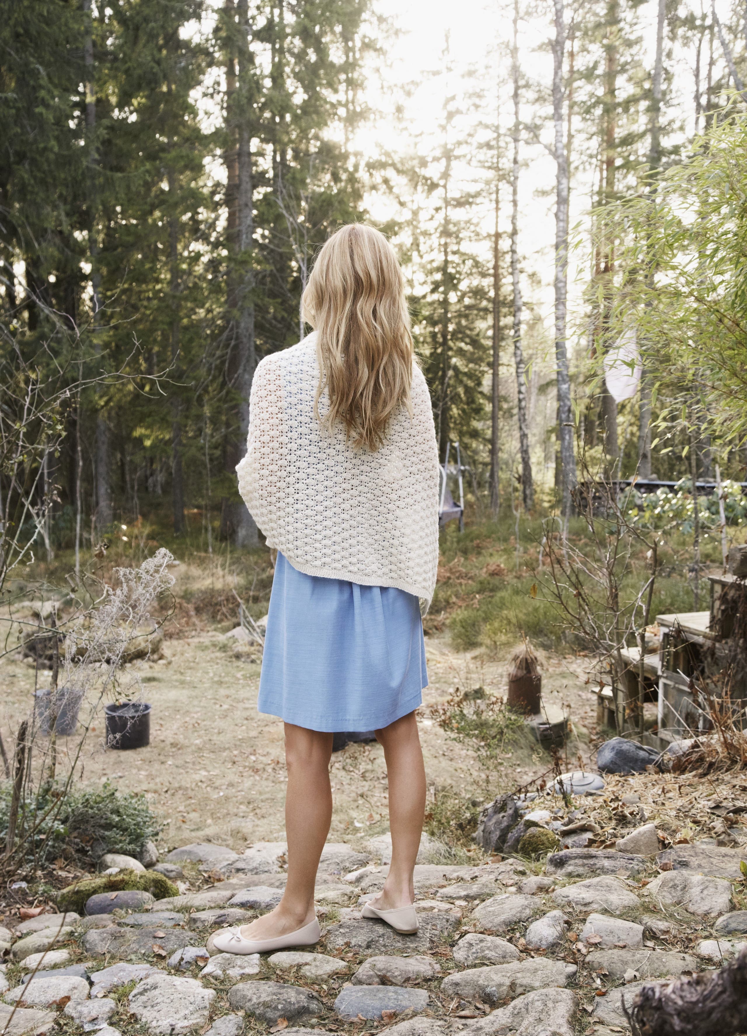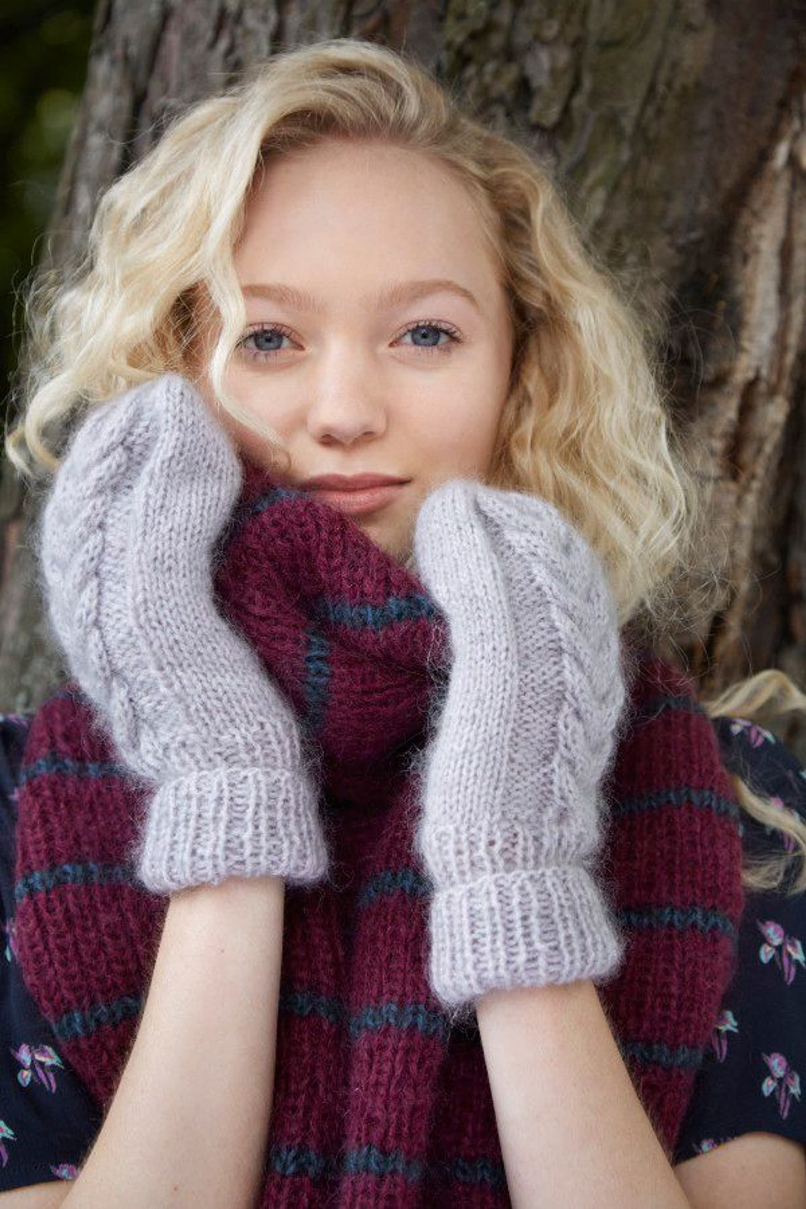 Garnkombinasjoner og forslag til strikkefasthet (p): Husk å strikke prøvelapp. Lamull + Plum: 20 m = 10 cm (3,5) Lamull + Alpaca Silk: 20 m = 10 cm (3) Lamull + Plum x 2: 18 m på 10 cm (4) Lamull x 2 : 18 m = 10 cm (3,5) Lamull + Tumi: 17 m = 10 cm (5) Lamull x 2 + Plum: 16 m = 10 cm (4,5) Lamull + Alpakka Lin: 14 m = 10 cm (4,5) Garnalternativer: Babygarn Inca Pandora