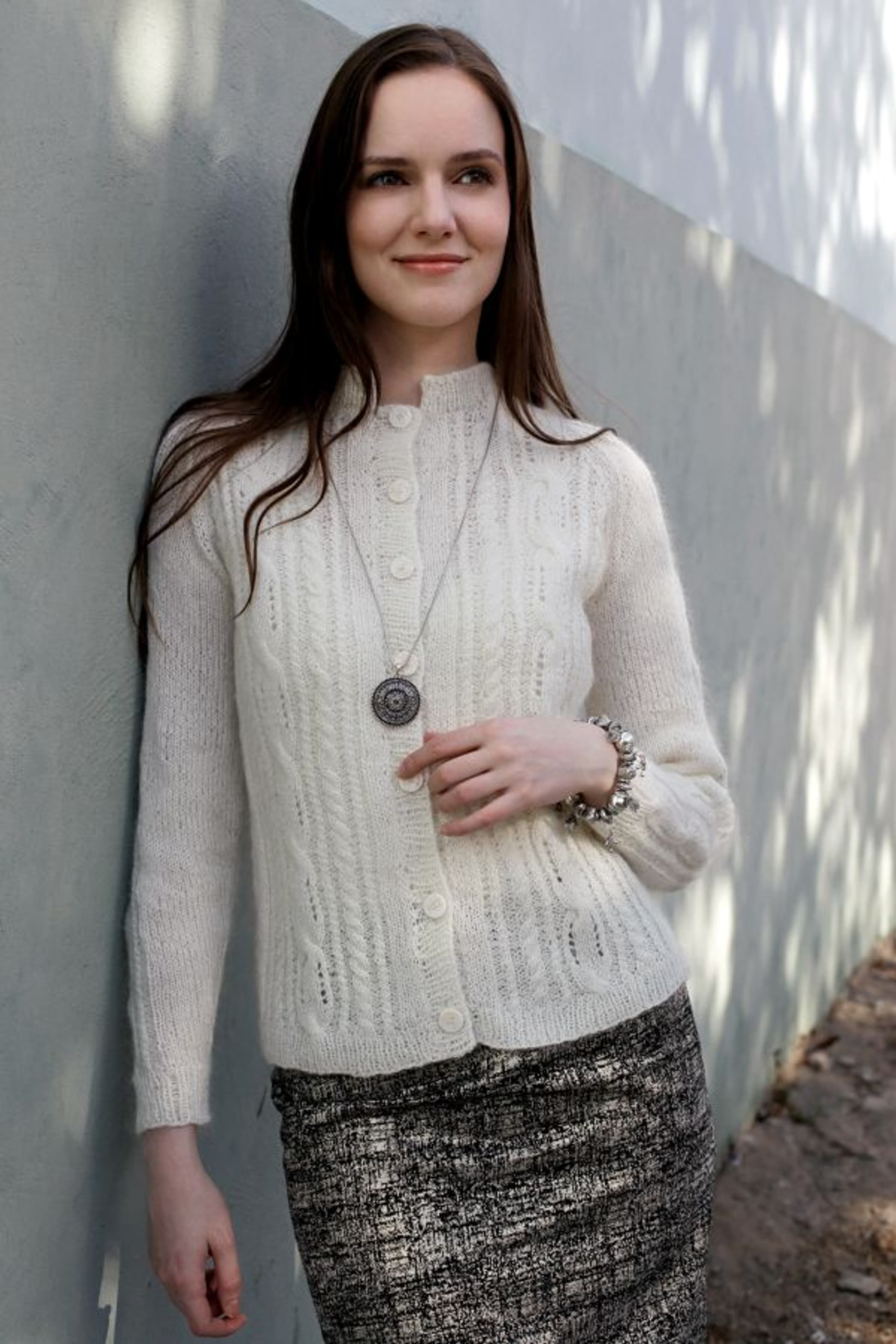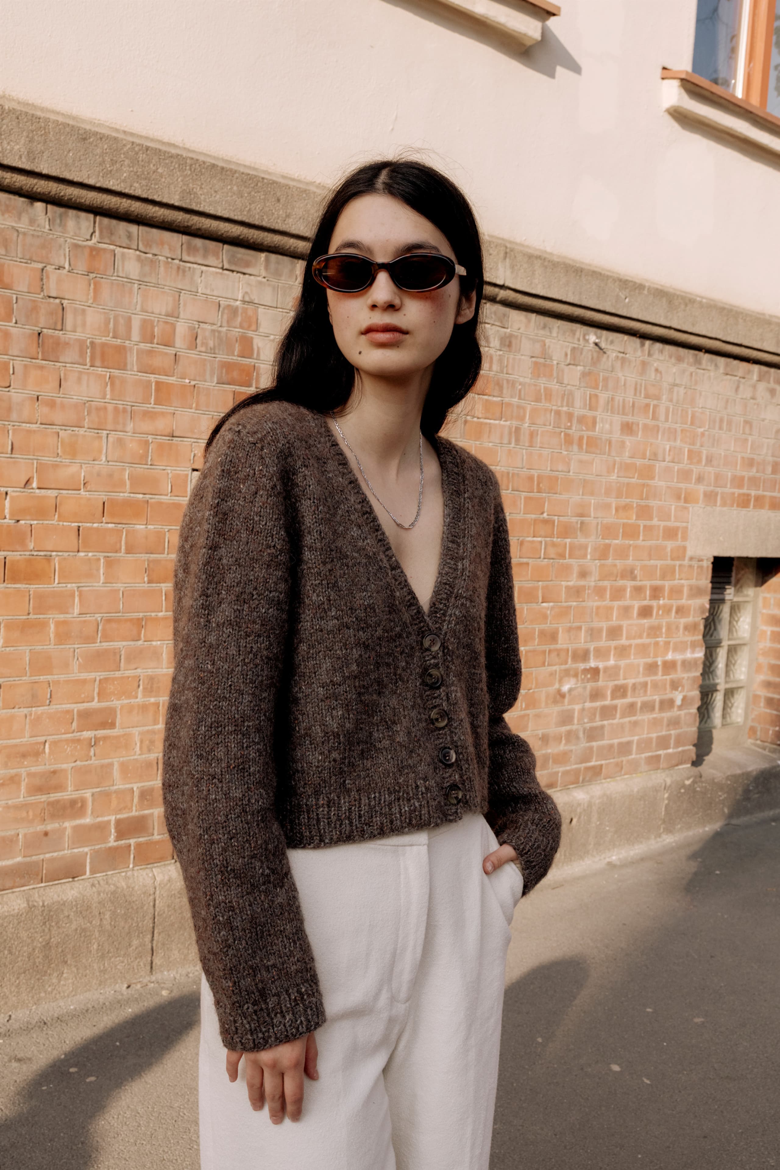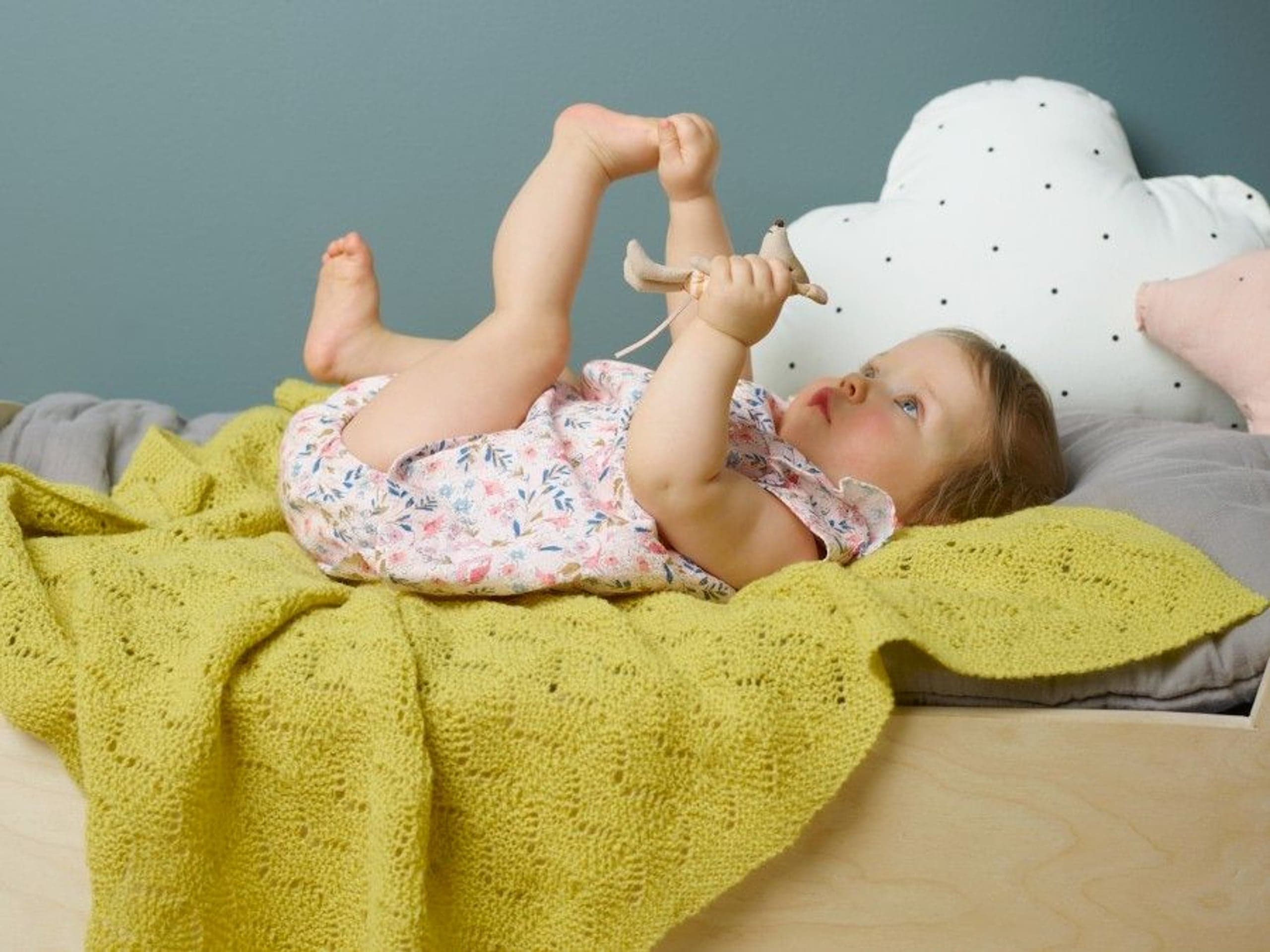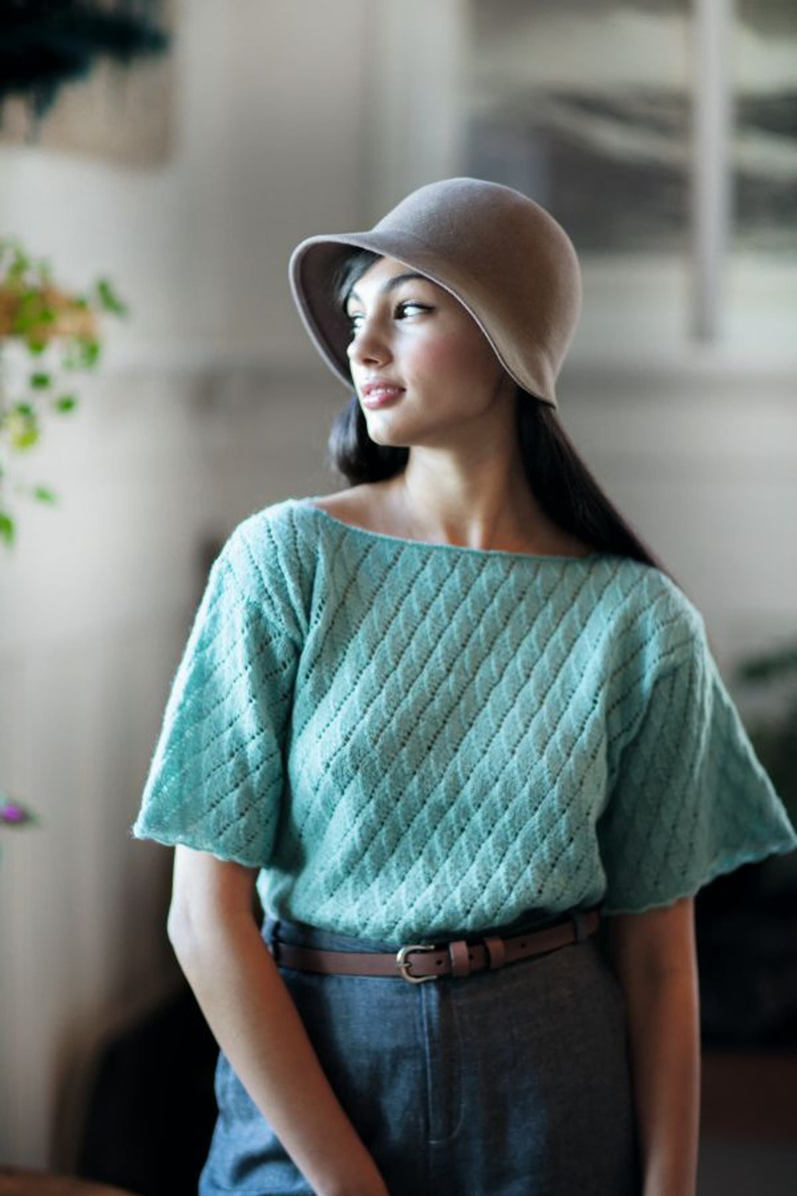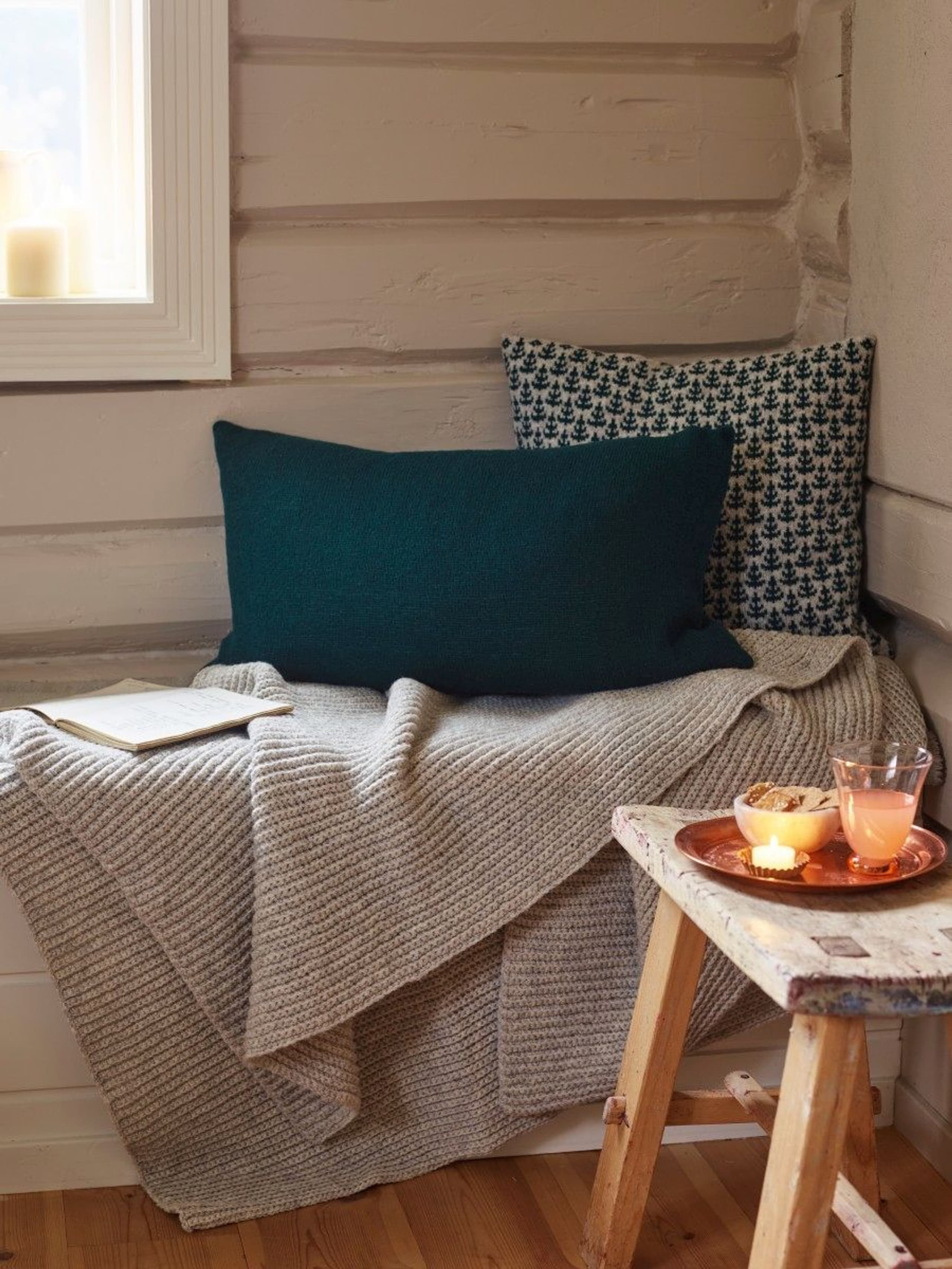 Garnkombinasjoner og forslag til strikkefasthet (p): Husk å strikke prøvelapp. Lamull + Plum: 20 m = 10 cm (3,5) Lamull + Alpaca Silk: 20 m = 10 cm (3) Lamull + Plum x 2: 18 m på 10 cm (4) Lamull x 2 : 18 m = 10 cm (3,5) Lamull + Tumi: 17 m = 10 cm (5) Lamull x 2 + Plum: 16 m = 10 cm (4,5) Lamull + Alpakka Lin: 14 m = 10 cm (4,5) Garnalternativer: Babygarn Inca Pandora