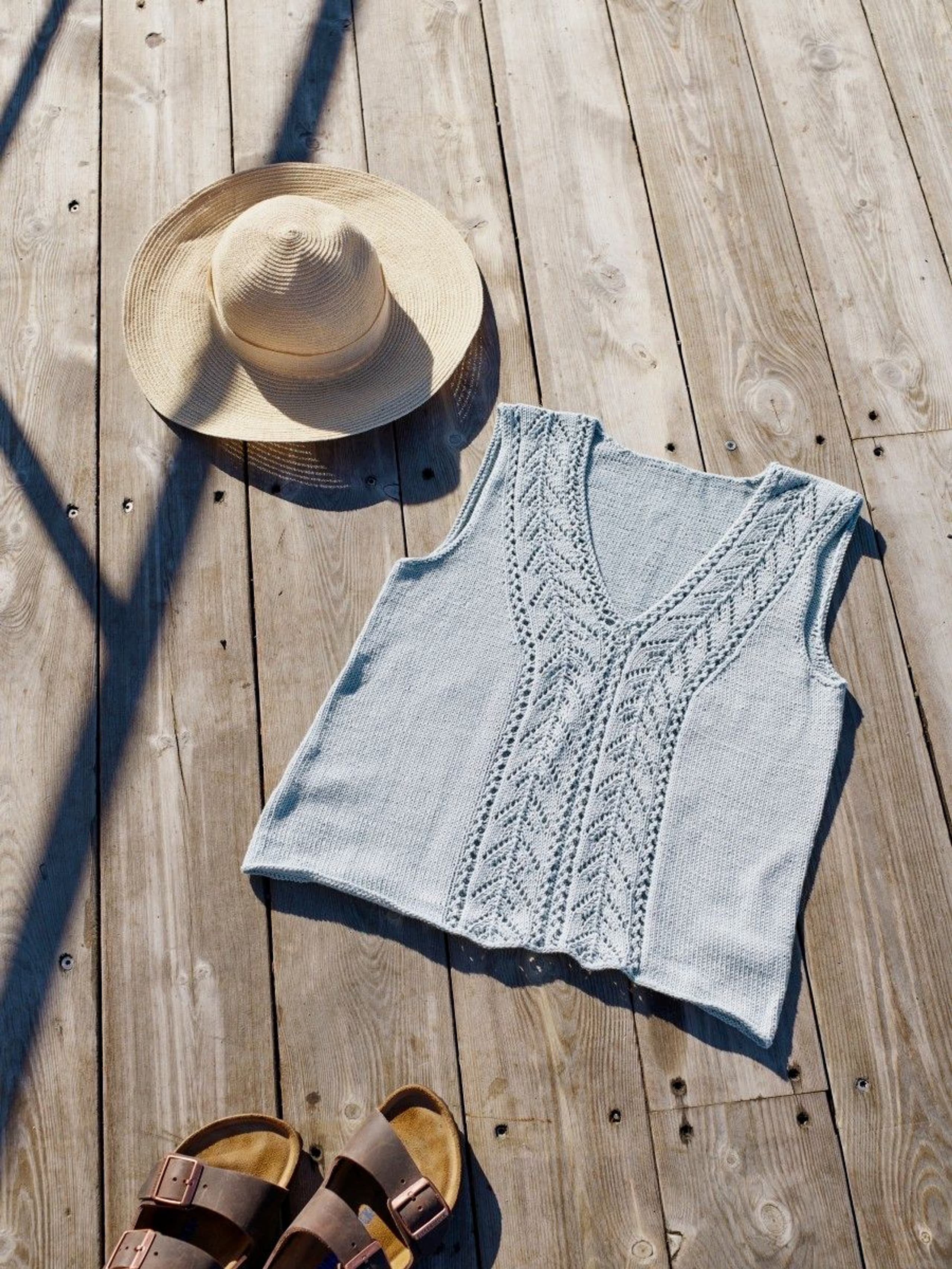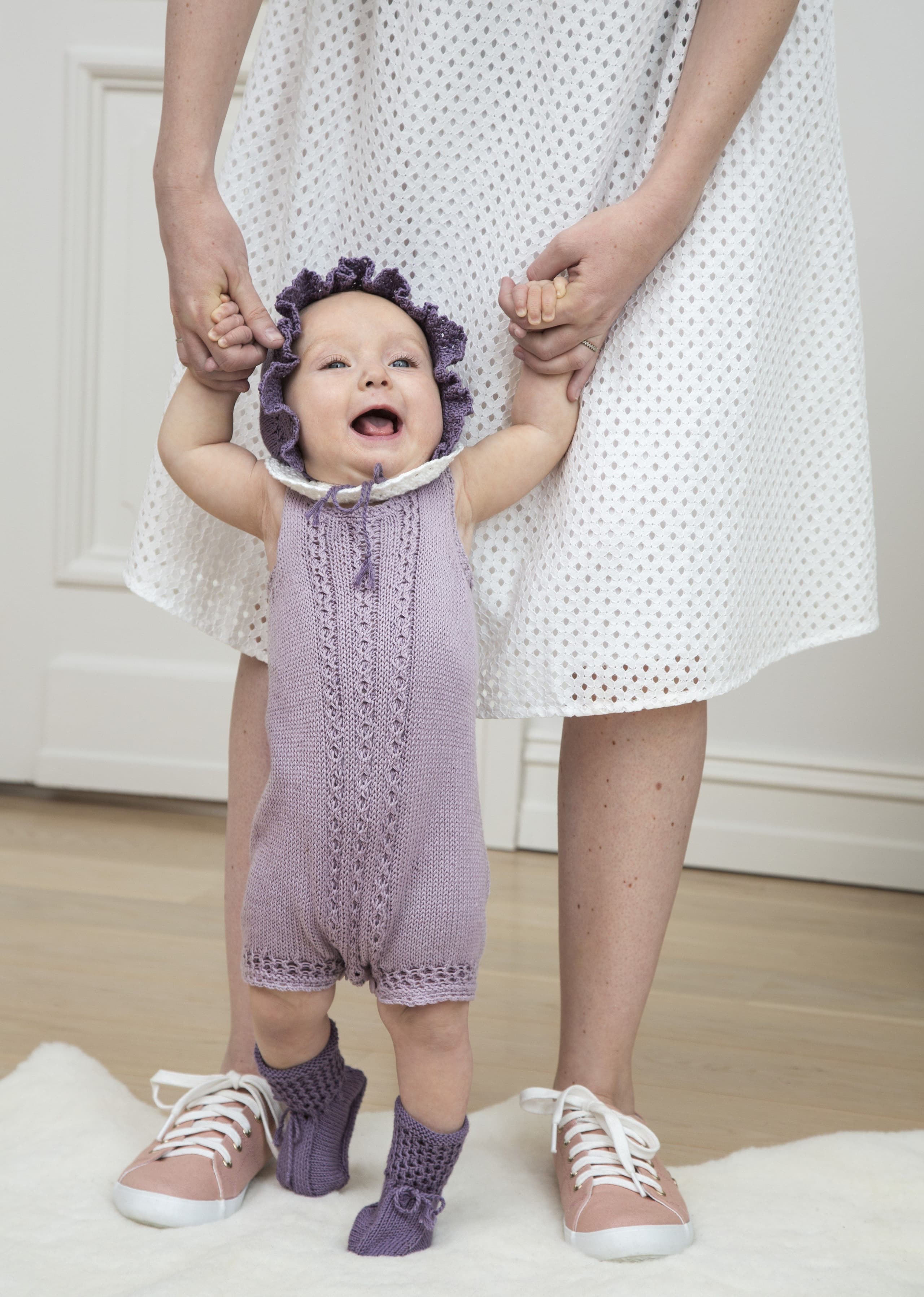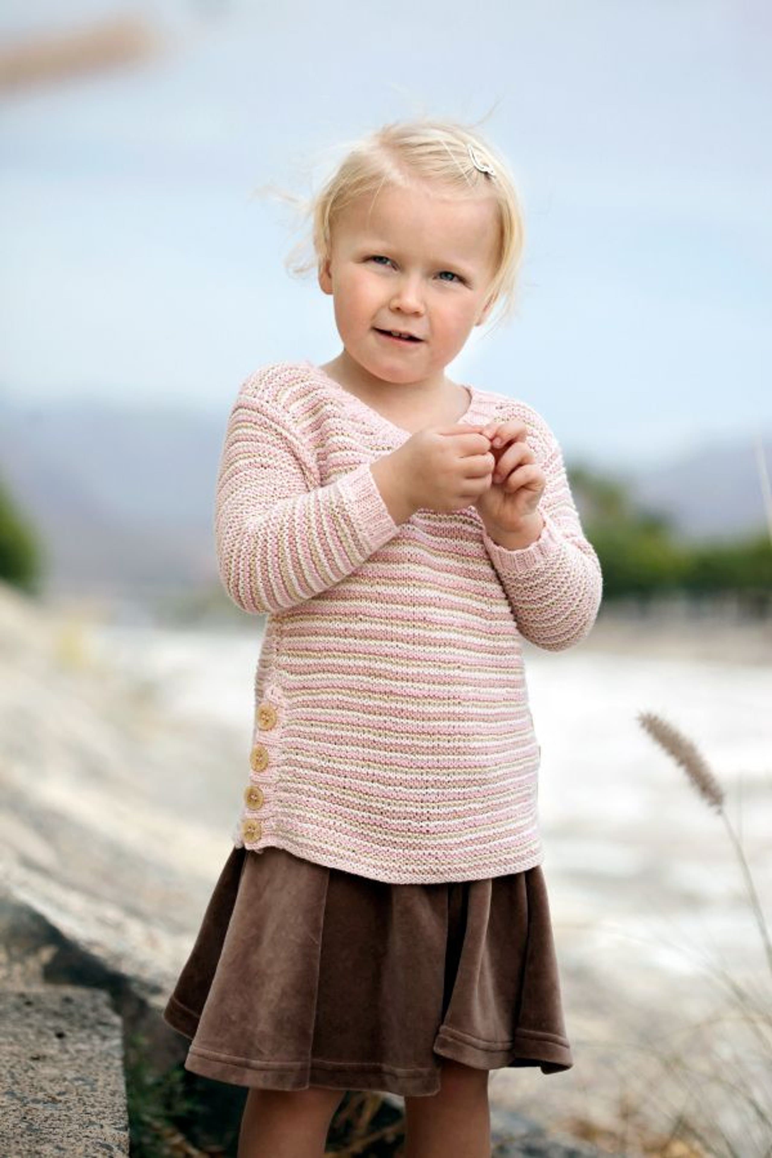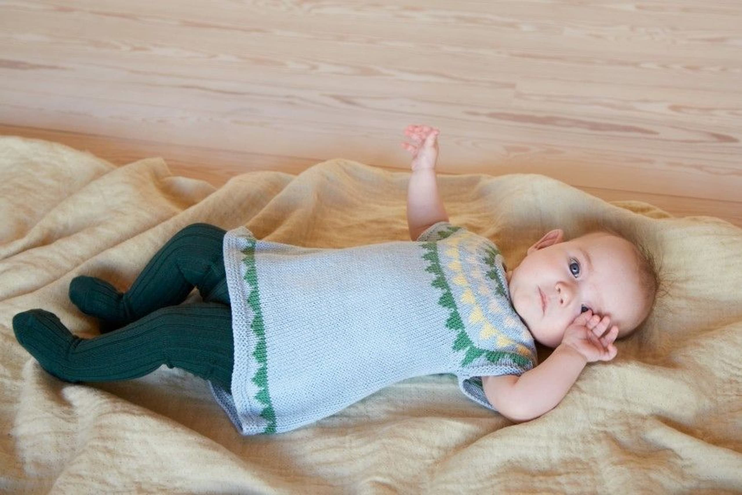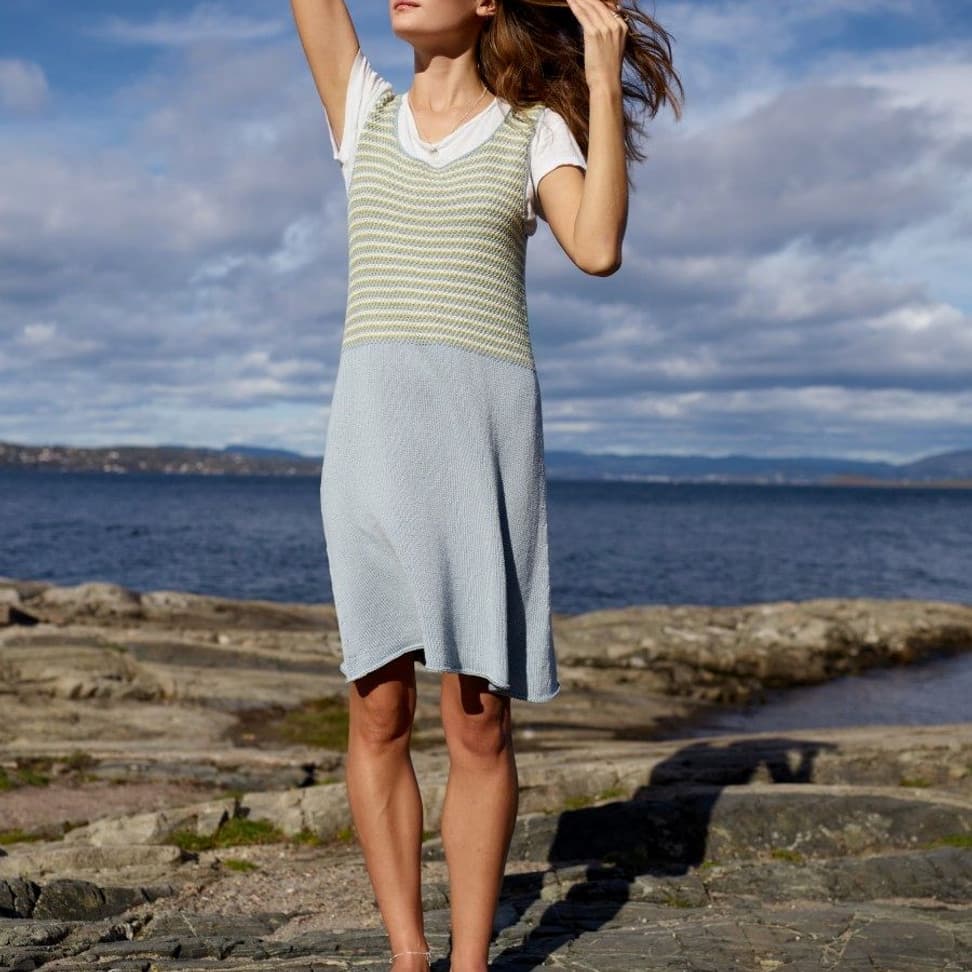 Garnkombinasjoner og forslag til strikkefasthet (p): Husk å strikke prøvelapp. Pandora x 2: 21 m = 10 cm (3,5) Garnalternativer: Lamull Inca Babygarn