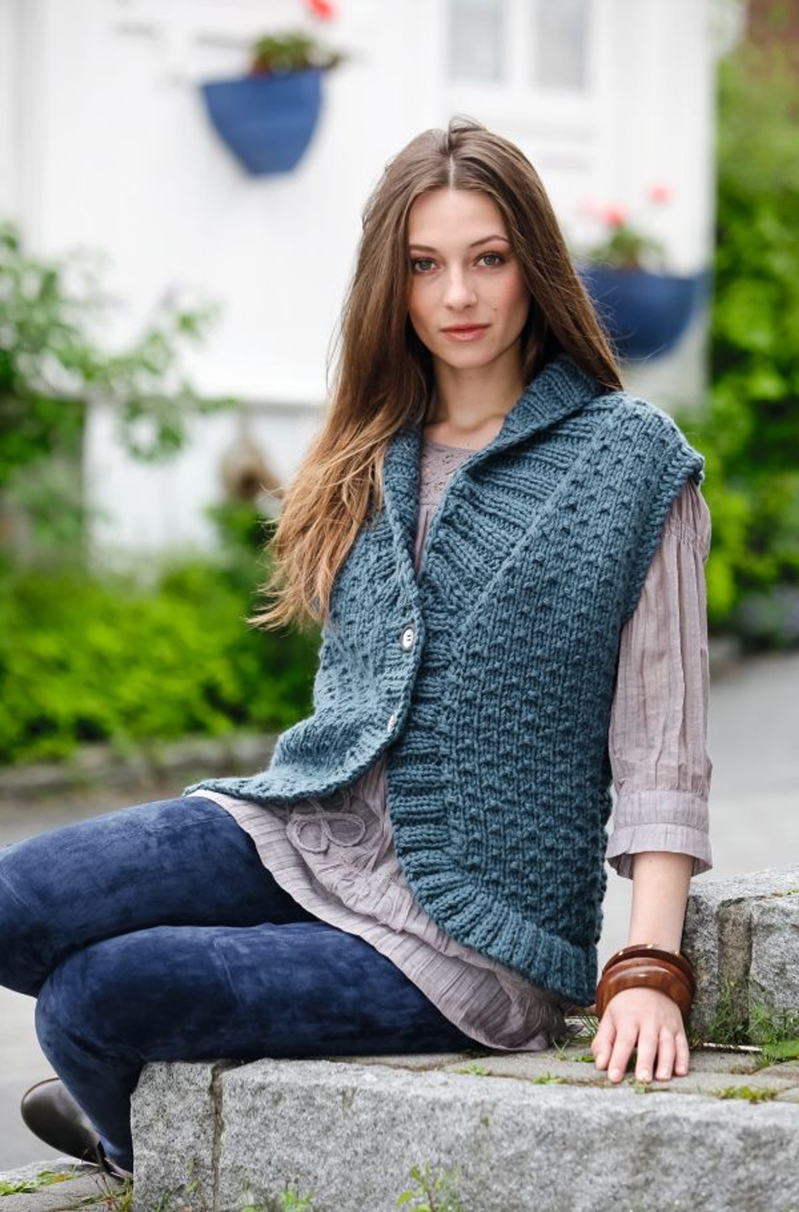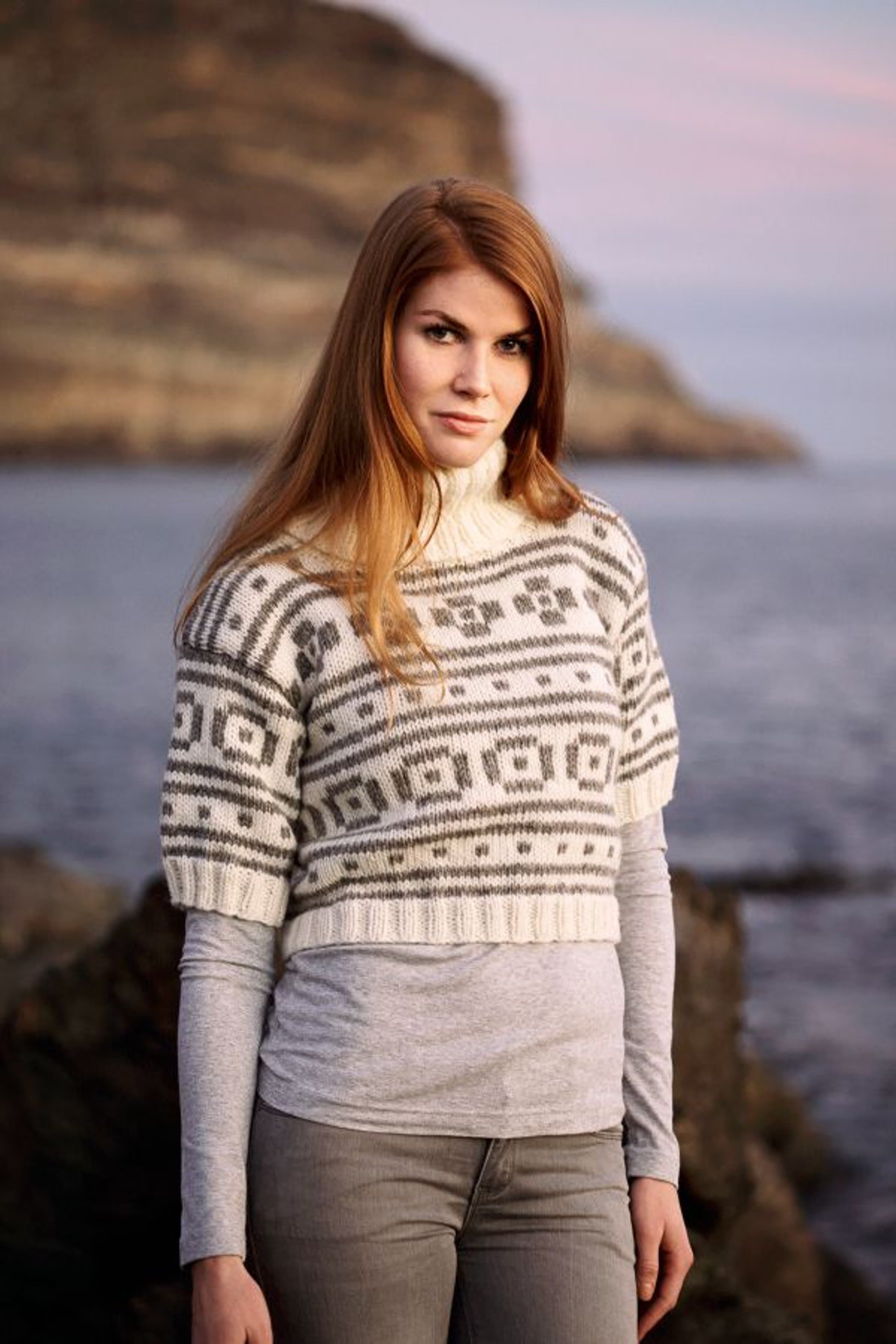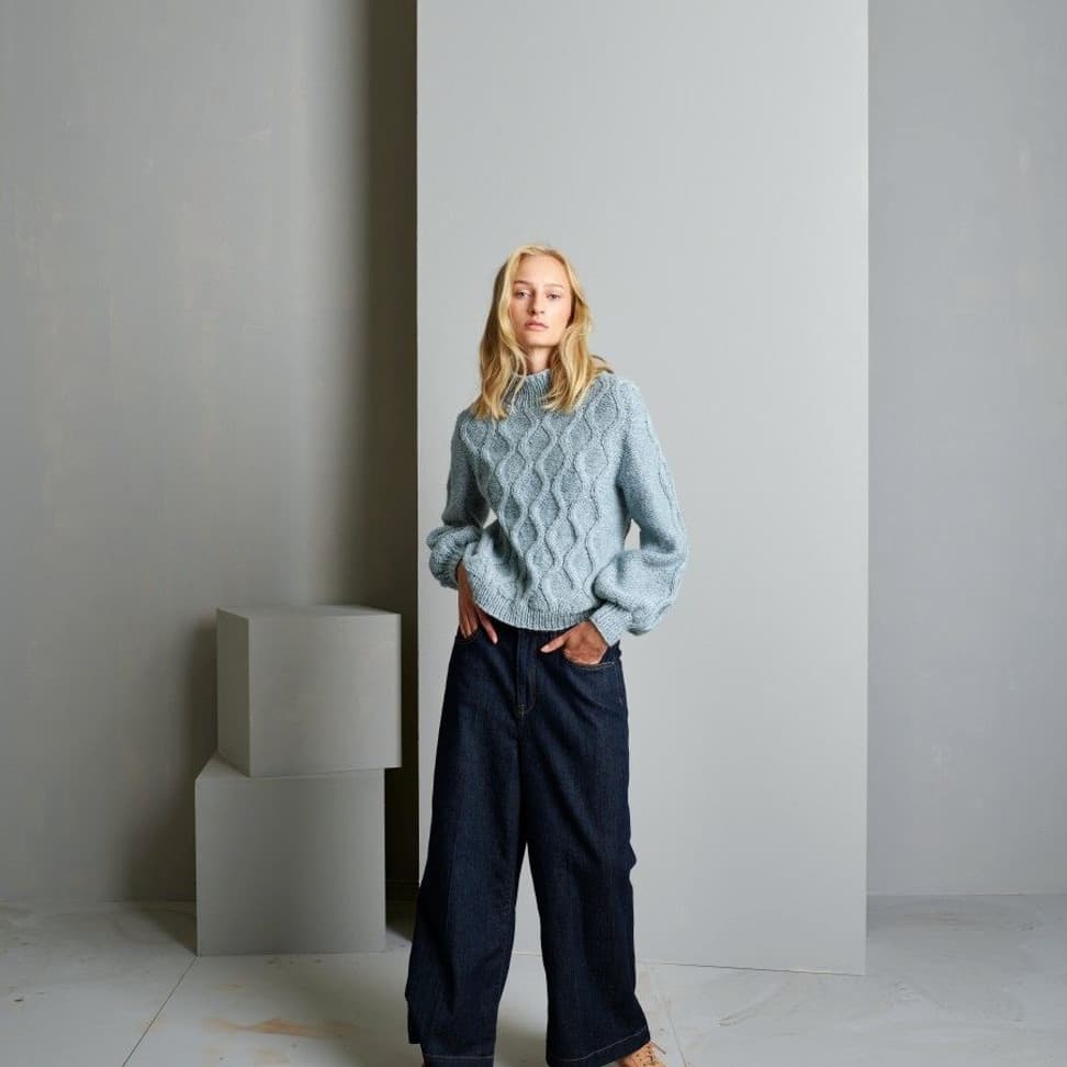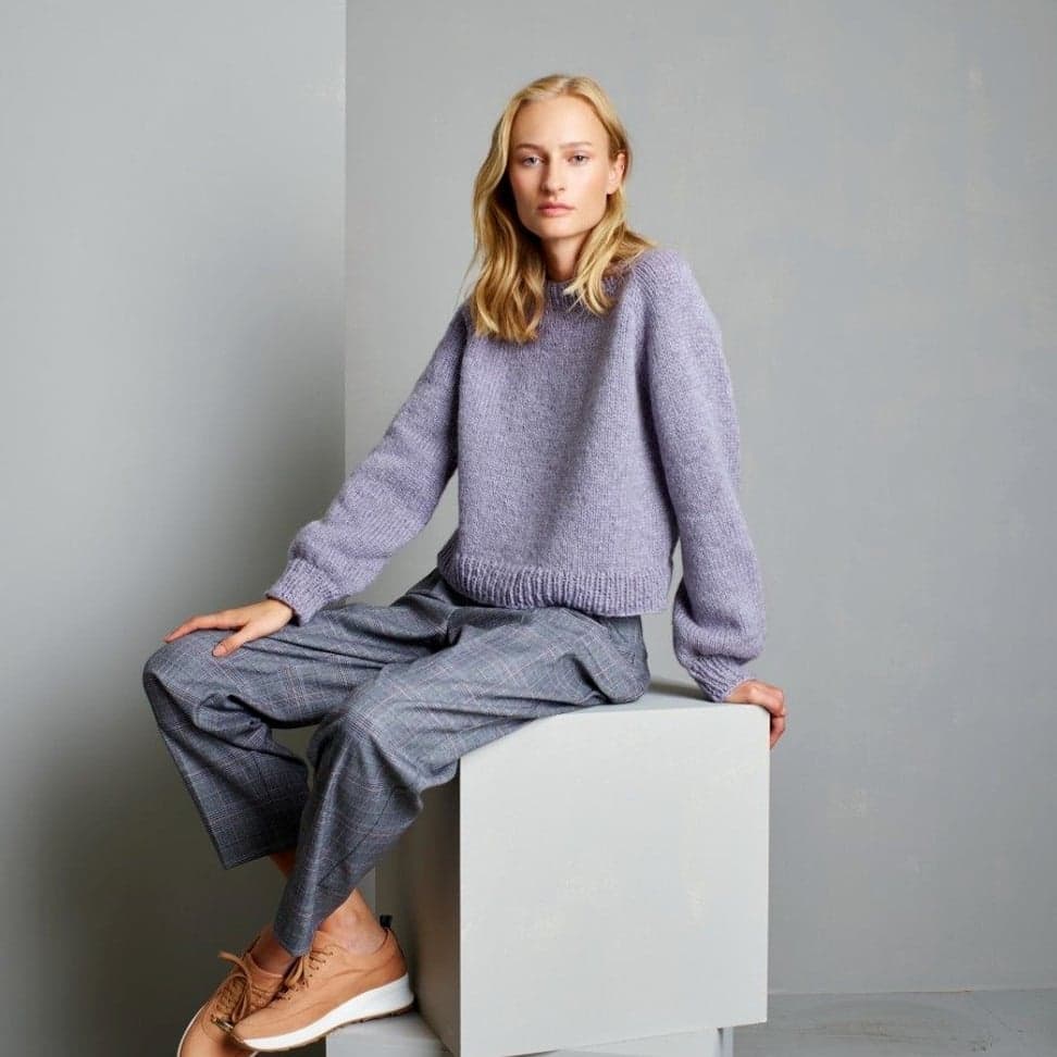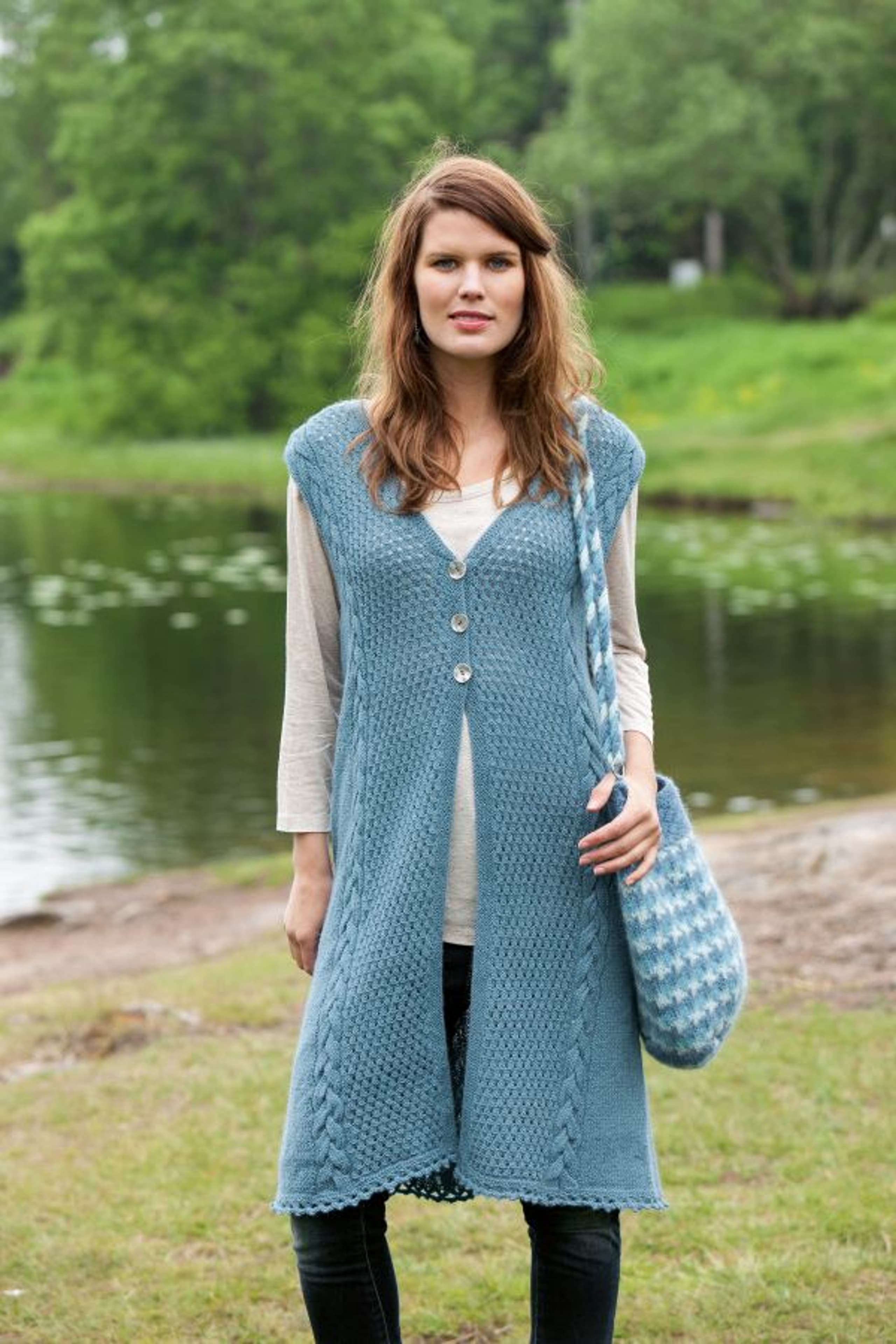 Garnkombinasjoner og forslag til strikkefasthet (p): Husk å strikke prøvelapp. Vams + Plum: 12 m = 10 cm (7) Vams + Alpaca Silk: 12 m = 10 cm (7) Garnalternativer: Puno Finull og Alpakka Lin Alpakka Lin x2