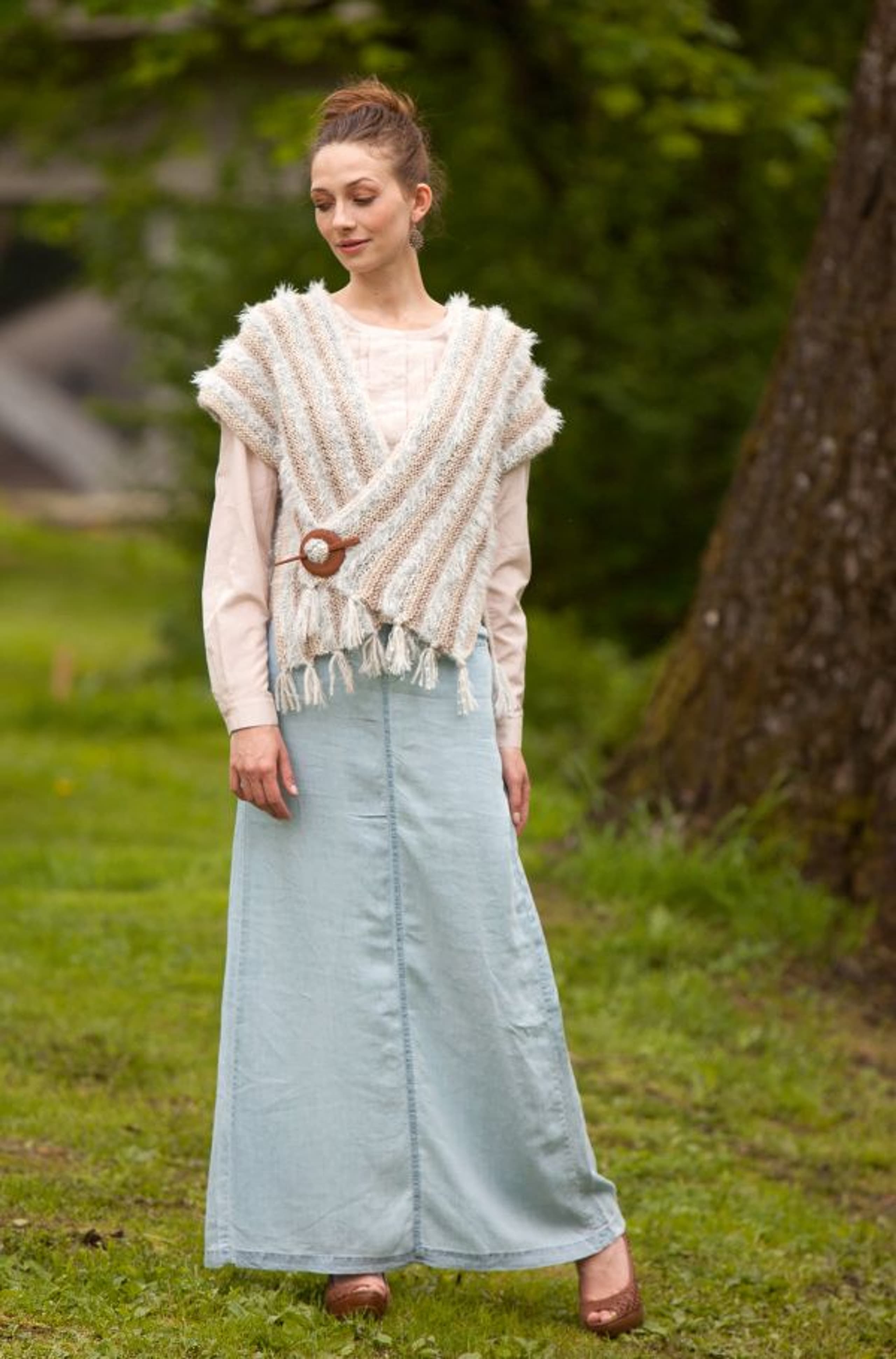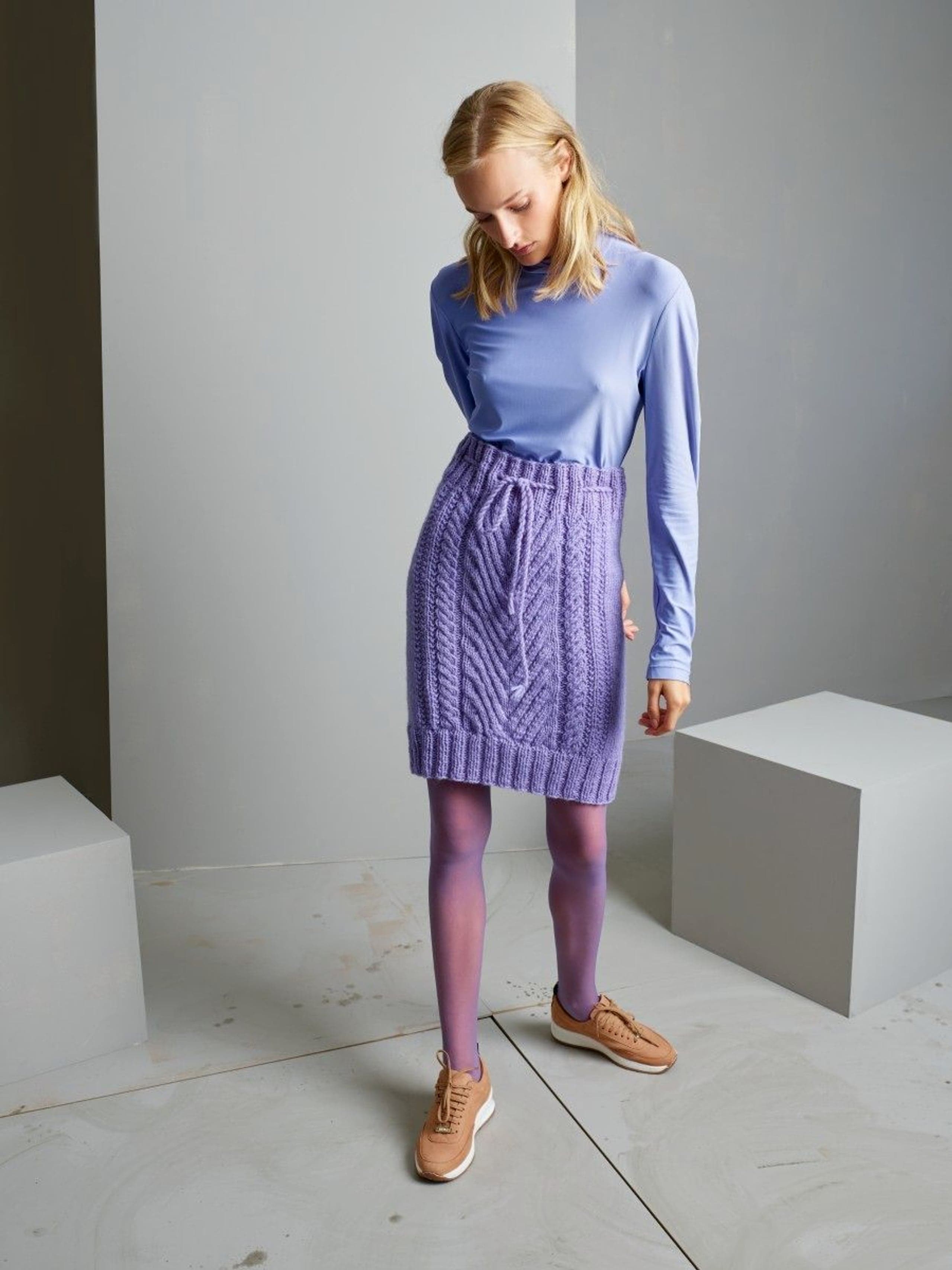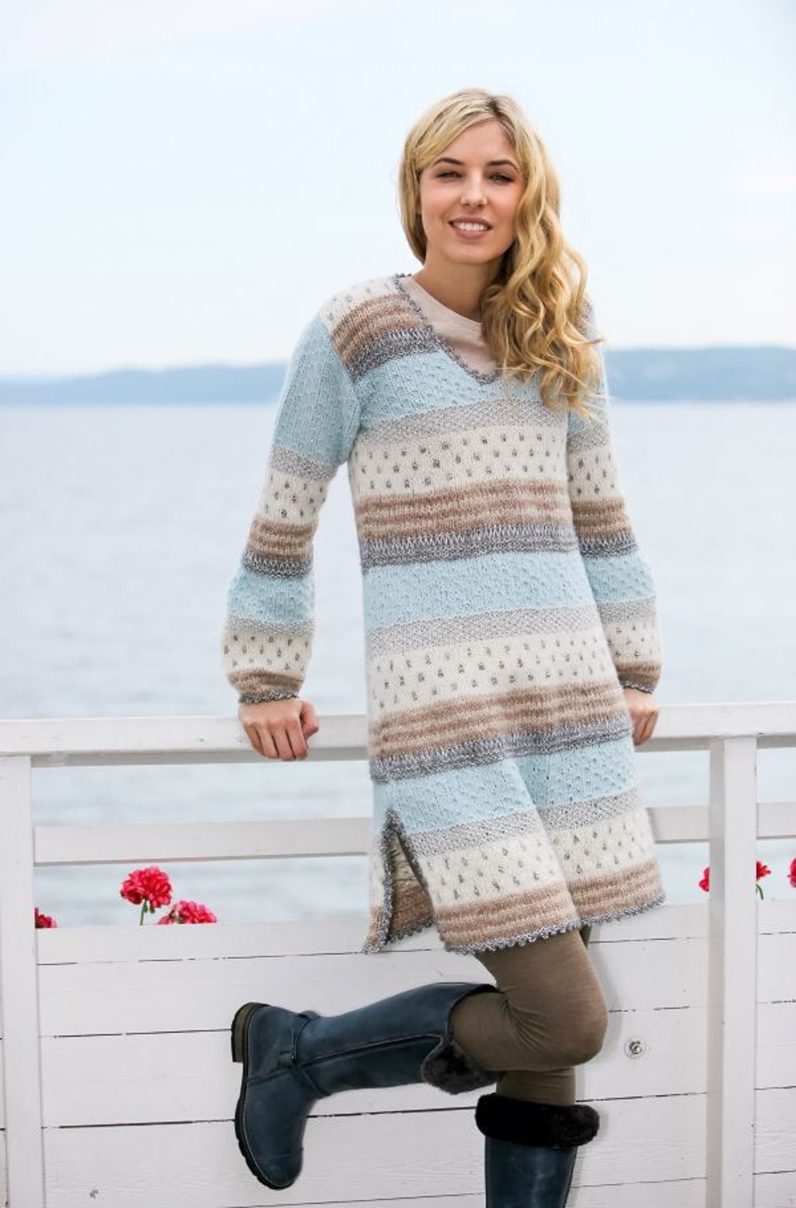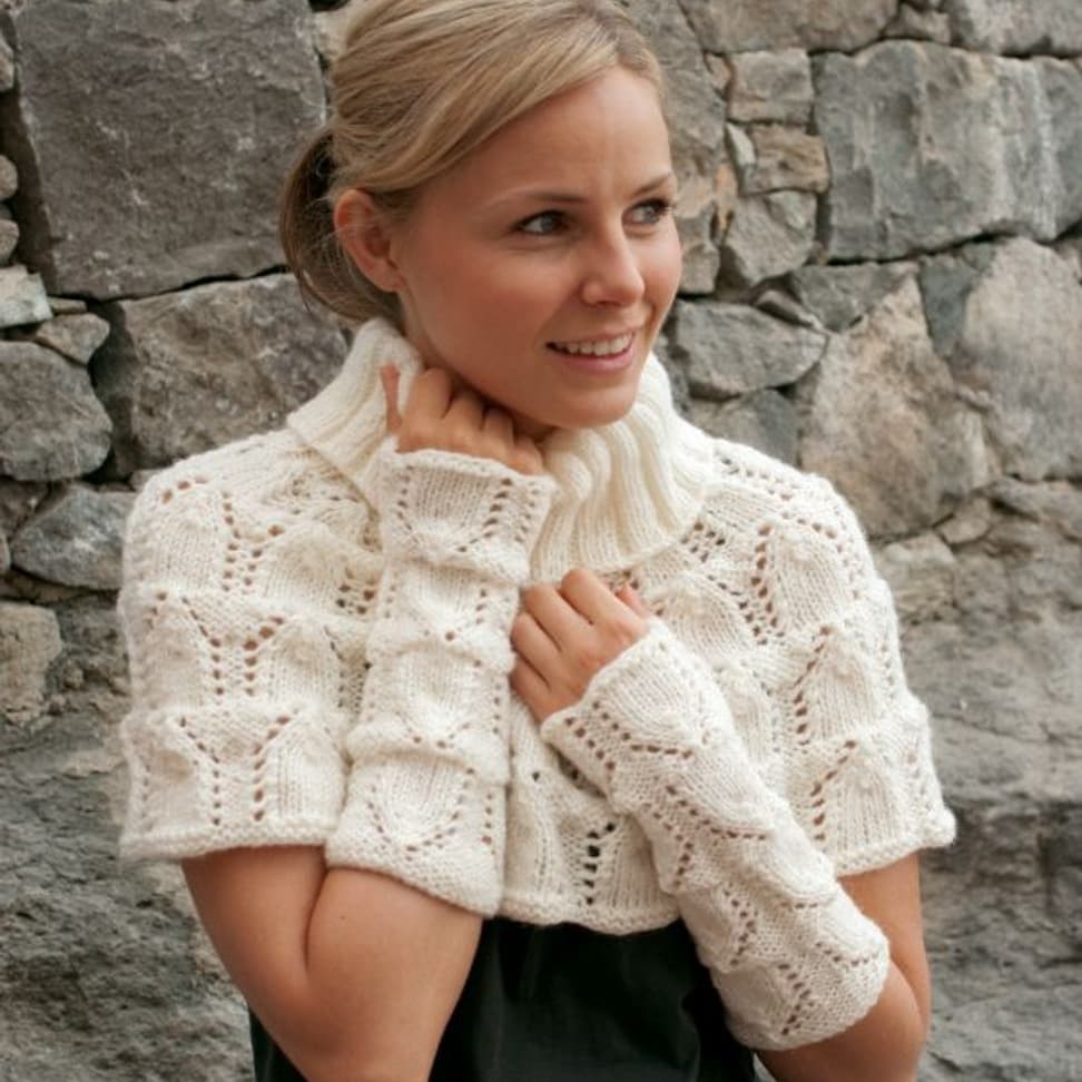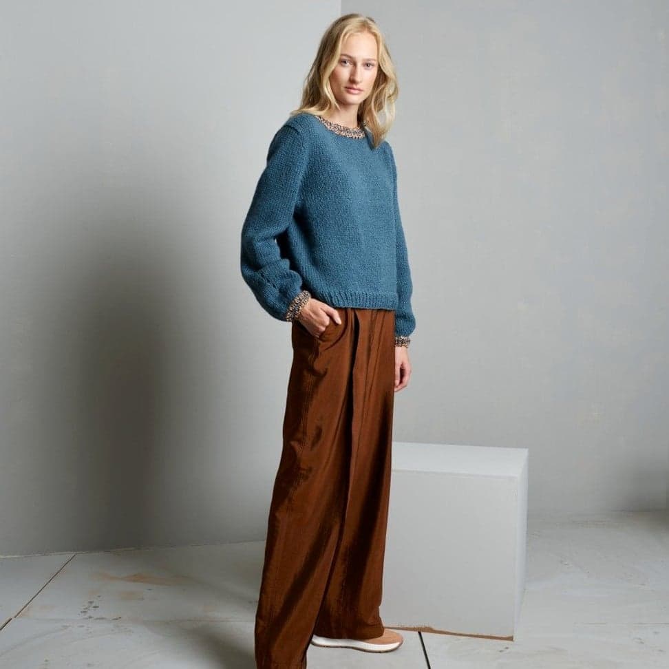 Garnkombinasjoner og forslag til strikkefasthet (p): Husk å strikke prøvelapp. Vams + Plum: 12 m = 10 cm (7) Vams + Alpaca Silk: 12 m = 10 cm (7) Garnalternativer: Puno Finull og Alpakka Lin Alpakka Lin x2