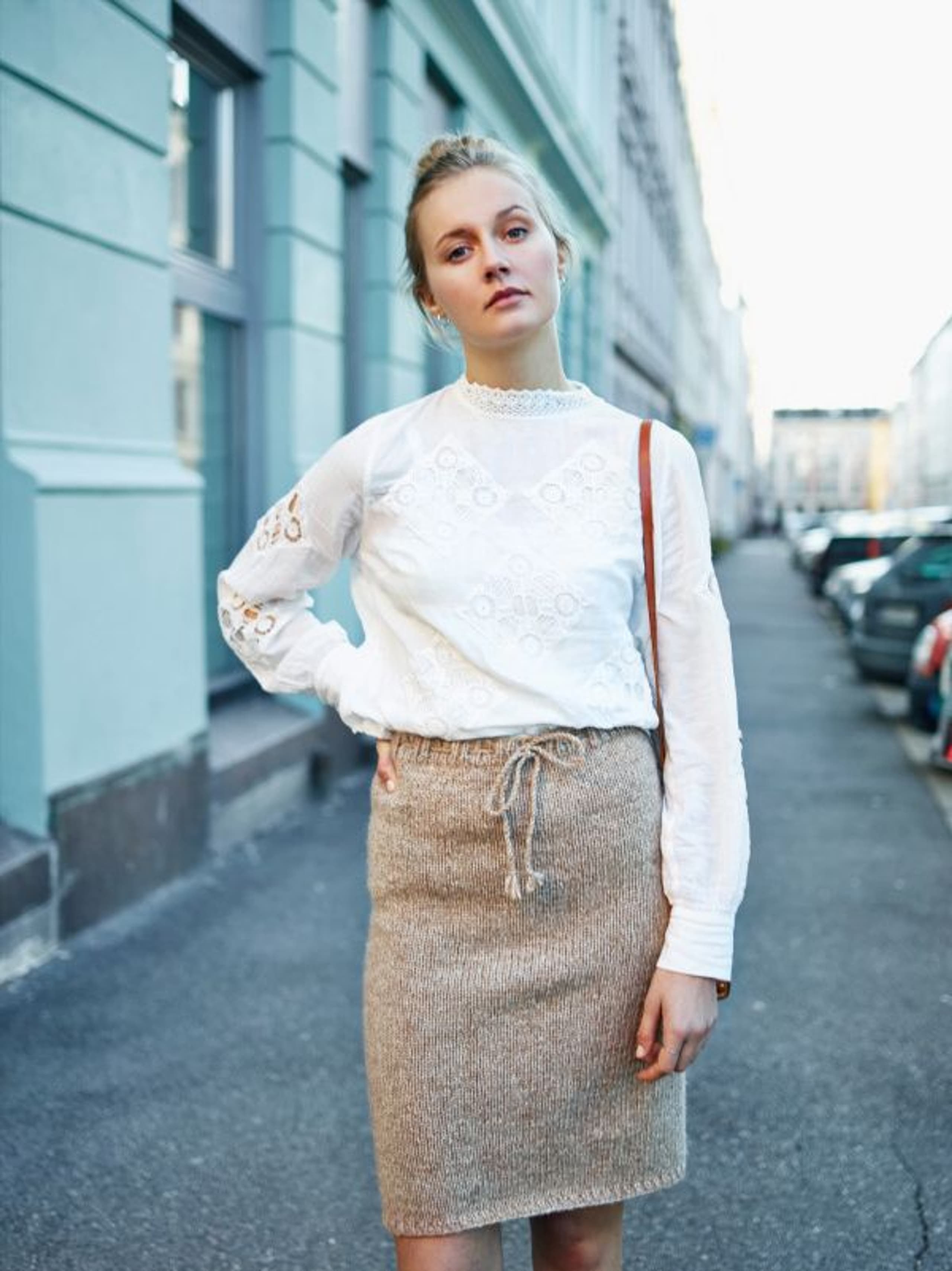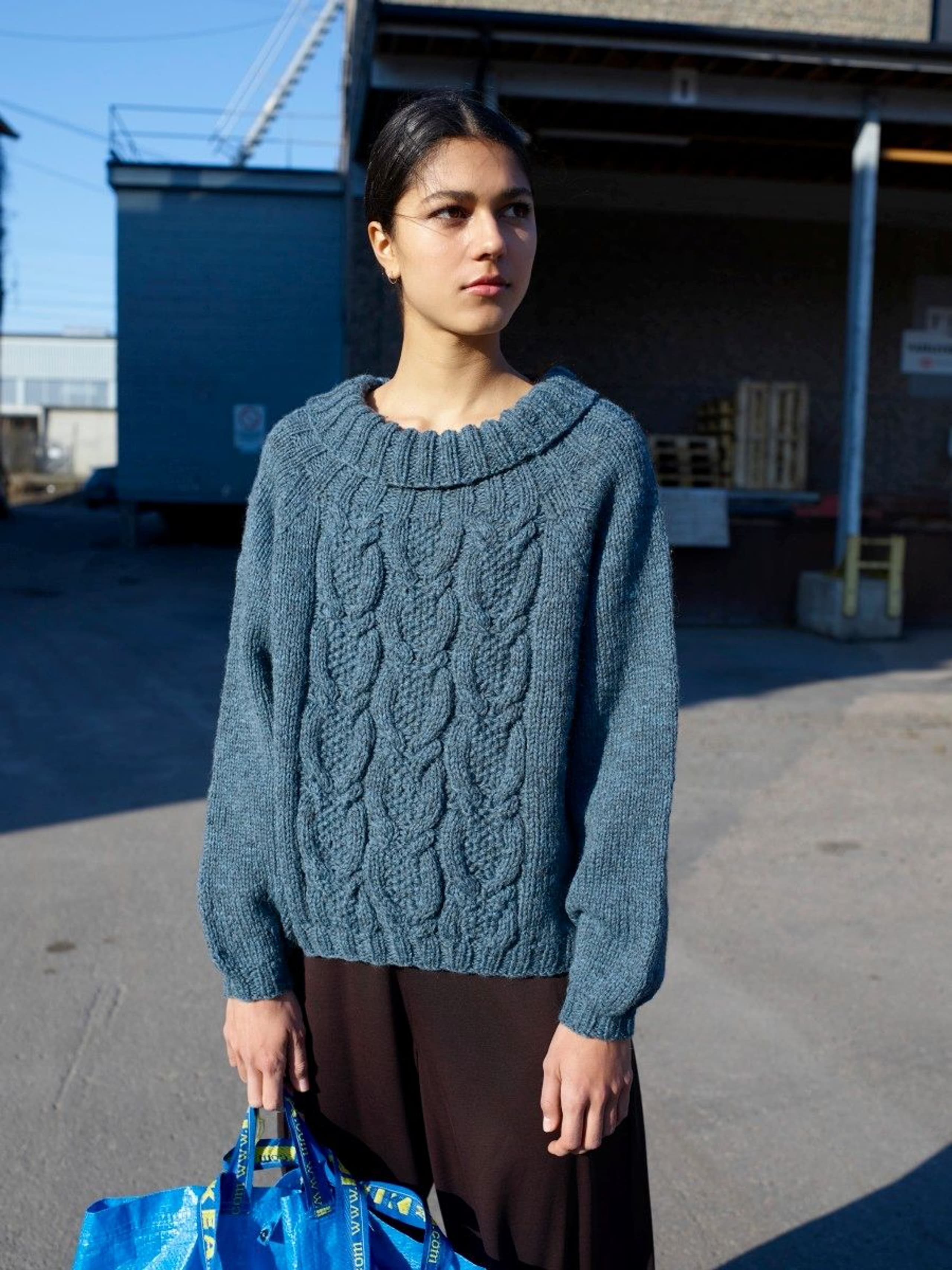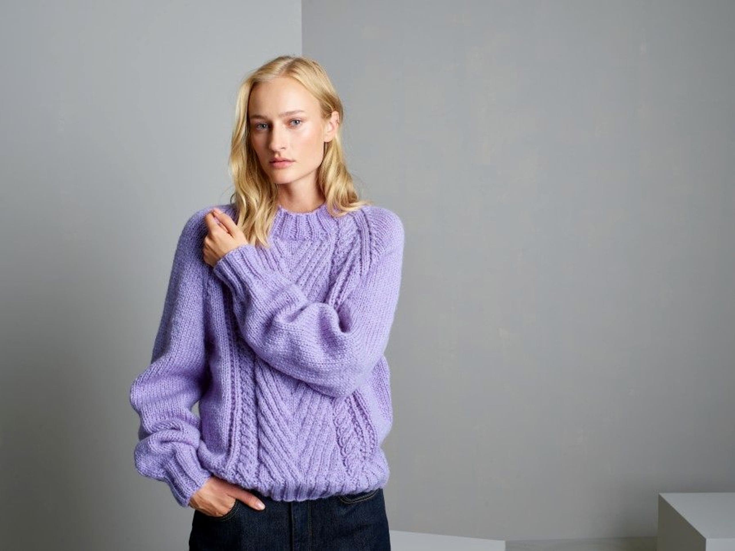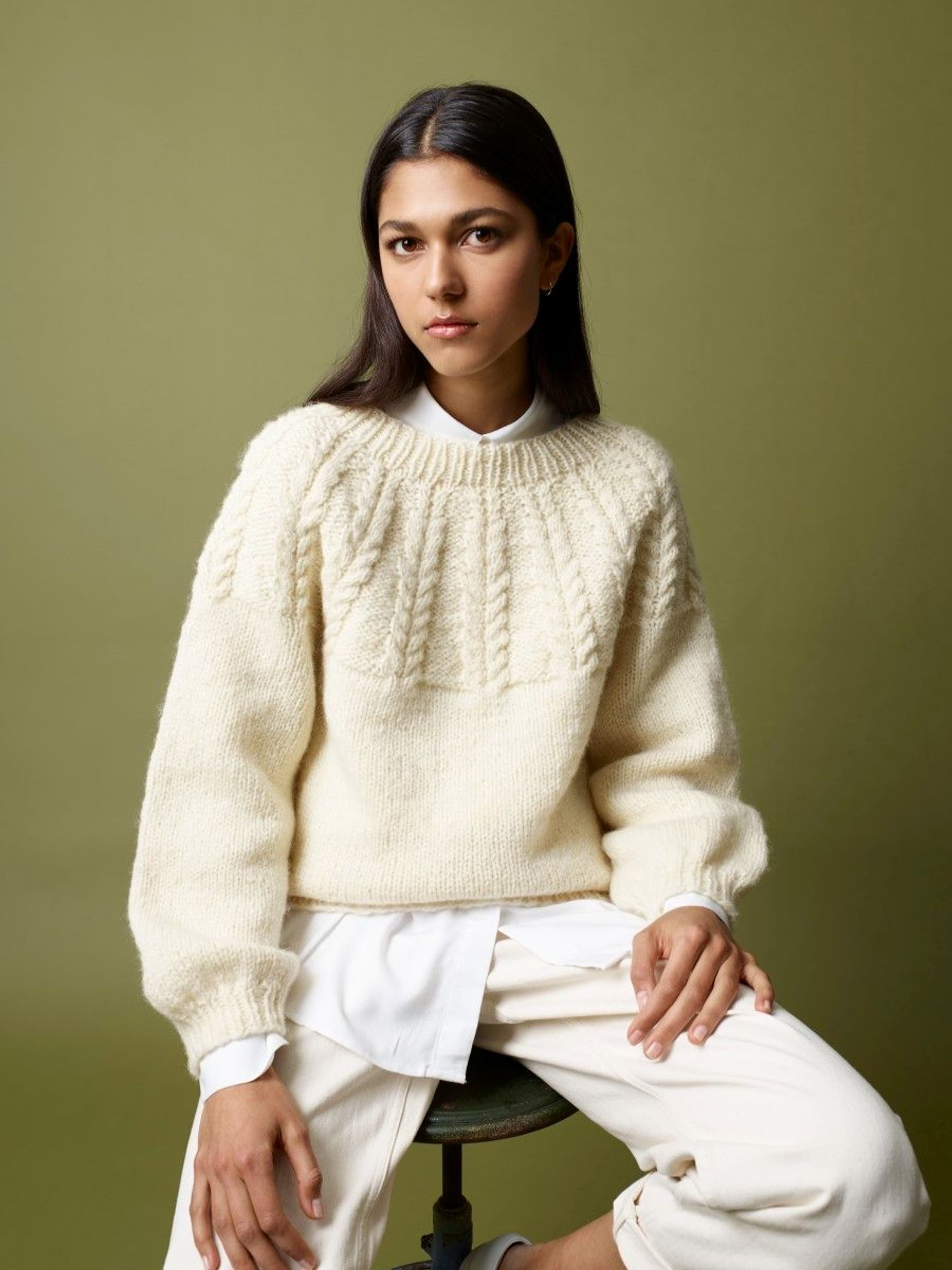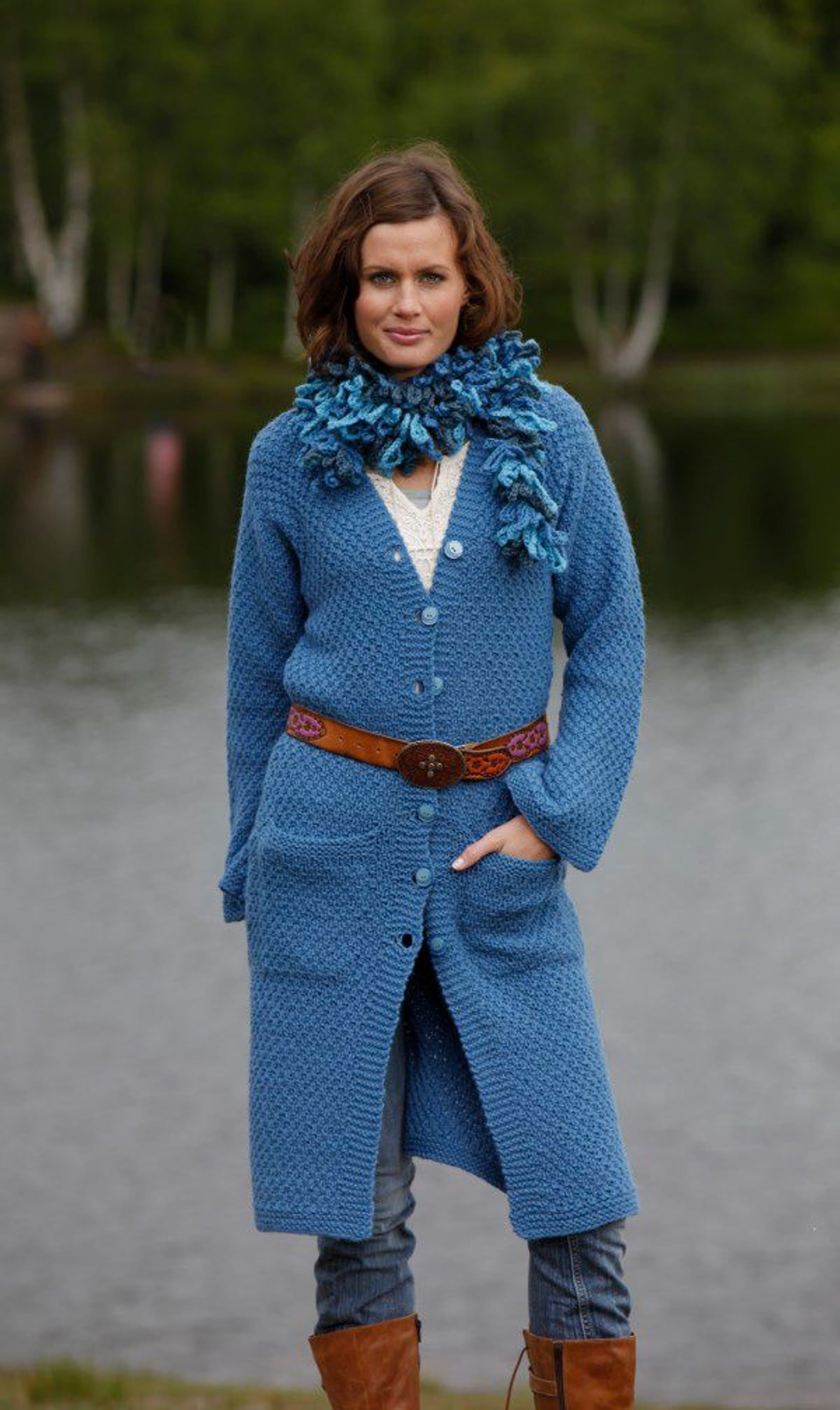 Garnkombinasjoner og forslag til strikkefasthet (p): Husk å strikke prøvelapp. Vams + Plum: 12 m = 10 cm (7) Vams + Alpaca Silk: 12 m = 10 cm (7) Garnalternativer: Puno Finull og Alpakka Lin Alpakka Lin x2