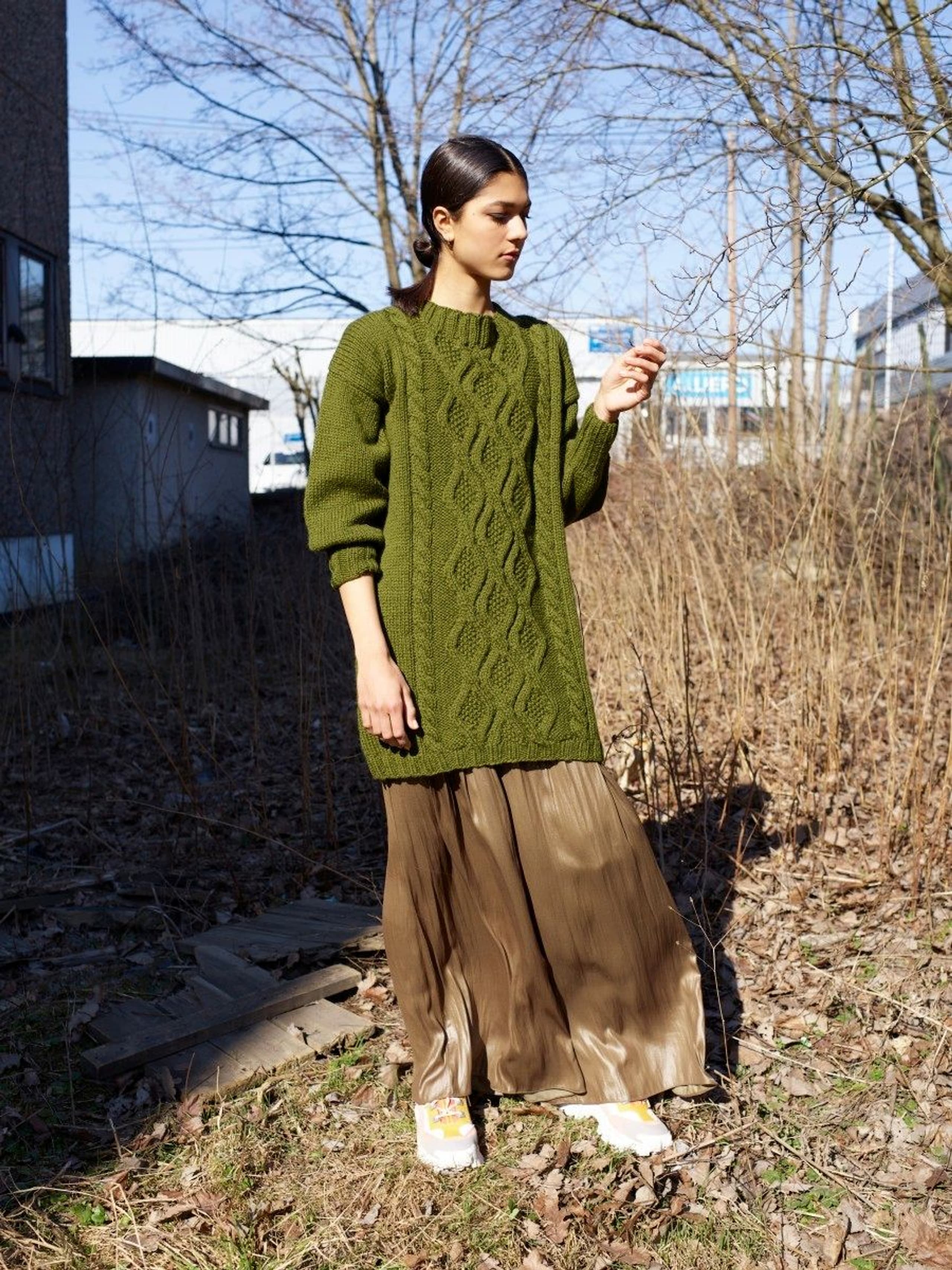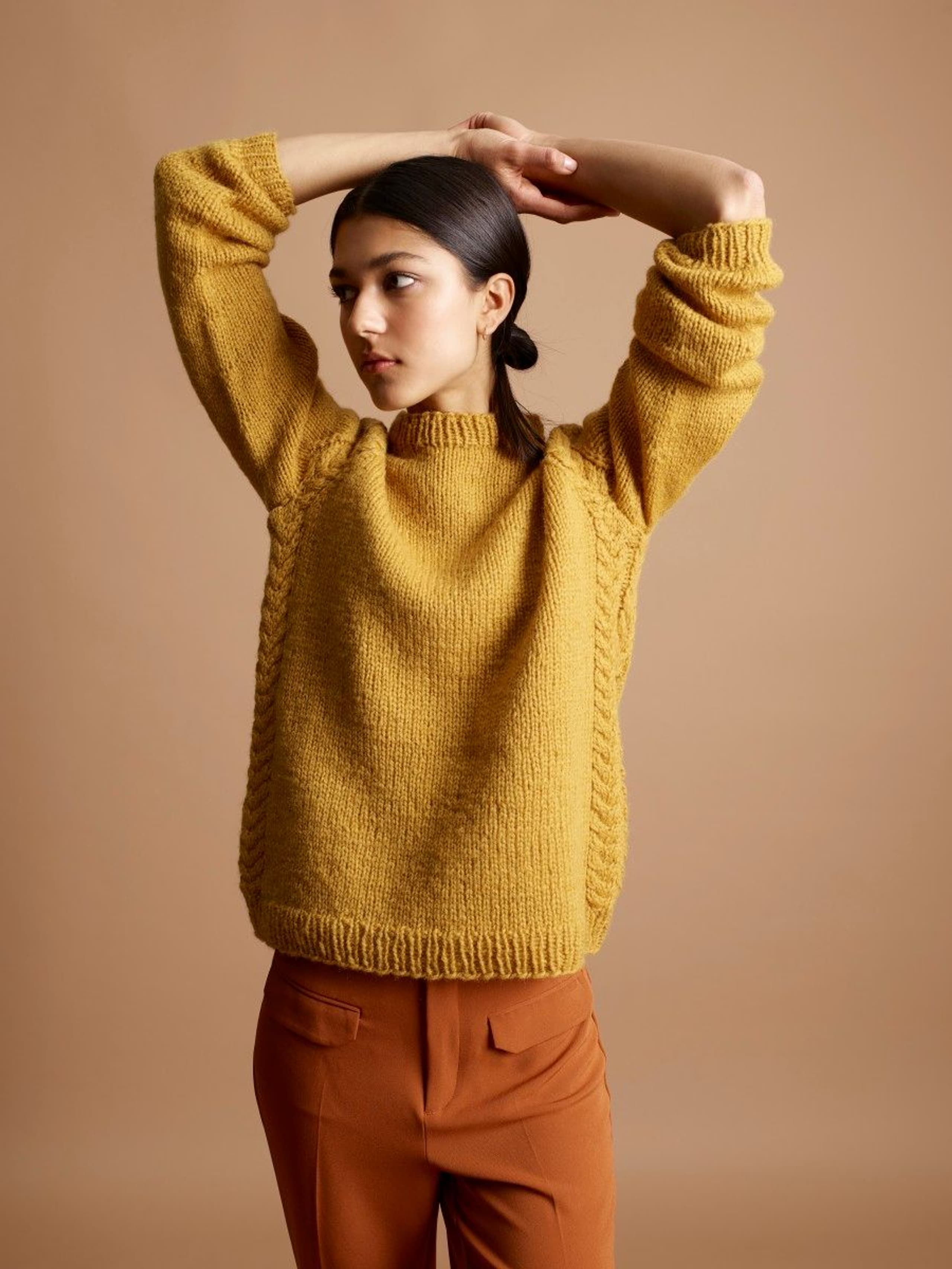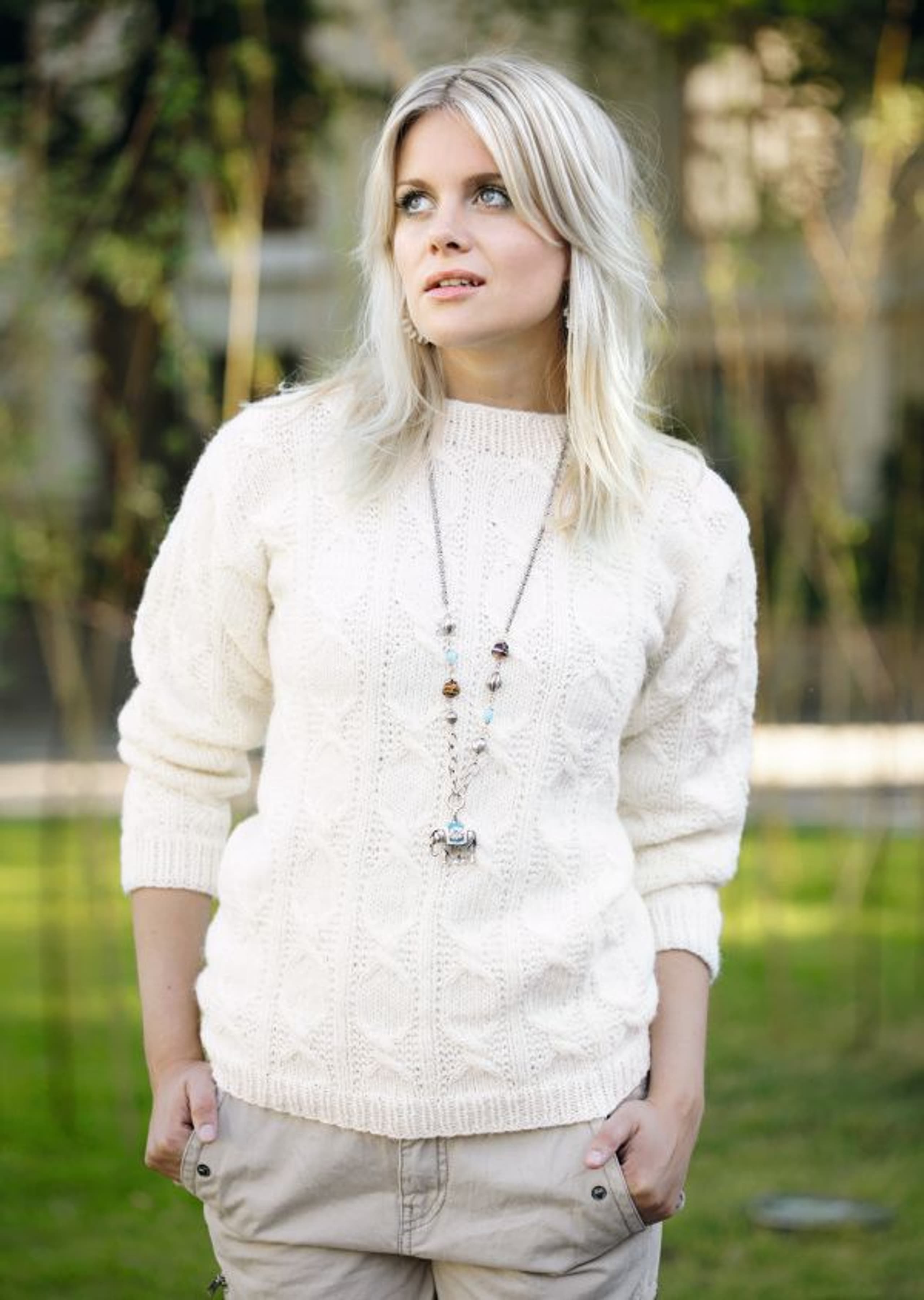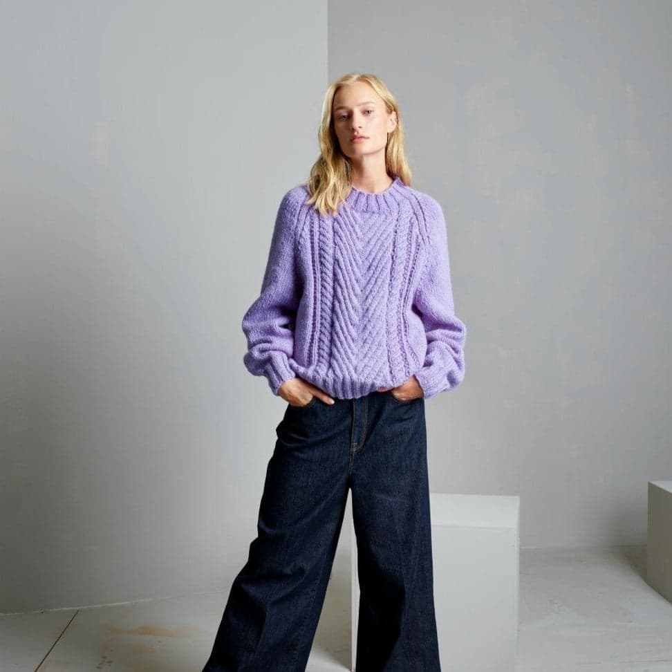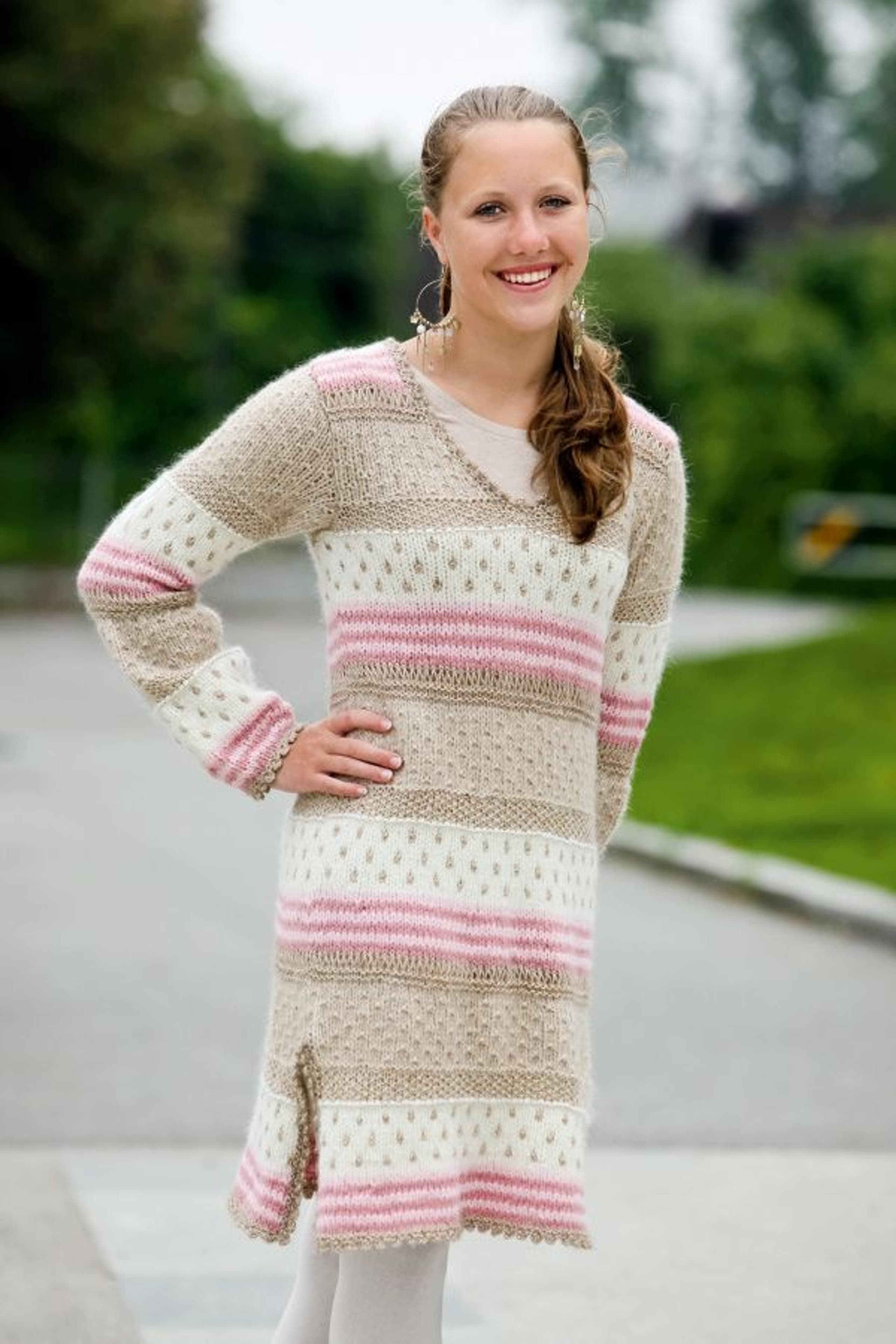 Garnkombinasjoner og forslag til strikkefasthet (p): Husk å strikke prøvelapp. Vams + Plum: 12 m = 10 cm (7) Vams + Alpaca Silk: 12 m = 10 cm (7) Garnalternativer: Puno Finull og Alpakka Lin Alpakka Lin x2