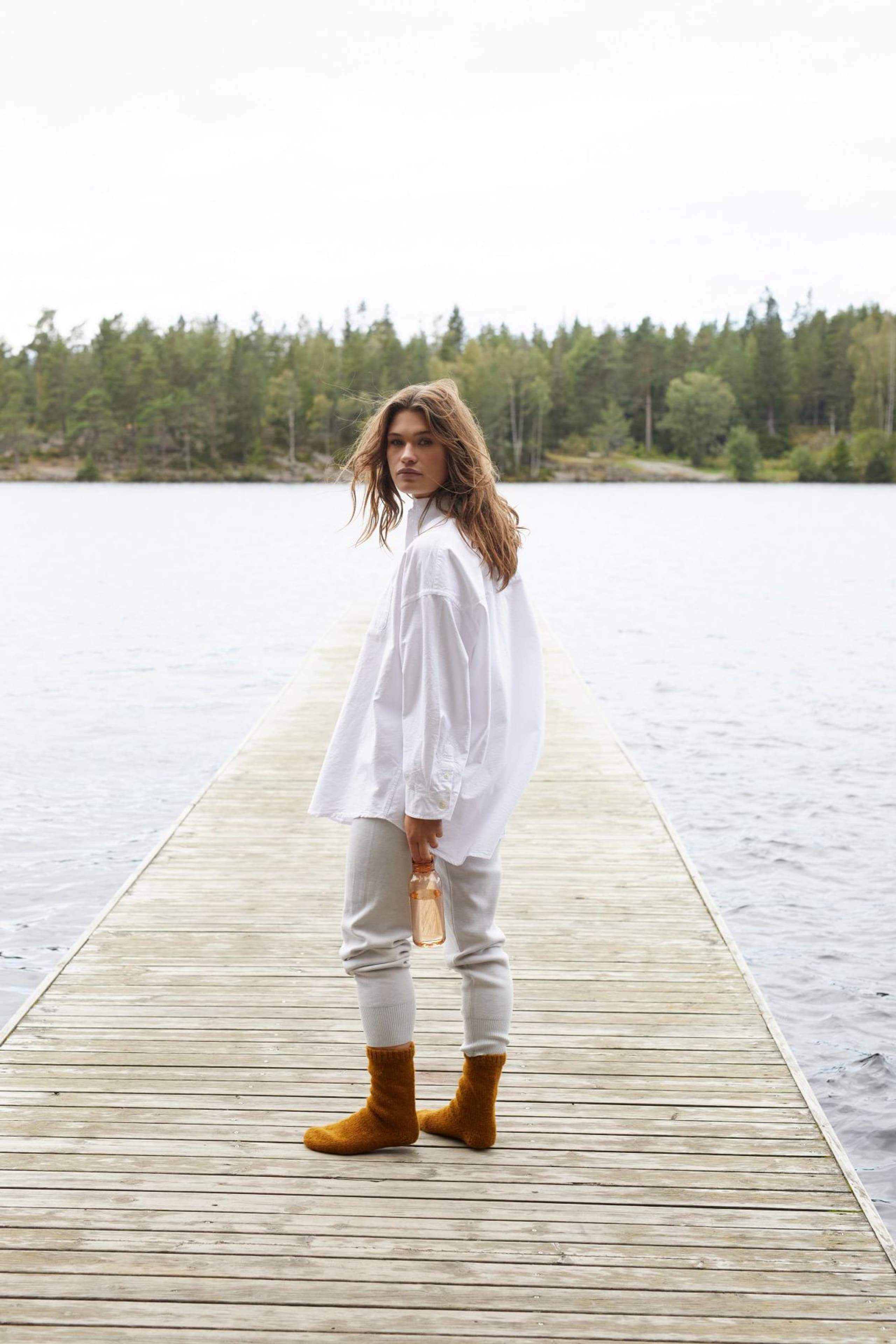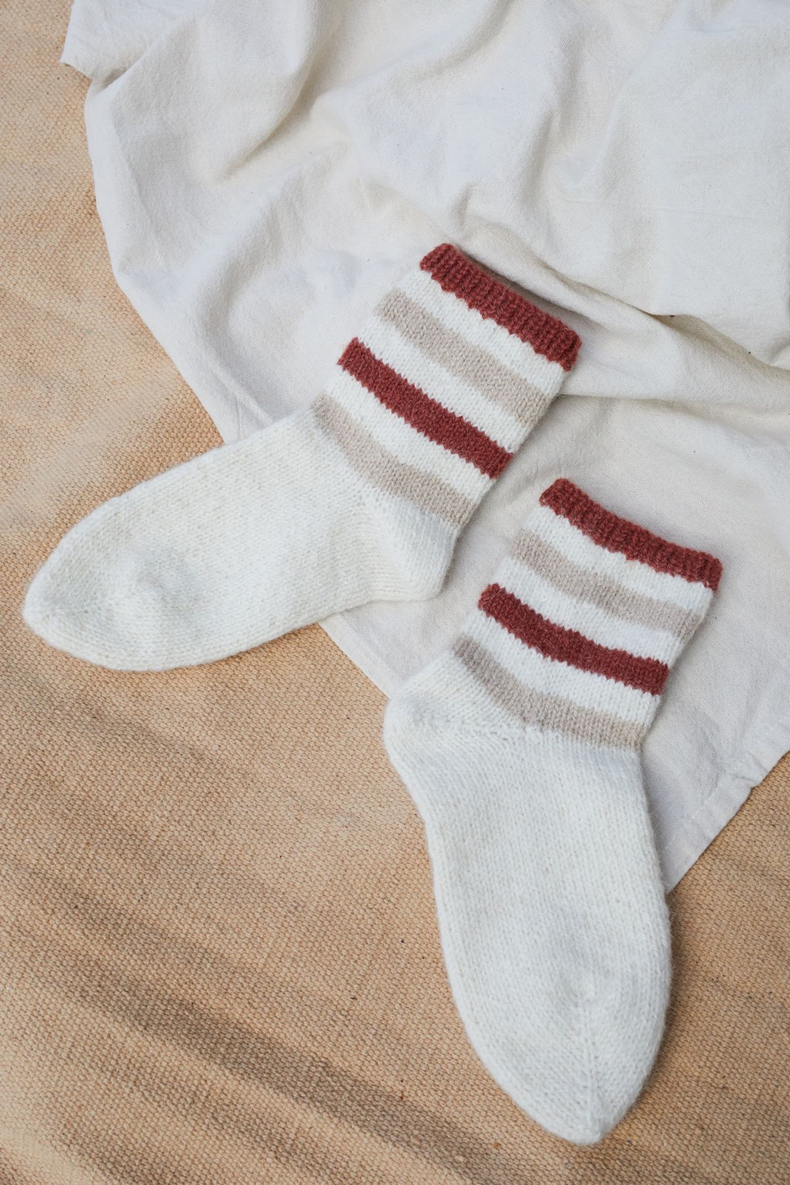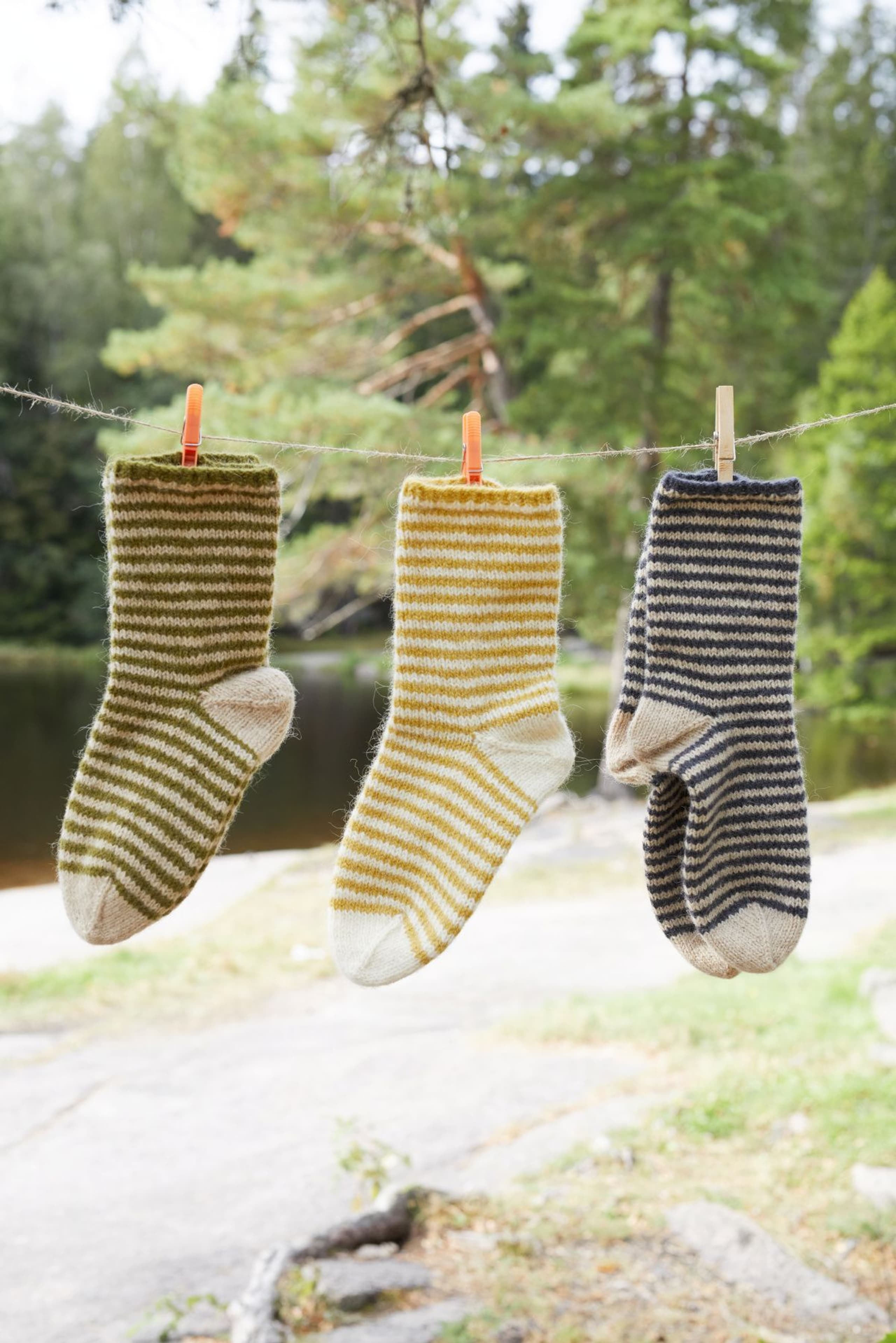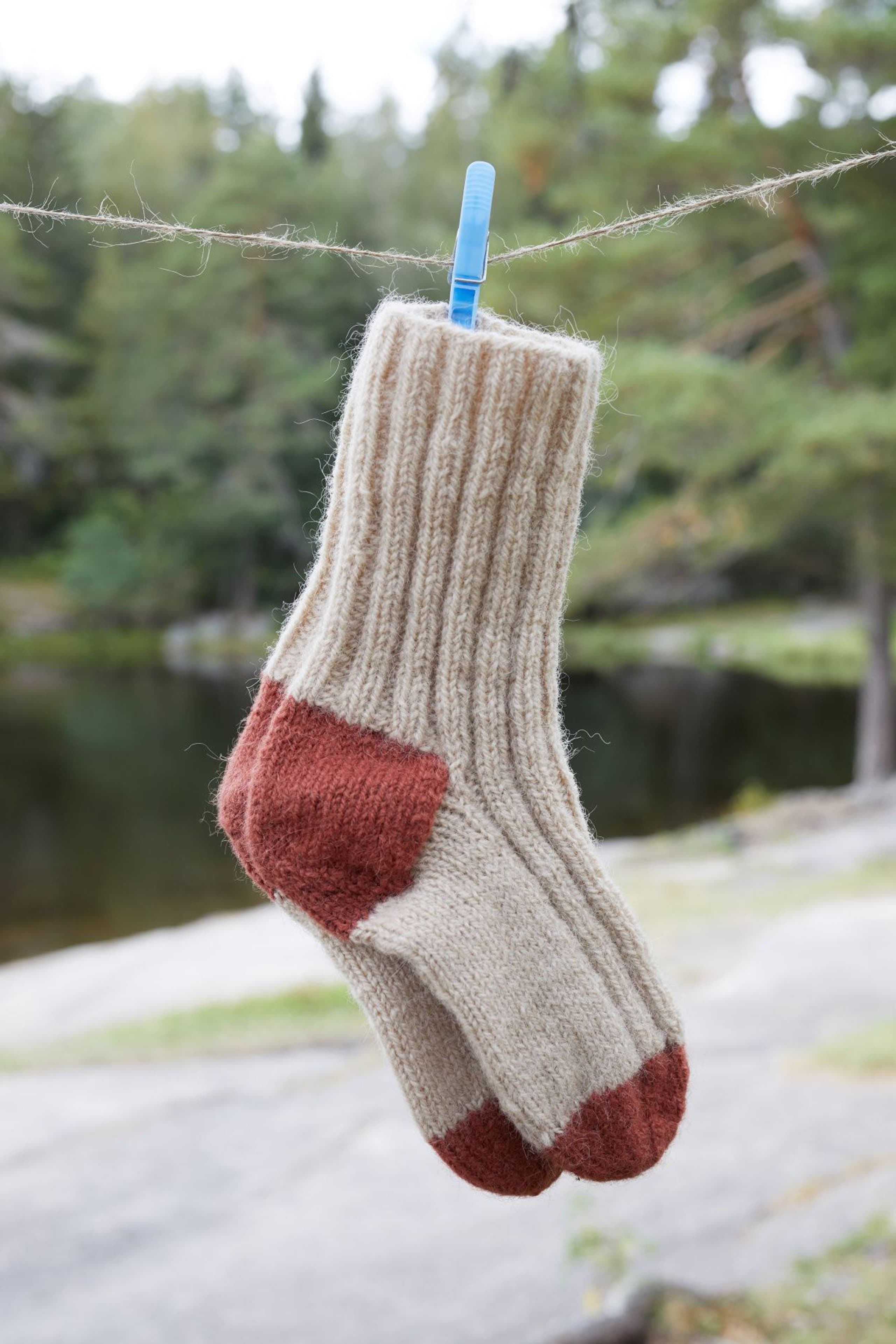 Vandre er et 2-tråds kardegarn av 100 % norsk ull. Vandre er vårt egenproduserte sokkegarn. Her har vi ikke blandet inn nylon, men brukt ull fra spælsau som forsterkning. Spælsauens lange dekkhår er ekstra robuste og gjør garnet mer slitesterkt. I tillegg har Vandre mye tvinn, som også bidrar til å gjøre garnet slitesterkt og godt egnet til sokker. Garnet kan føles litt trått når man strikker og resultatet litt stivt. Sokker strikket i Vandre bør vaskes i maskin før bruk. Det bidrar til at fibrene "setter seg", noe som øker slitestyrken og gjør sokkene mer smussavstøtende. I tillegg blir sokkene mykere og mer fluffy. Vask sokkene på 40 °C på et program som varer ca. 1 time. Bruk full sentrifugering. Form sokkene mens de fremdeles er våte og la dem tørke flatt. Vær oppmerksom på at det over tid vil oppstå behov for å bøte de fleste sokker, spesielt sokker i 100 % naturfiber som Vandre. Vi anbefaler å bøte med en gang du ser antydninger til hulldannelse for et godt og langvarig resultat.