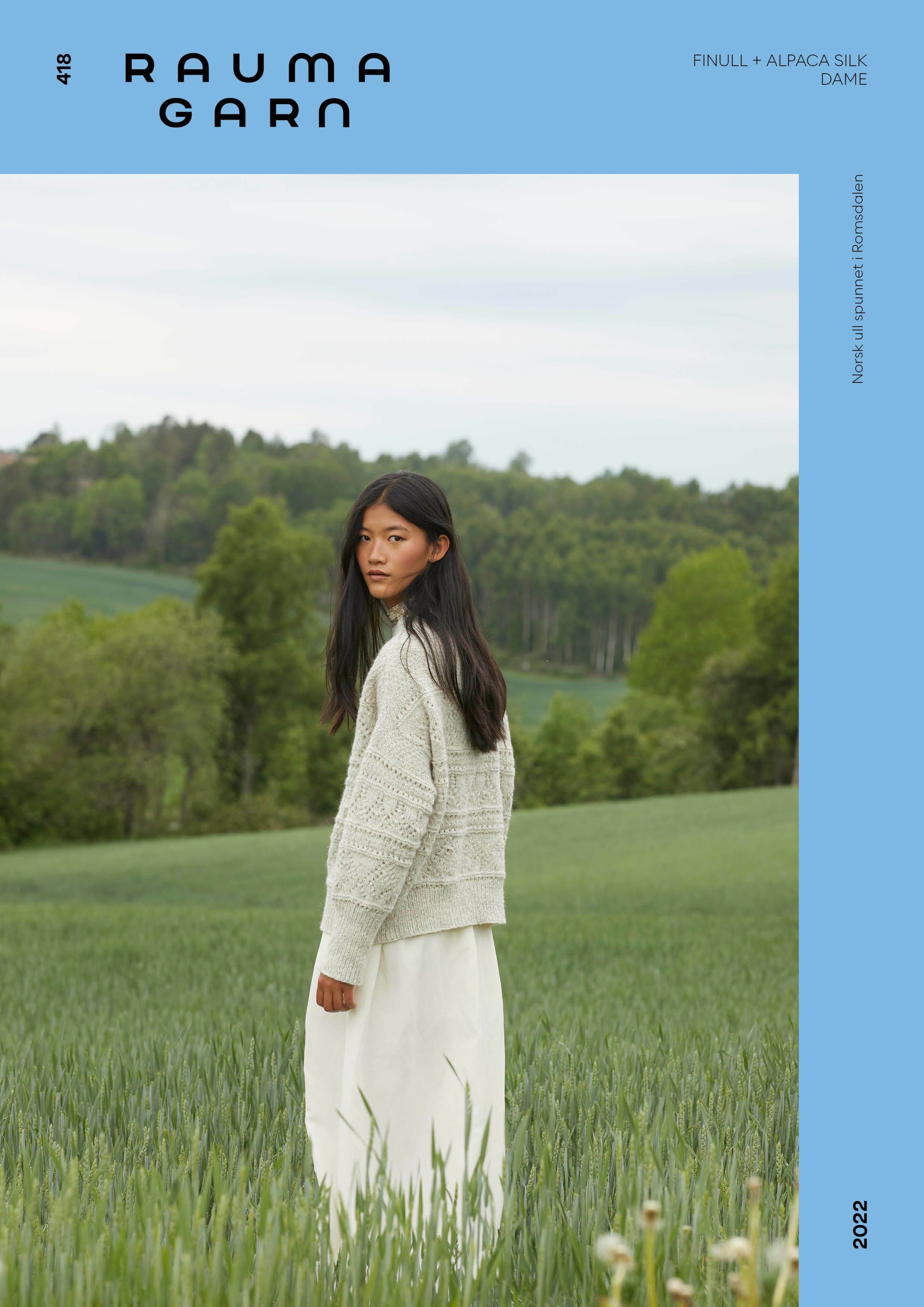 I dette heftet presenterer vi en vakker kolleksjon av deilige høstfavoritter til dame. Plaggene er strikket i én tråd Finull sammen med én tråd Alpaca Silk. Finull spinner vi av 100% norsk ull på fabrikken vår i Romsdalen. Garnet er lett og luftig og gir plagg som holder fasongen år etter år. Alpaca Silk er et mykt, tynt og pusete garn av alpakka og silke. Kombinasjonen av de to kvalitetene gir en helt unik følelse av både mykhet og struktur som vi håper du får lyst til å prøve! Kolleksjonen inneholder basisplagg med spennende strukturer og moderne passform. Her finner du Dilon strukturgenser, Mynte genser med border i hullmønster, Sesam raglangenser med høy hals, Mejram vest med v-hals og knapper, Vinge jakke med dobbelstrikket halskant, samt Felice ribbelue og skjerf i striper.
