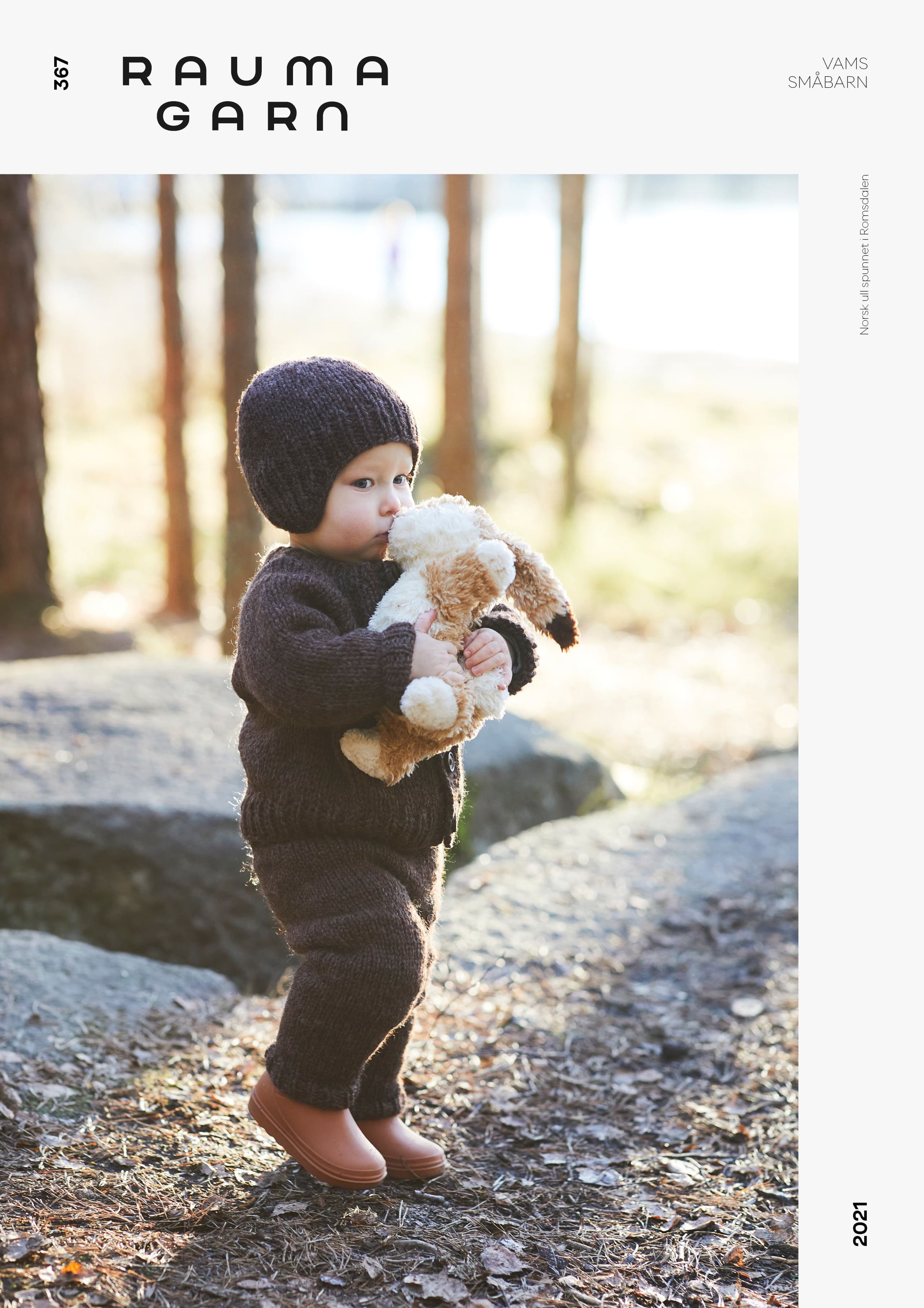 I dette heftet finner du en praktisk basiskolleksjon til småbarn i størrelser fra 3 måneder til 4 år. Kolleksjonen er strikket i Vams, et garn av 100 % norsk ull laget på vår fabrikk i Romsdalen. Her finner du jakke, bukse, dress, lue og pledd. Fargene er nydelige melerte farger som gir et behagelig spill i den strikkede strukturen. Å strikke i Vams går fort! Plaggene strikkes på pinne nr 6.
