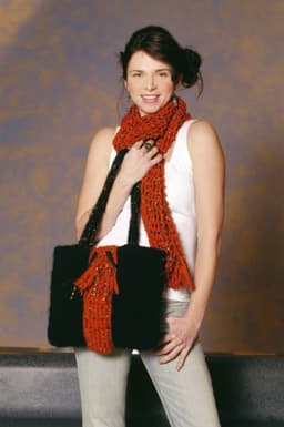 Genser med hull-og flettemønster og skjerf