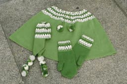 Halvlang cape, kort cape med eller uten splitt, lue og votter