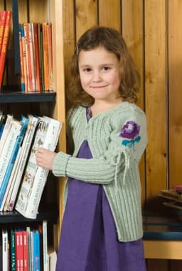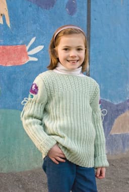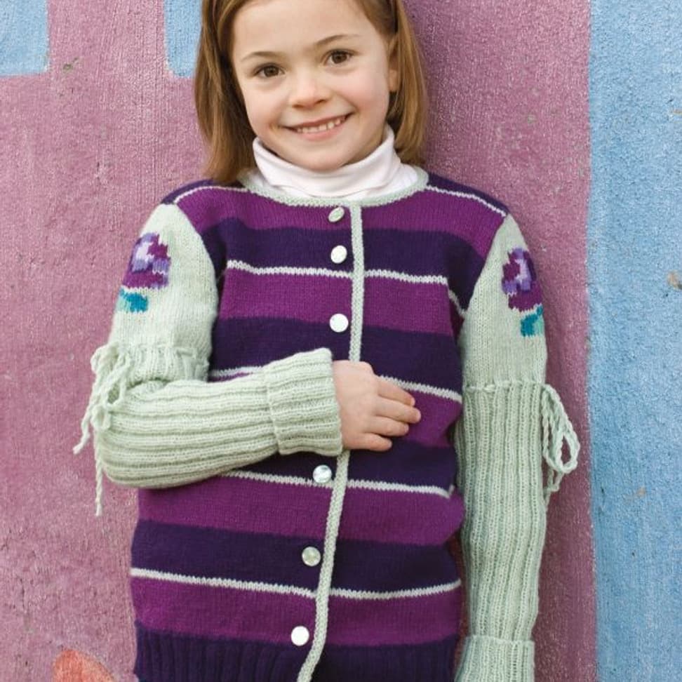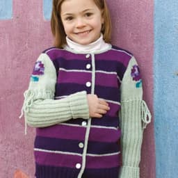 Genser og jakke med brodert blomst på ermer. Jakke med stripet bol.