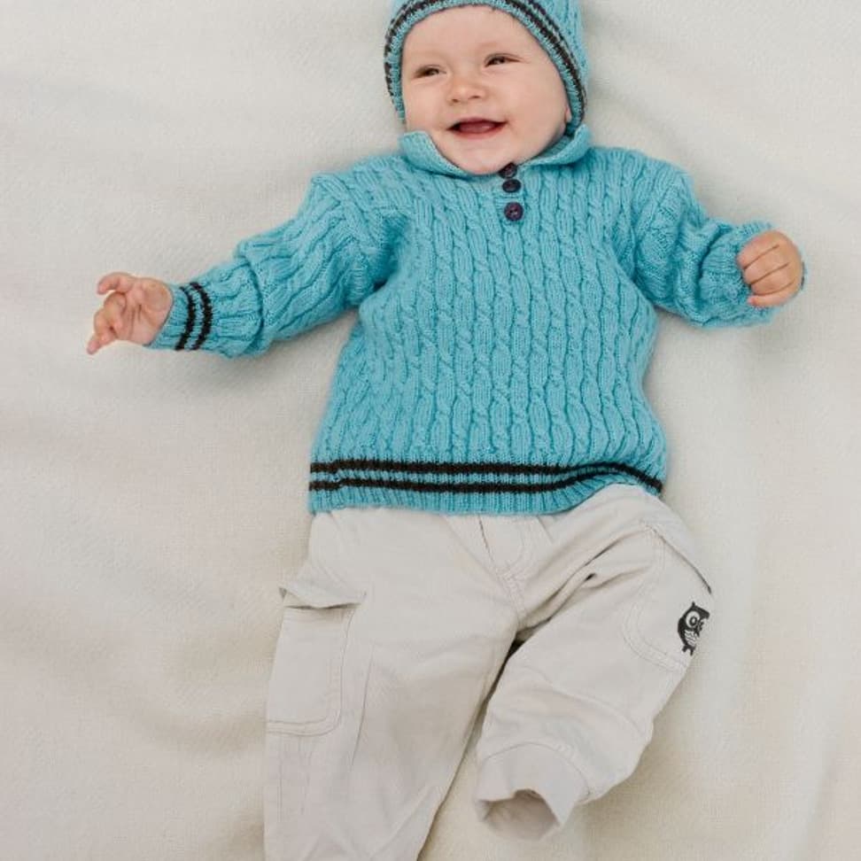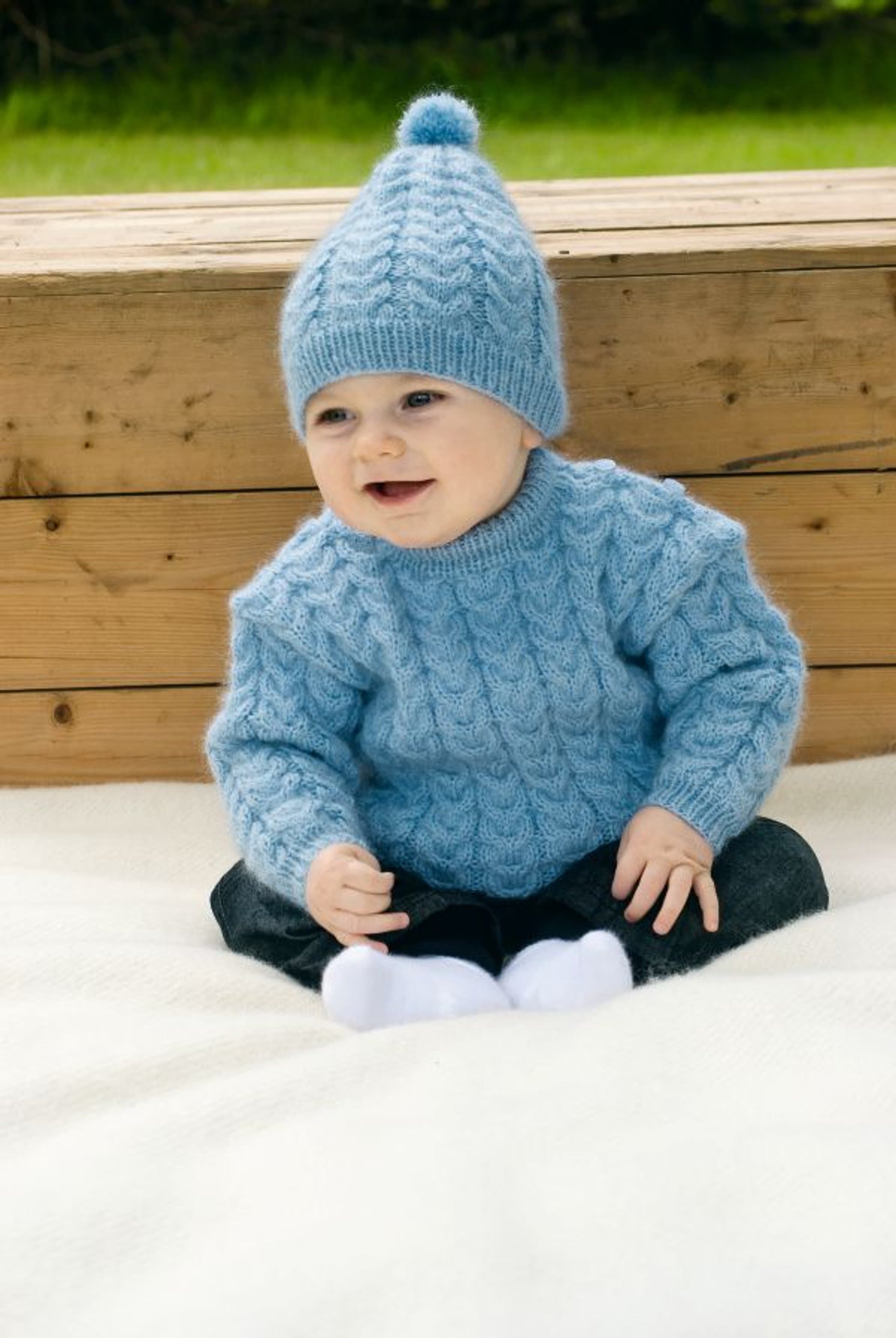 Genser og lue med flettemønster