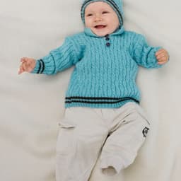 Genser og lue med flettemønster