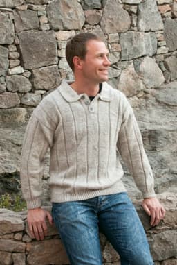 Genser med knappestolpe og krage, eller rund hals