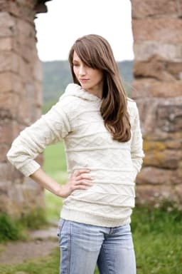 Skuldervarmer med høy hals eller "hette" og lange pulsvarmere