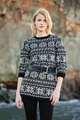 Tunika i ribbestrikk med fletteraglan