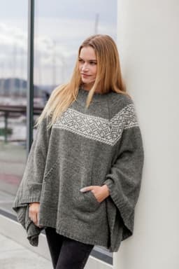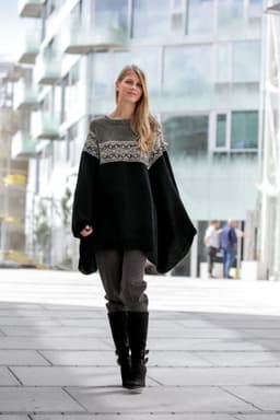 Poncho, skjerf og lue