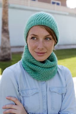 Hals og lue i hullmønster