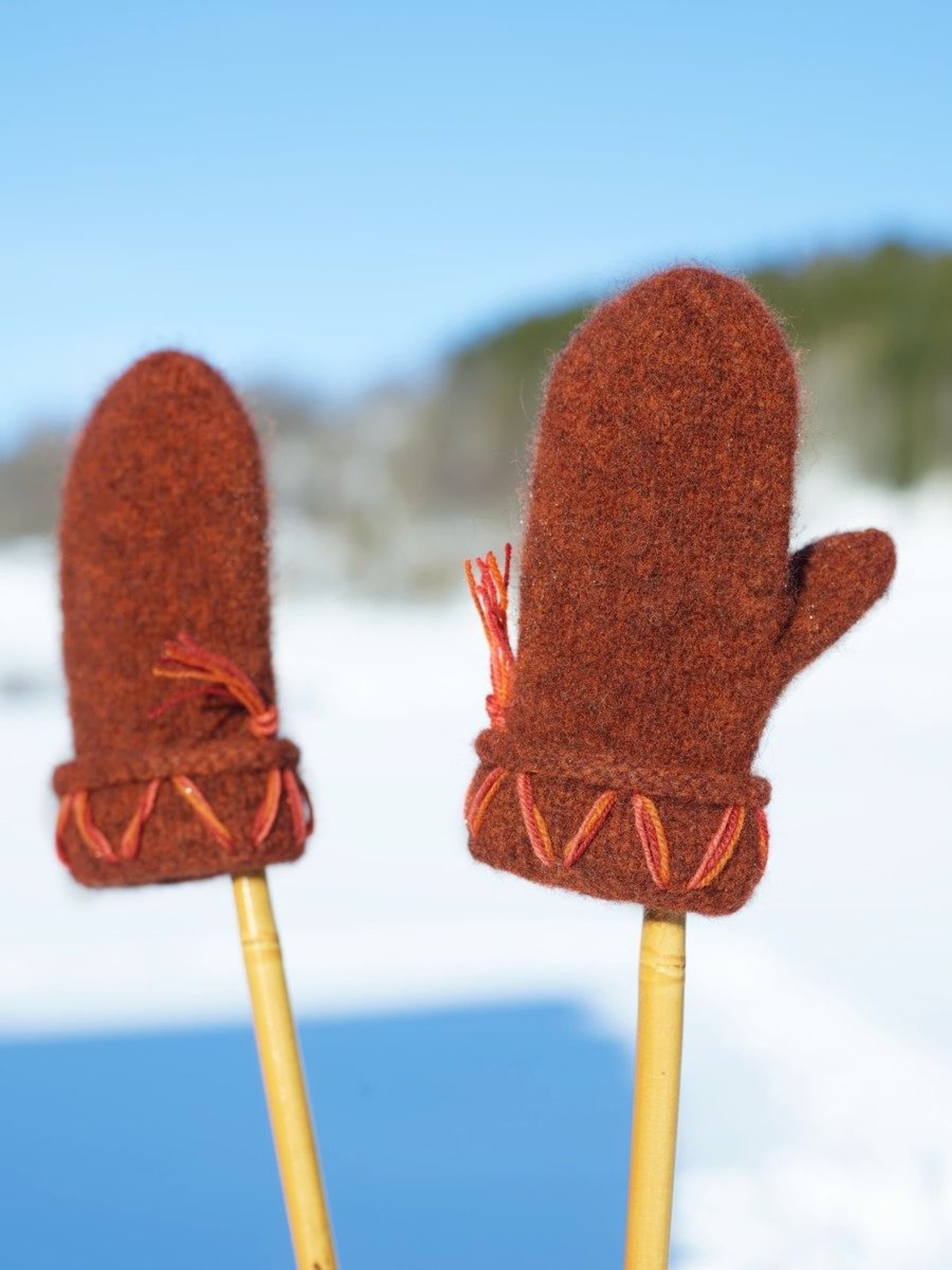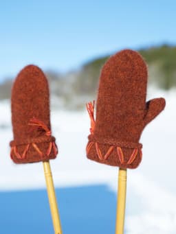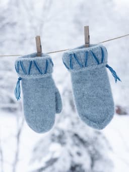 Til pynt på vottene har vi brukt 3 tr-strikkegarn, her kan dere bestille de fargene dere selv ønsker, eller bruke restegarn.