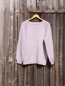 Genseren strikkes ovenfra og ned, med glattstrikk på bolen og mønster på ermene.