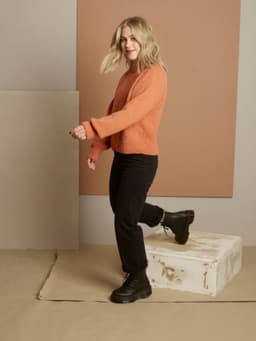 Genseren strikkes ovenfra og ned. Prøv den underveis og juster lengden etter eget ønske. Originalfargen var limited edition og er utgått.
