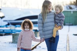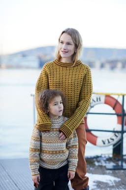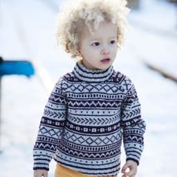 Klassisk mønstret genser til barn. Genseren på bildet er strikket i den utgåtte kvaliteten Petter. Genseren kan imidlertid også strikkes i 3-tråds Strikkegarn eller Mitu. For å velge farge i 3-tråds Strikkegarn, velg "Alt 1 eller Alt 2: 3-tråds Strikkegarn". For å velge farge i Mitu velg "Alt 3: Mitu".