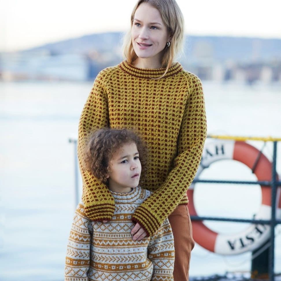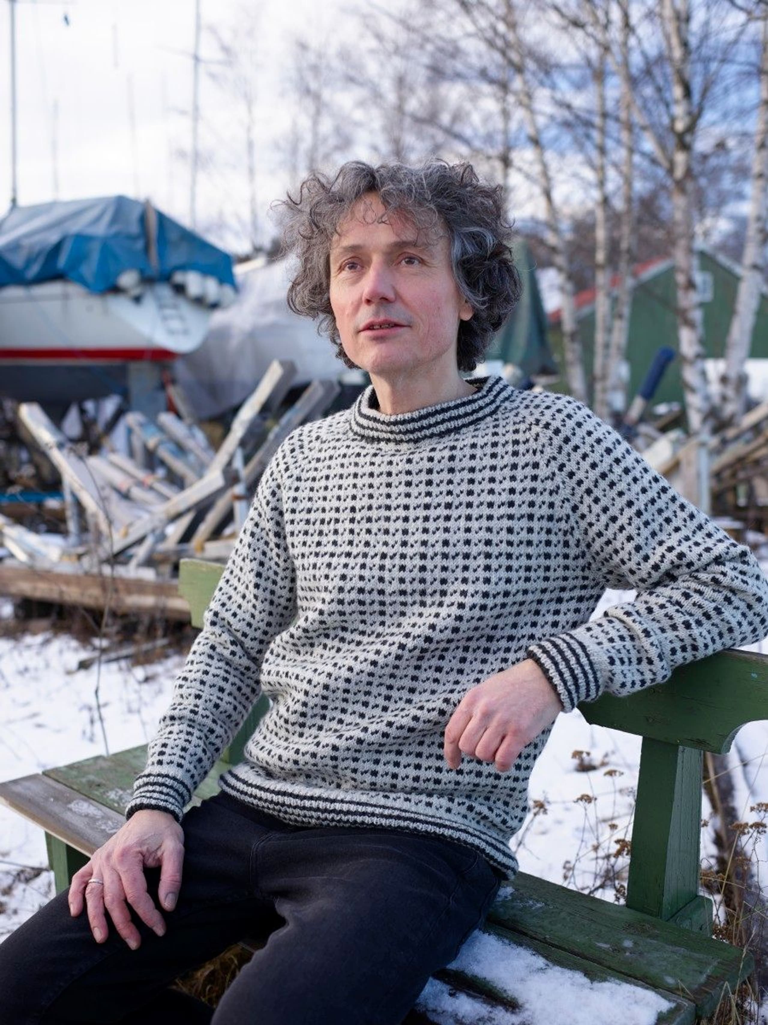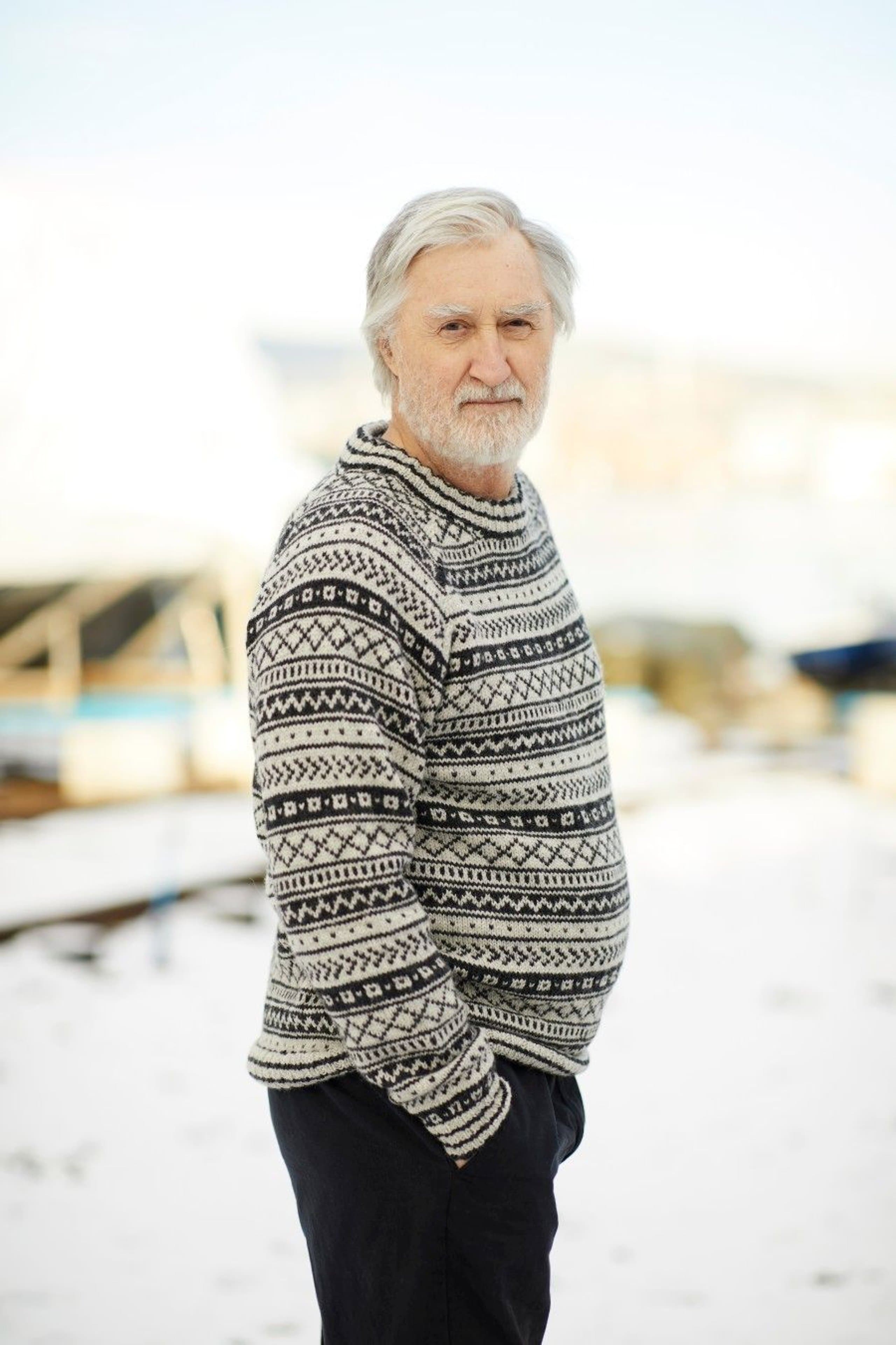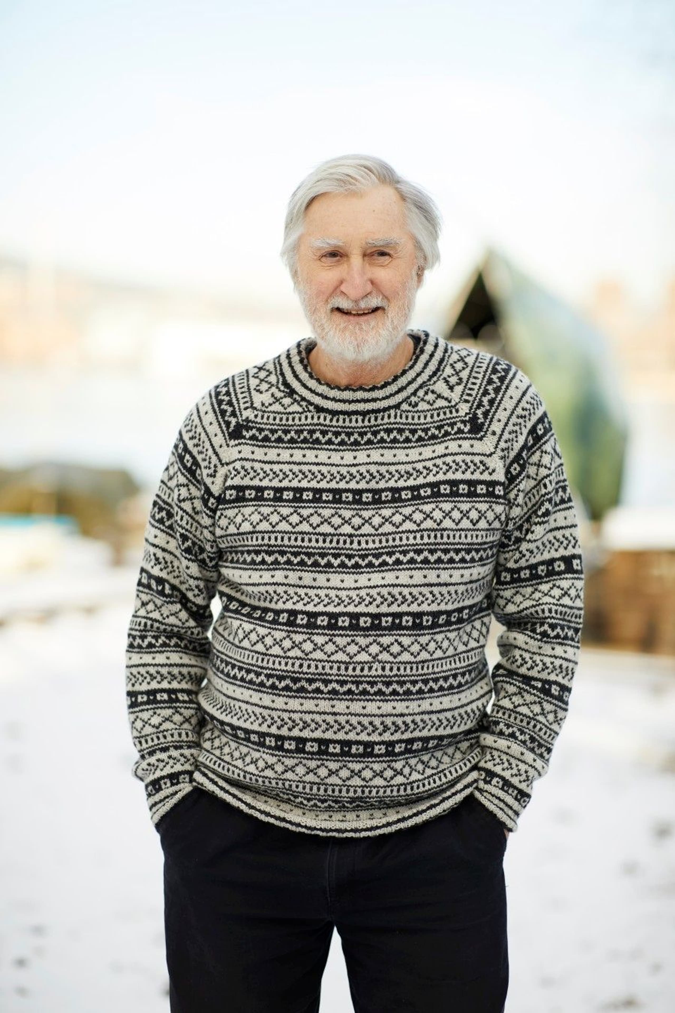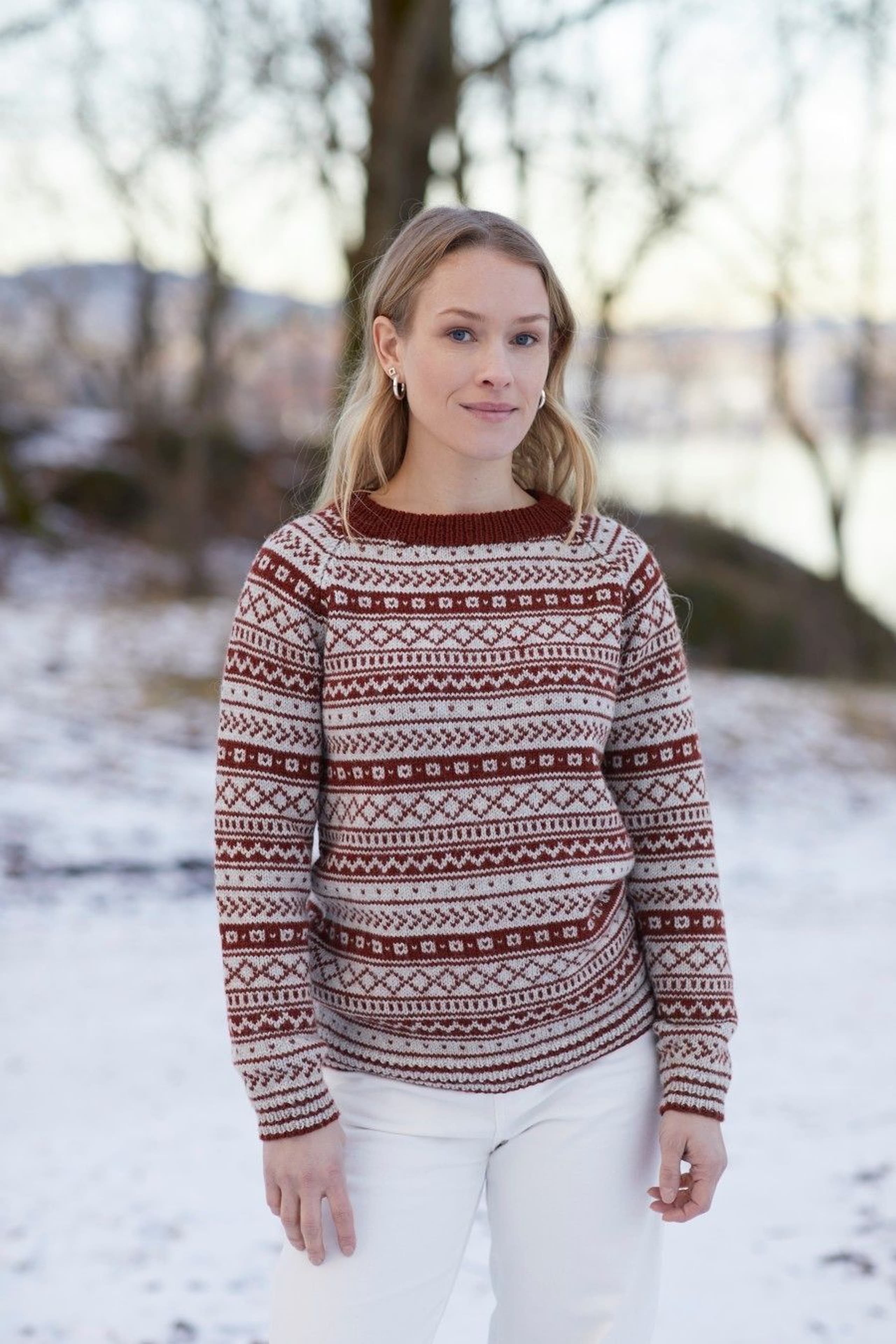 Villmarksgenser til herre. Genseren på bildet er strikket i den utgåtte kvaliteten Petter. Genseren kan imidlertid også strikkes i 3-tråds Strikkegarn eller Mitu. For å velge en farge i 3-tråds Strikkegarn, velg "Alt 3: 3-tråds Strikkegarn" eller "Alt 4: 3-tråds Strikkegarn".