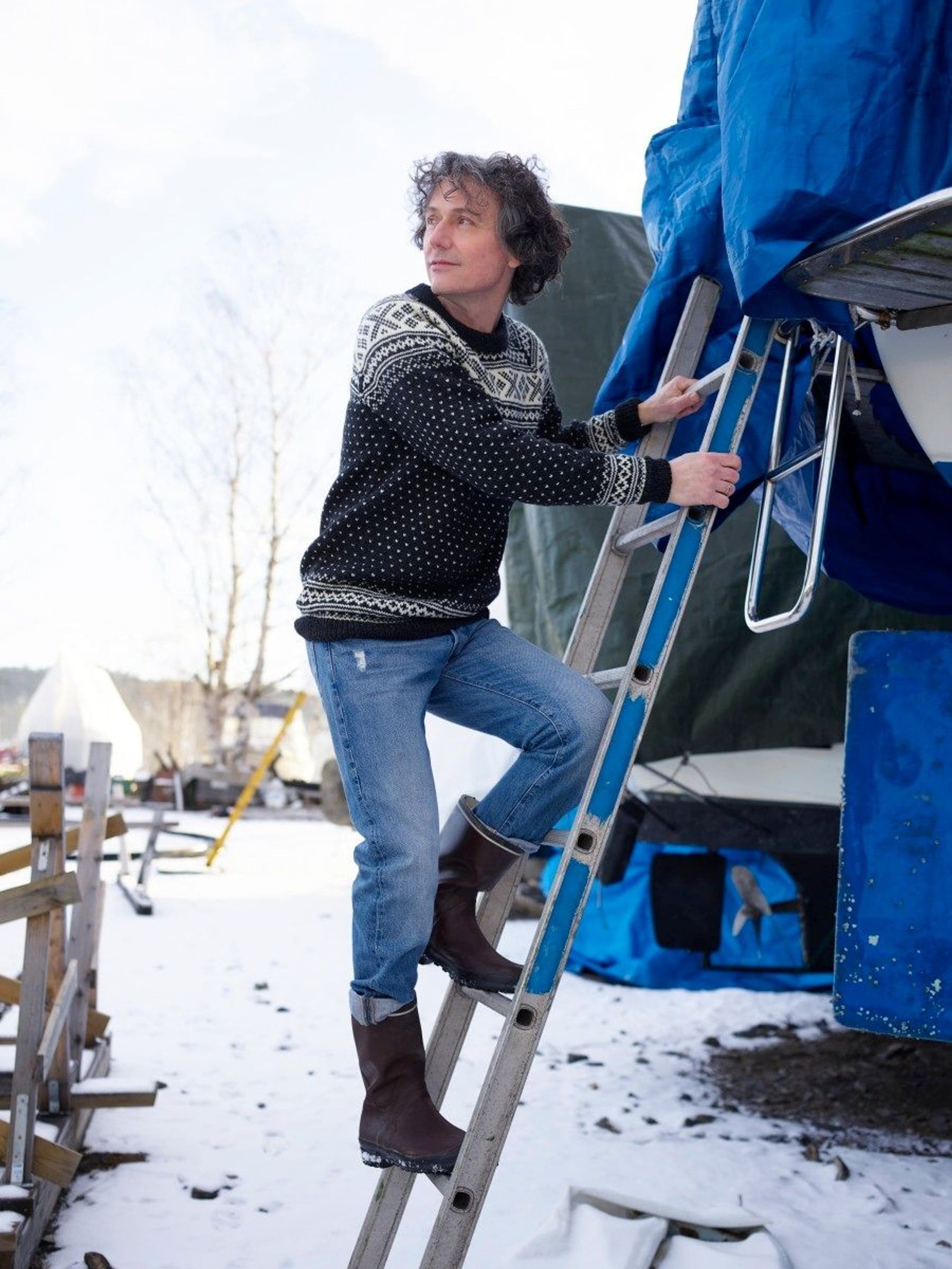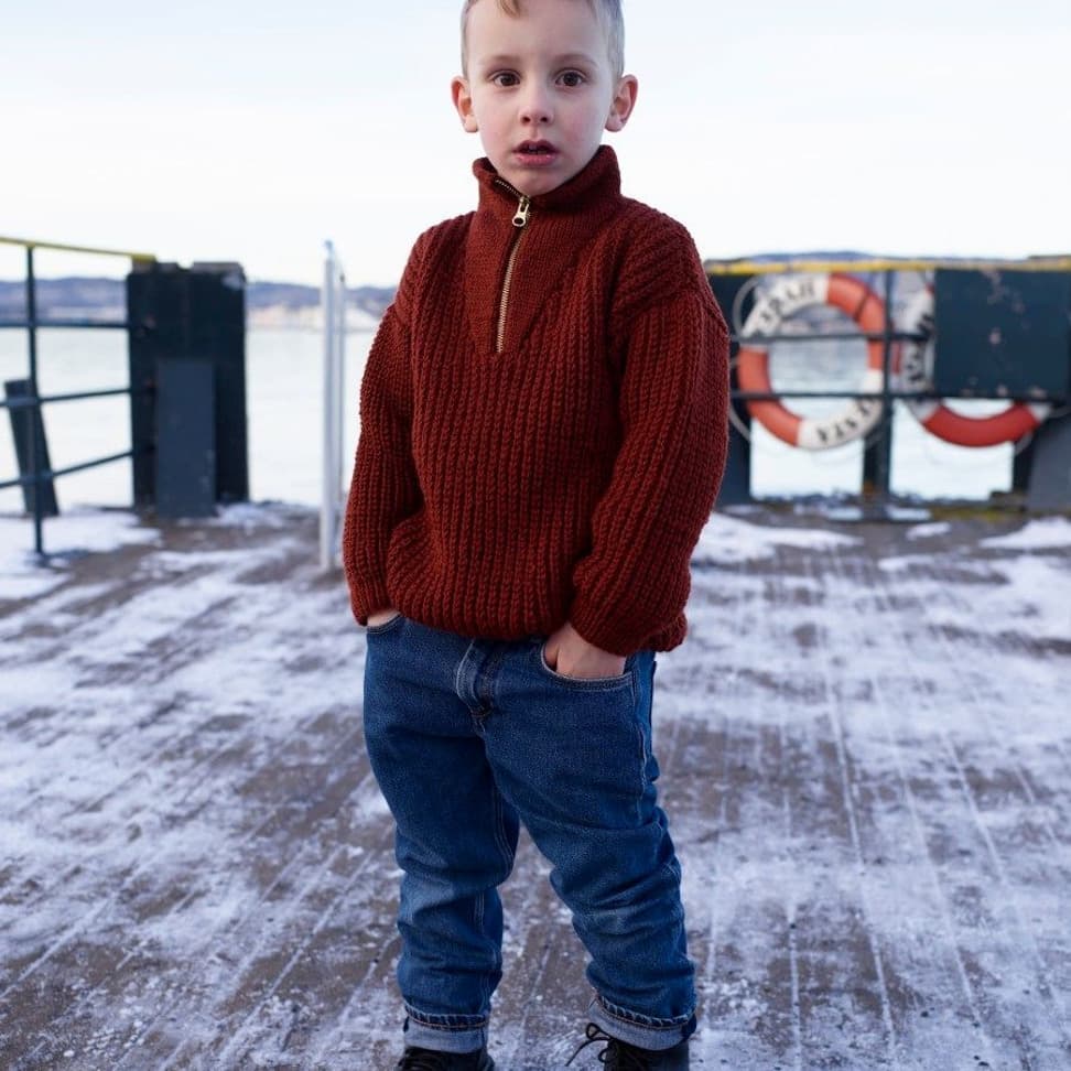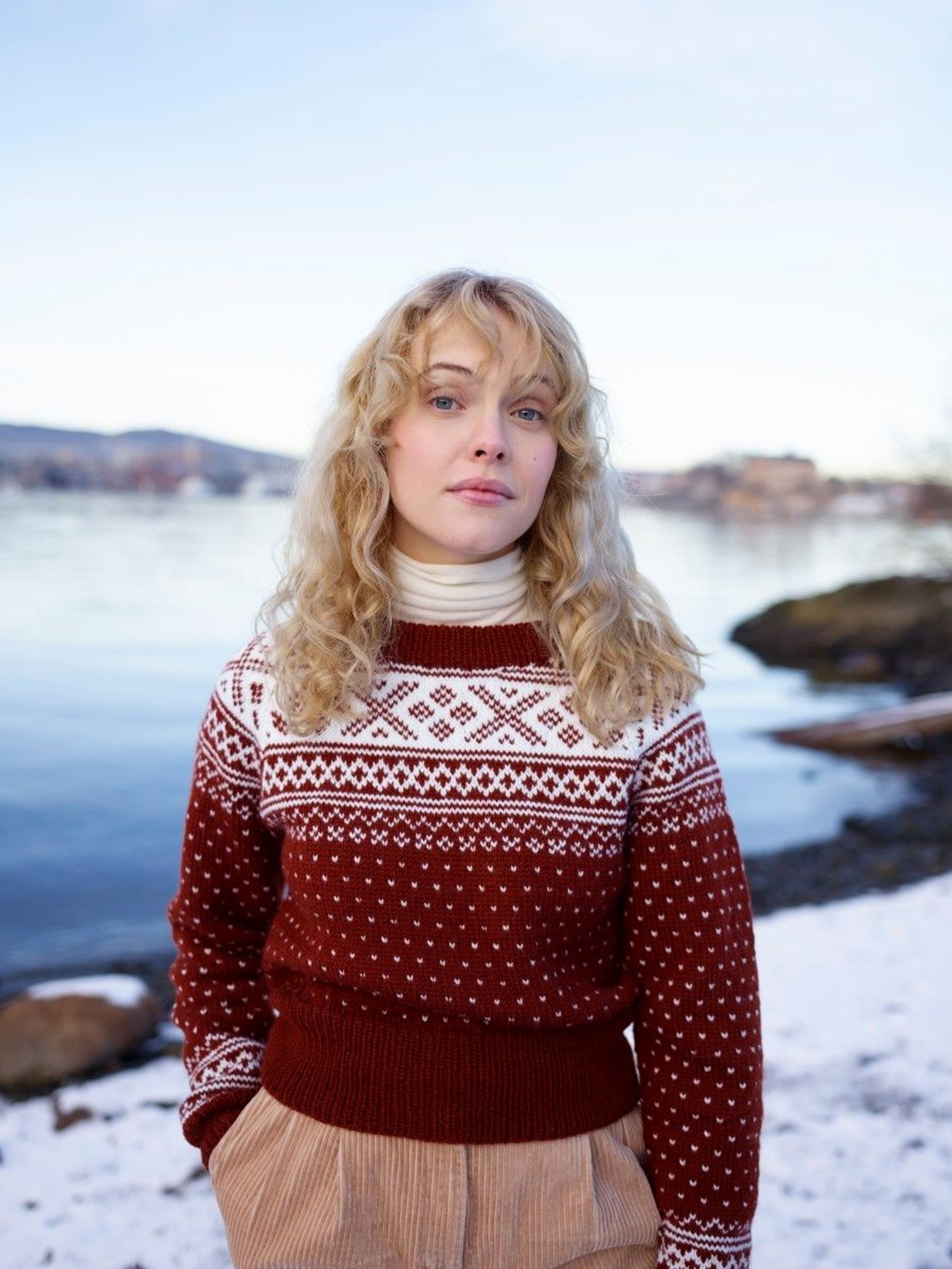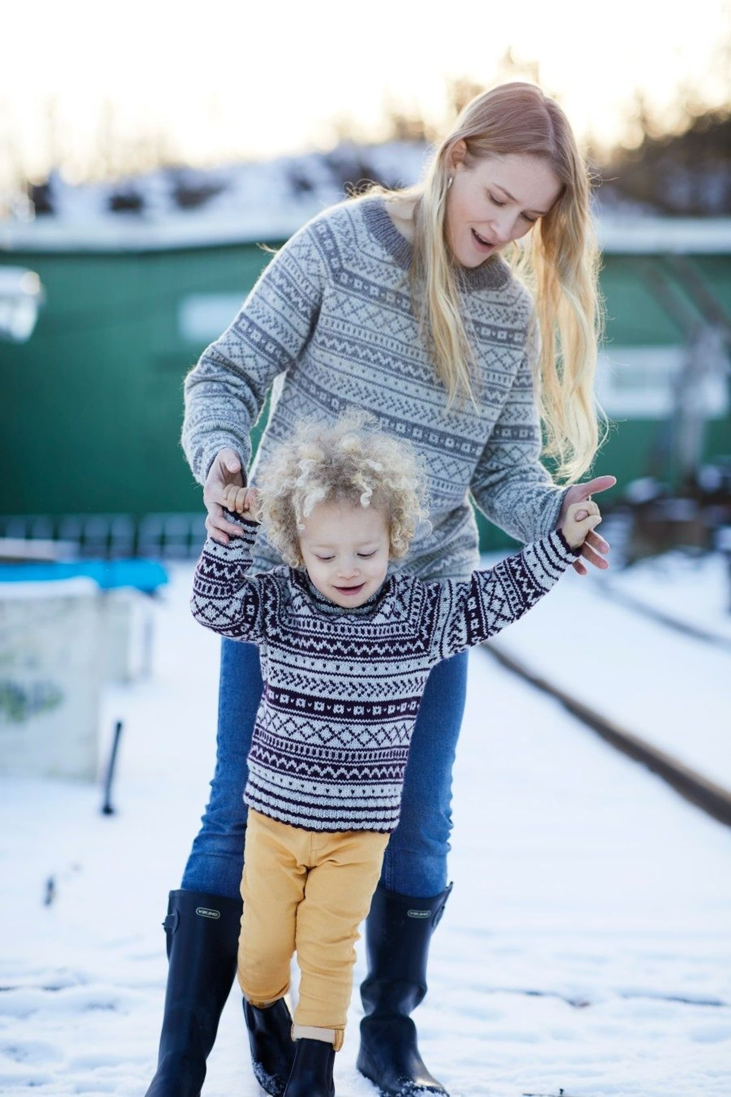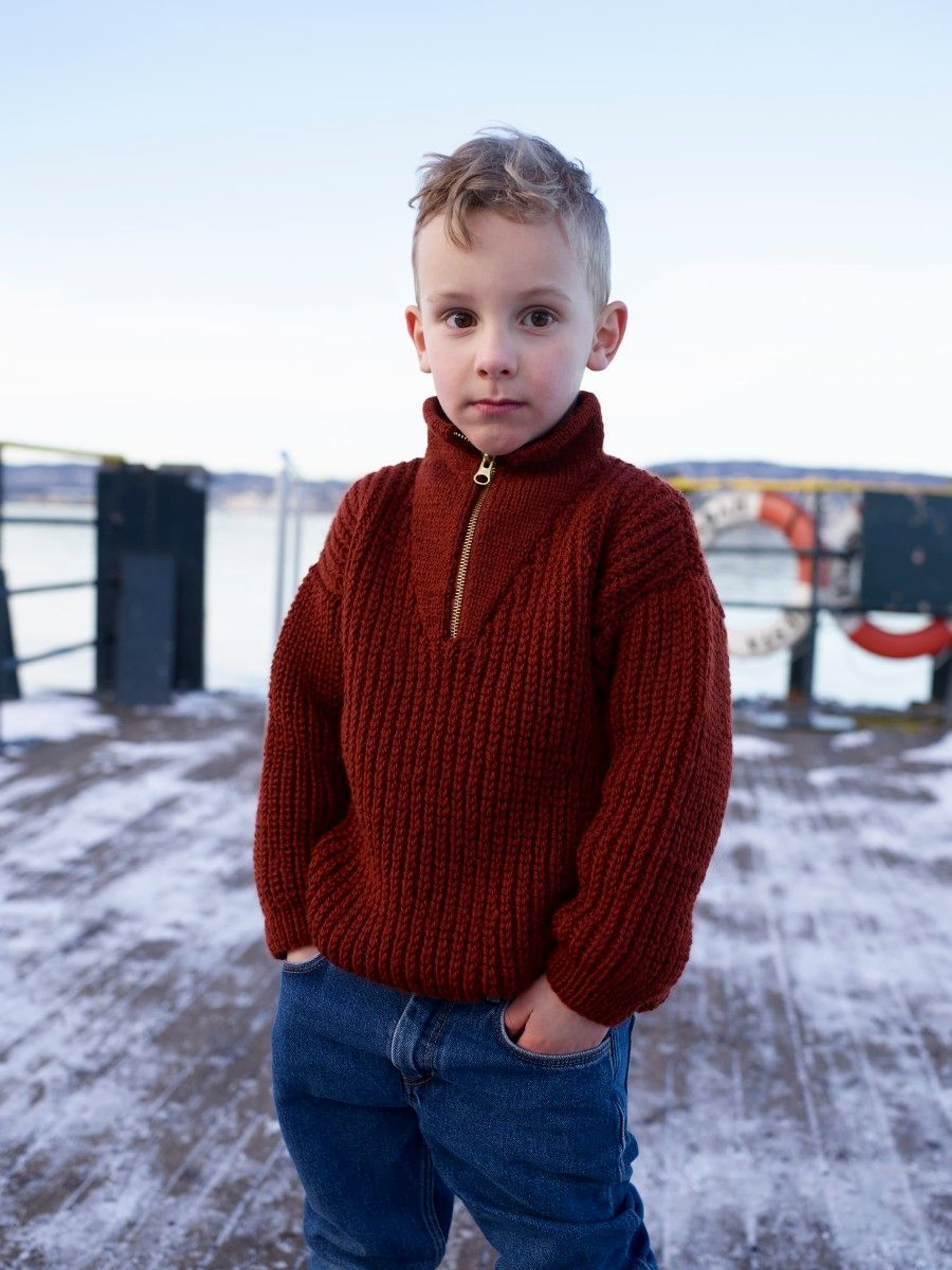 Villmarksgenser til herre. Genseren på bildet er strikket i den utgåtte kvaliteten Petter. Genseren kan imidlertid også strikkes i 3-tråds Strikkegarn eller Mitu. For å velge en farge i 3-tråds Strikkegarn, velg "Alt 3: 3-tråds Strikkegarn" eller "Alt 4: 3-tråds Strikkegarn".