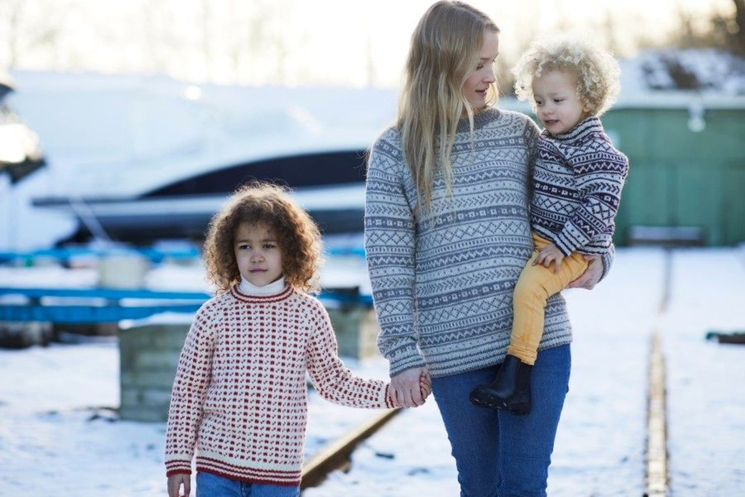 Islender til barn. Genseren på bildet er strikket i den utgåtte kvaliteten Petter. Genseren kan imidlertid også strikkes i 3-tråds Strikkegarn eller Mitu. For å velge farge i 3-tråds Strikkegarn, velg "Alt 1 eller Alt 2: 3-tråds Strikkegarn". For å velge farge i Mitu, velg "Alt 3: Mitu".