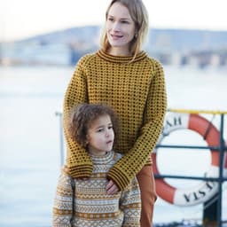 Islender til dame. Dette er en kort modell. Genseren på bildet er strikket i den utgåtte kvaliteten Petter. Genseren kan imidlertid også strikkes i 3-tråds Strikkegarn eller Mitu. For å velge farge i 3-tråds Strikkegarn, velg "Alt 1 eller Alt 2: 3-tråds Strikkegarn". For å velge farge i Mitu, velg "Alt 3: Mitu".