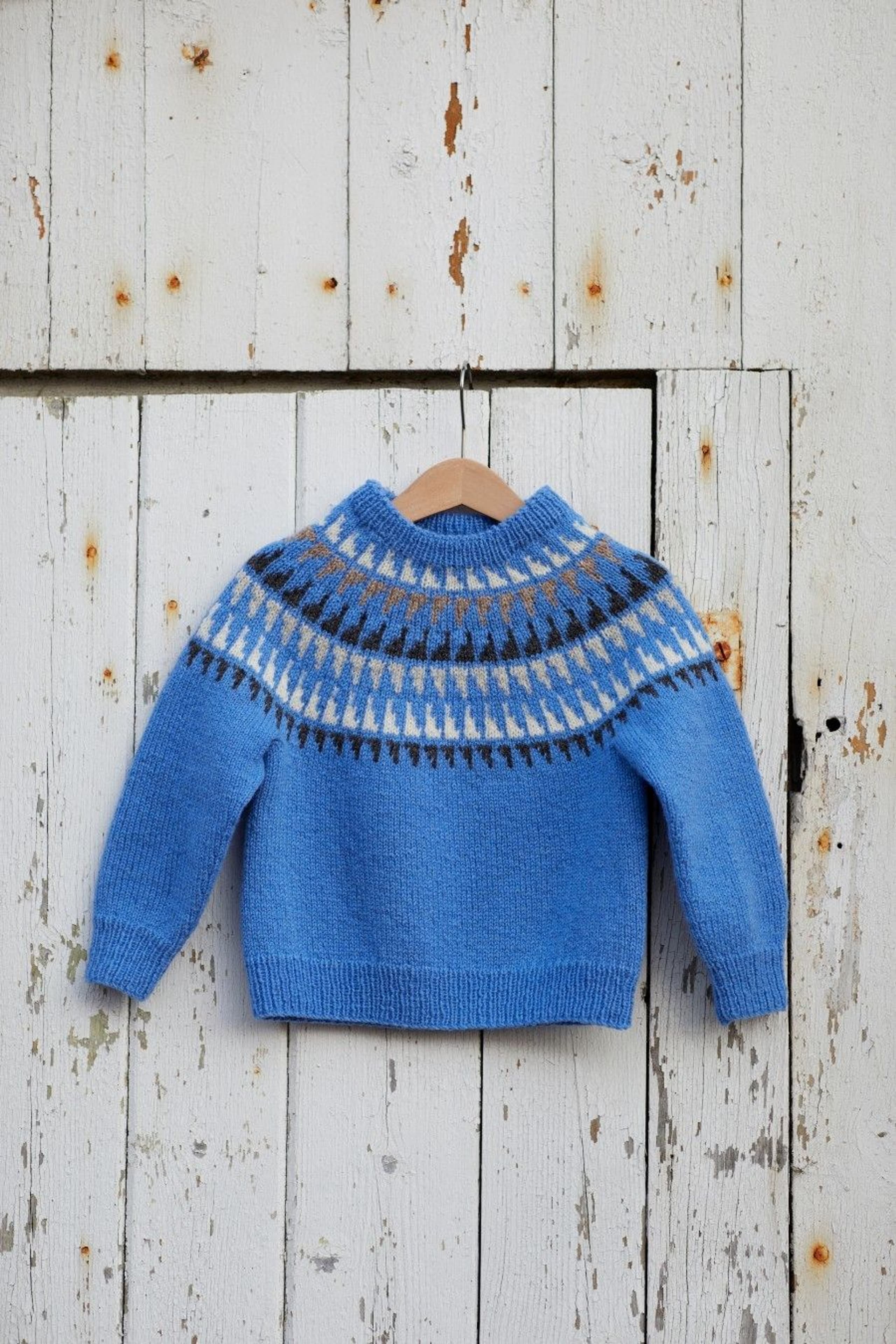 Rundfelt genser strikket i Finull, 100% norsk ull.