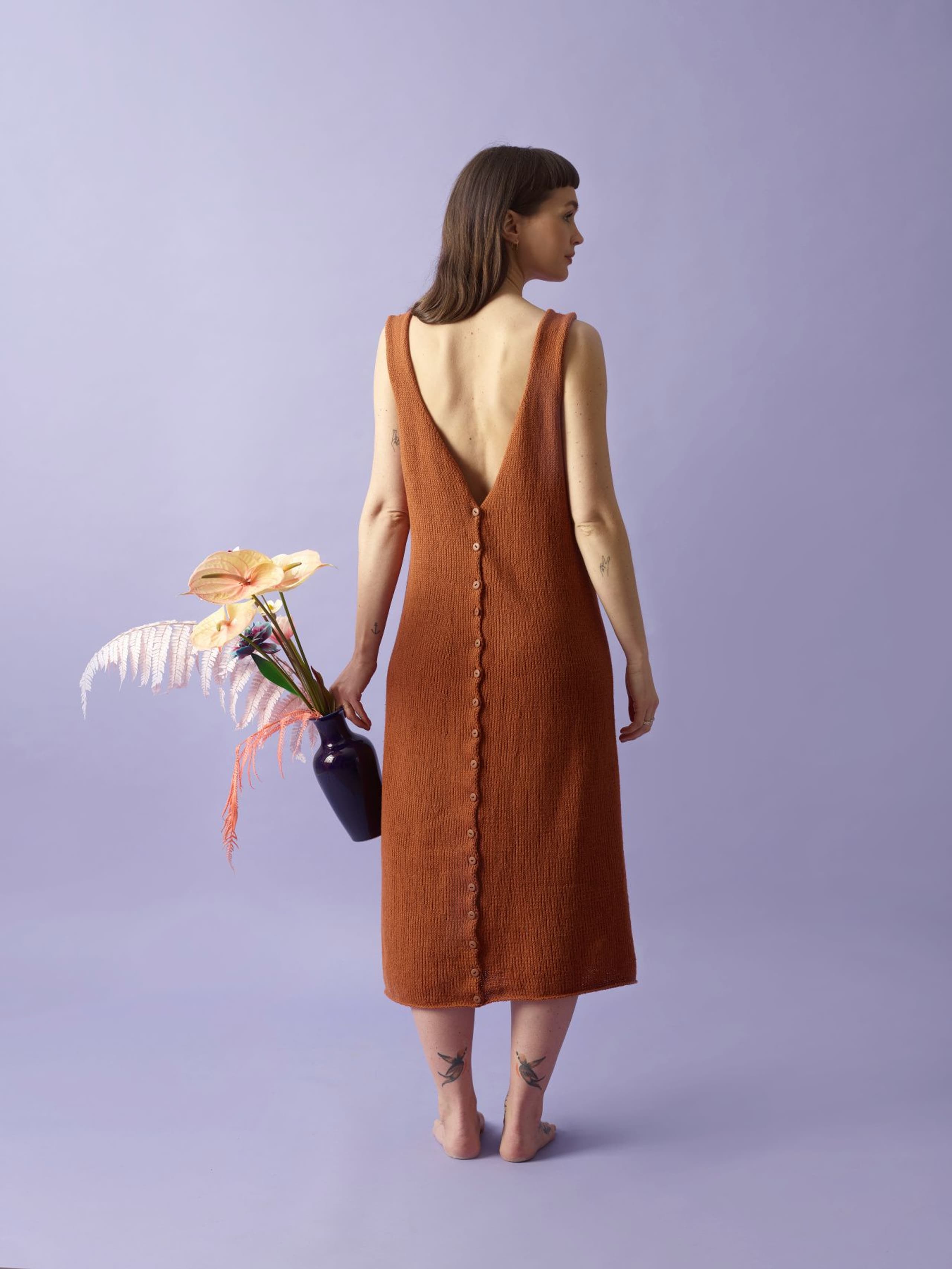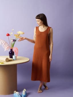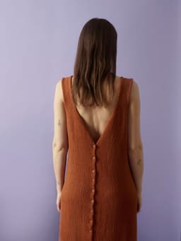Monroe kjole er en lang sommerkjole med dyp V-utringning og knapper i ryggen, som rekker til rett under knærne. Den er løs rundt beina og svinger lett inn mot midjen. Kjolen strikkes nedenfra og opp, frem og tilbake, og knapphullene lages underveis i arbeidet. En skal ikke plukke opp til ny kant ved hals og ermehull. Det er derfor viktig med rette kantmasker for et pent resultat. Kantene bør dampes godt før bruk så de ikke krøller seg. Monroe kjole er laget for å ha knapper bak, men kan gjerne snus rundt med knapper fremme, om du har noe under. Bruker du den åpen kan den være et kult innslag i garderoben som lang vest over sommerklærne.