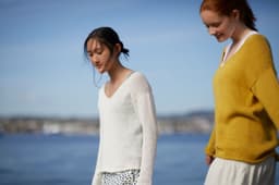 Gullris v-genser har en løs og luftig strikkefasthet. Den er strikket i glattstrikk med en god v-utringing. Den strikkes nedefra, rundt og rundt, og videre frem og tilbake etter delingen til ermehull. Maskene til ermene plukkes opp langs ermehullet og strikkes nedover.