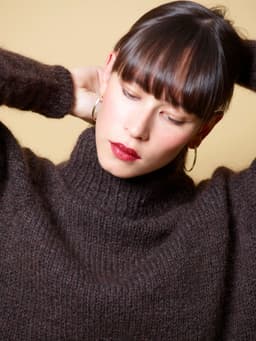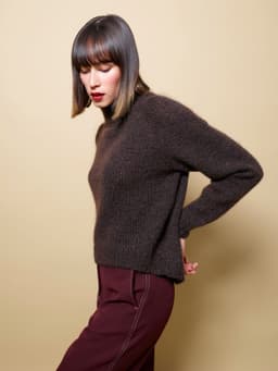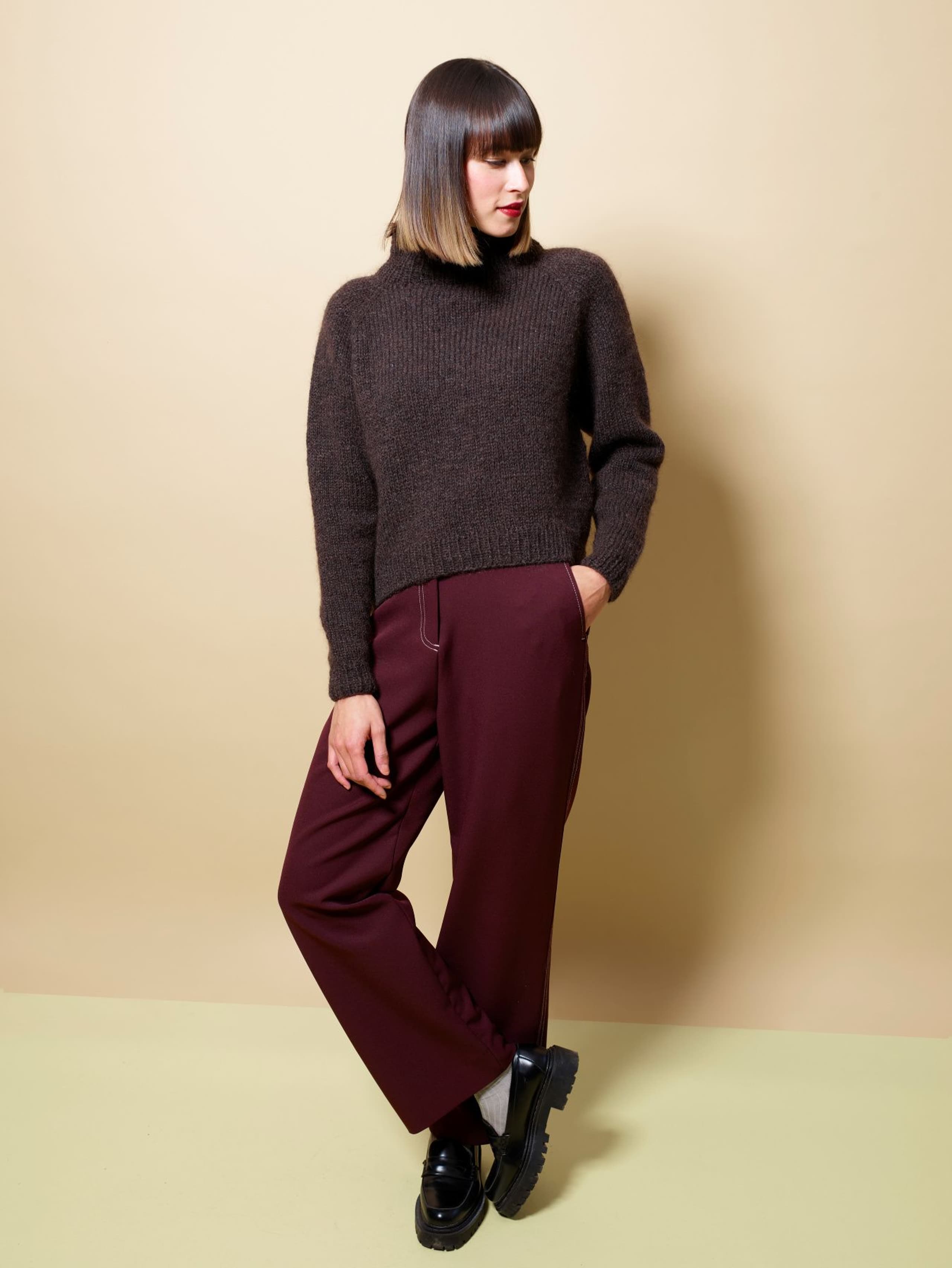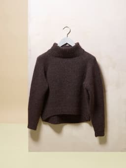 Siragenser er en tjukk genser, med høy hals og ekstra lengde bak. Den er strikket ovenfra og ned med dobbel tråd: én tråd 3-tråds Strikkegarn og én tråd Plum.