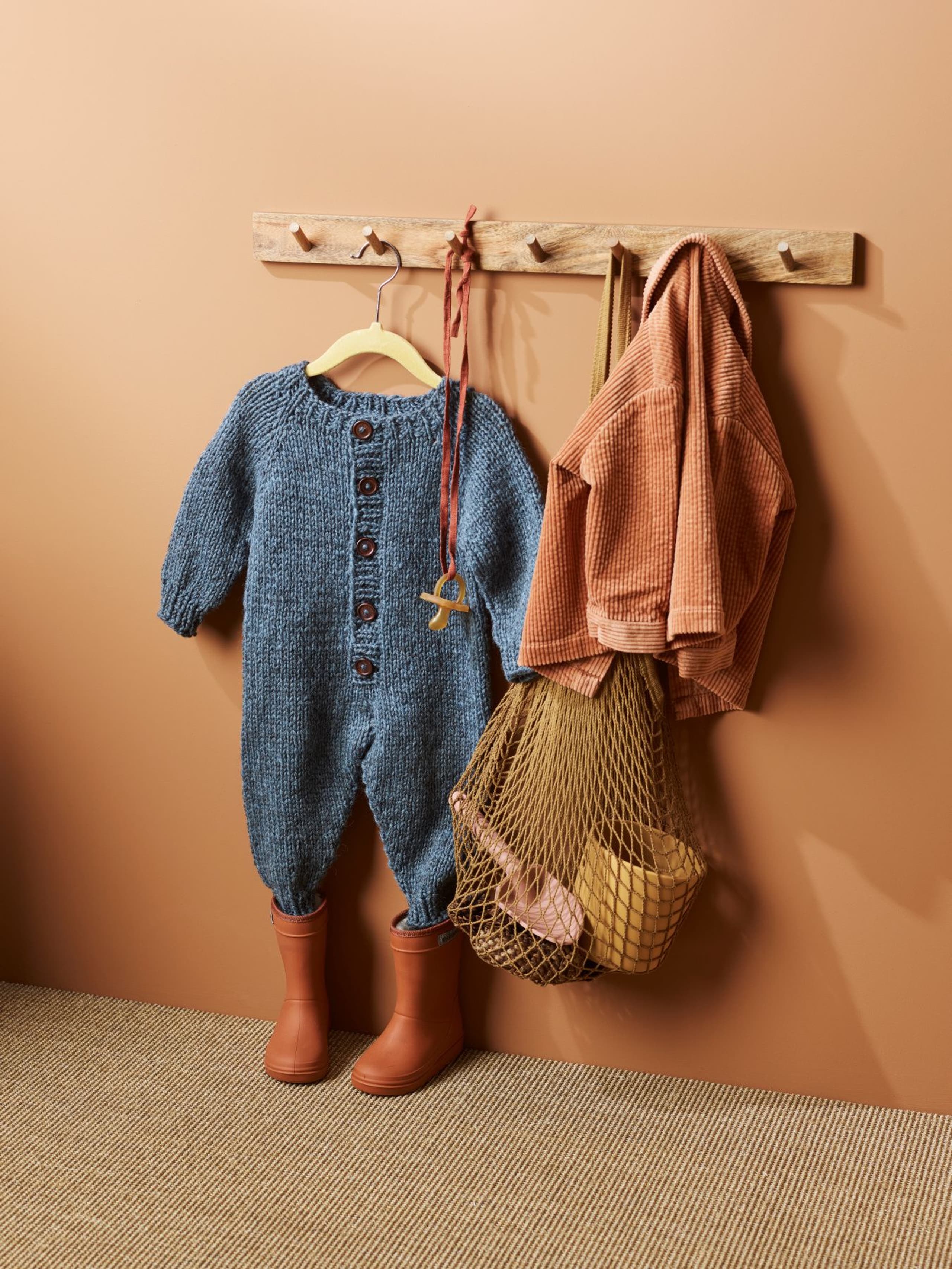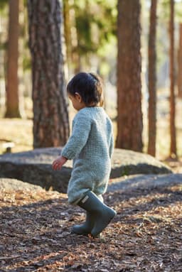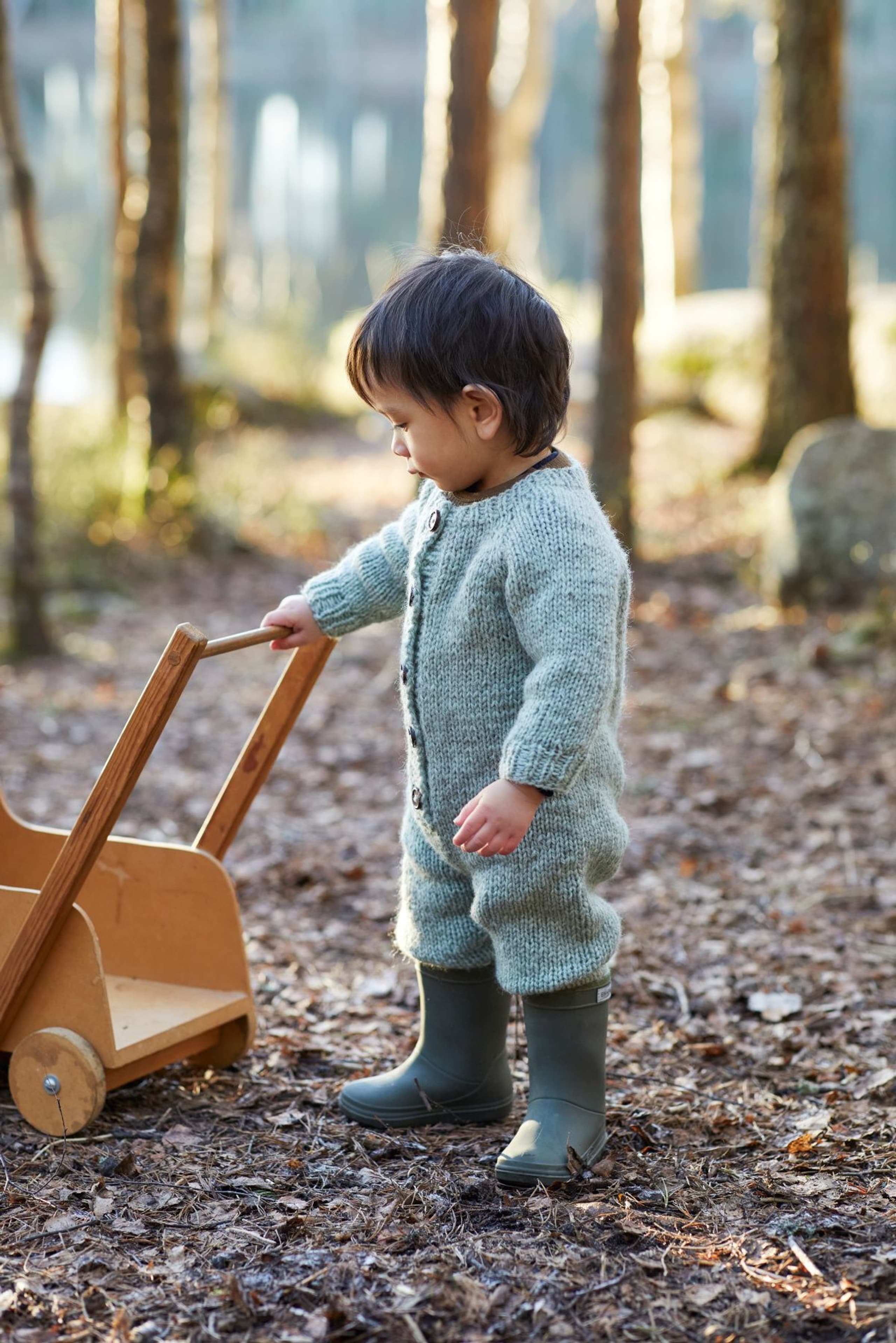 Bobodressen er en enkel glattstrikket dress som strikkes ovenfra og ned. Dressen har raglan, rund ribbestrikkede kanter. Husk å lese hele oppskriften før du starter å strikke!