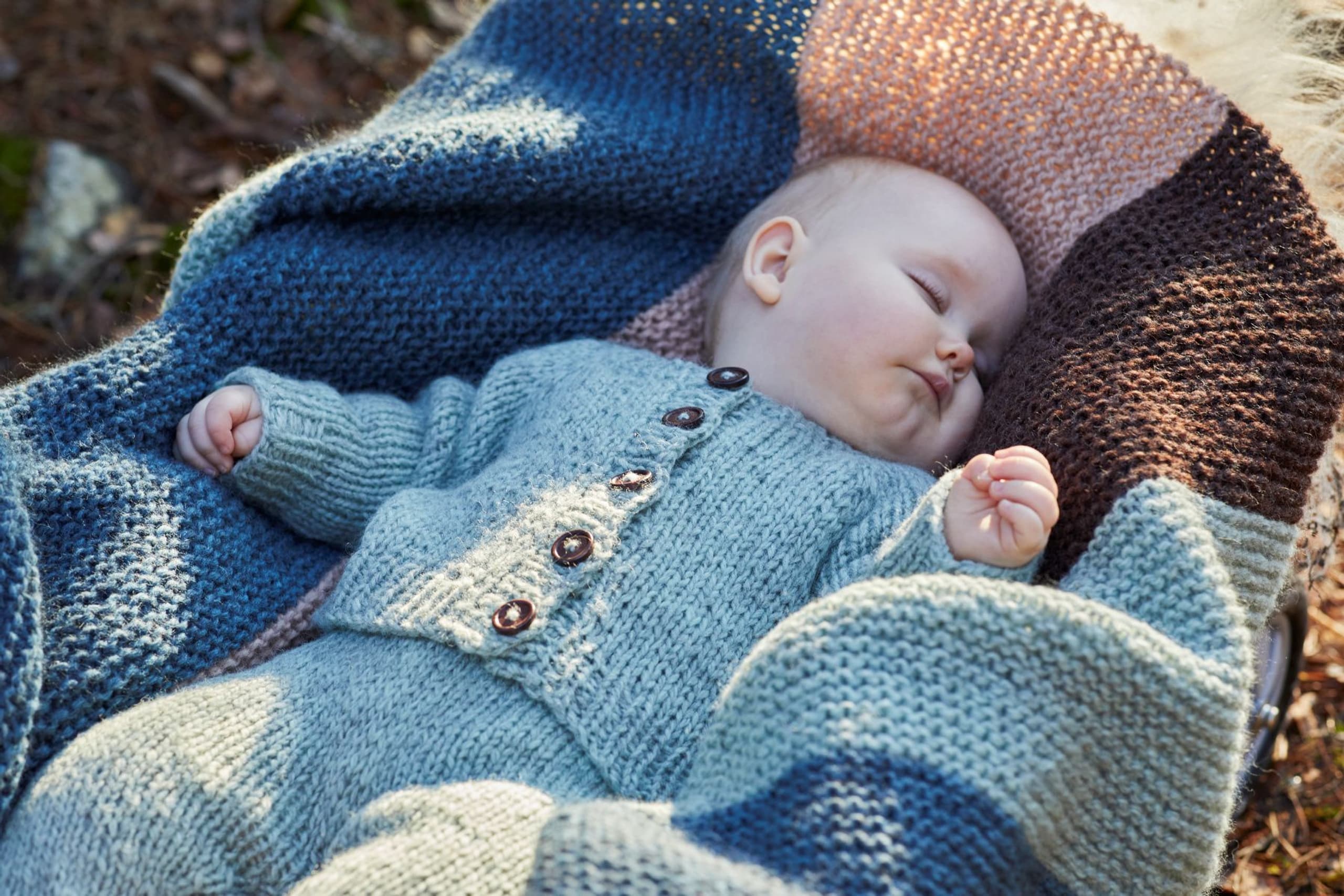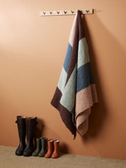 Kokopleddet er et stort rillestrikket pledd med brede striper i fire farger.