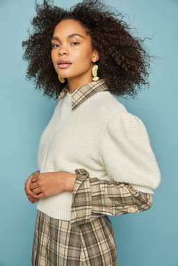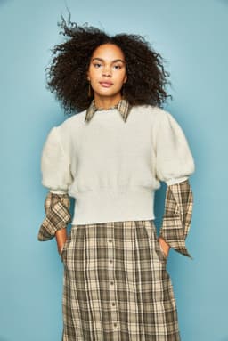 Yasmintopp er strikket rundt, nedenfra og opp. Den har høy vrangbord på bolen og korte isydde puffermer, med rundt hals. Bevegelsesvidden er ca 8 cm.