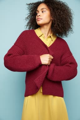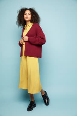 Billiejakken har en vid fasong og V-hals. Bevegelsesvidde er ca 24 cm. Hele jakken er strikket ovenfra og ned i patent, som gir jakken et voluminøst uttrykk. Patent kanvri seg hvis det strikkes rundt, derfor er alle delene strikket frem og tilbake, og sydd sammen til slutt.