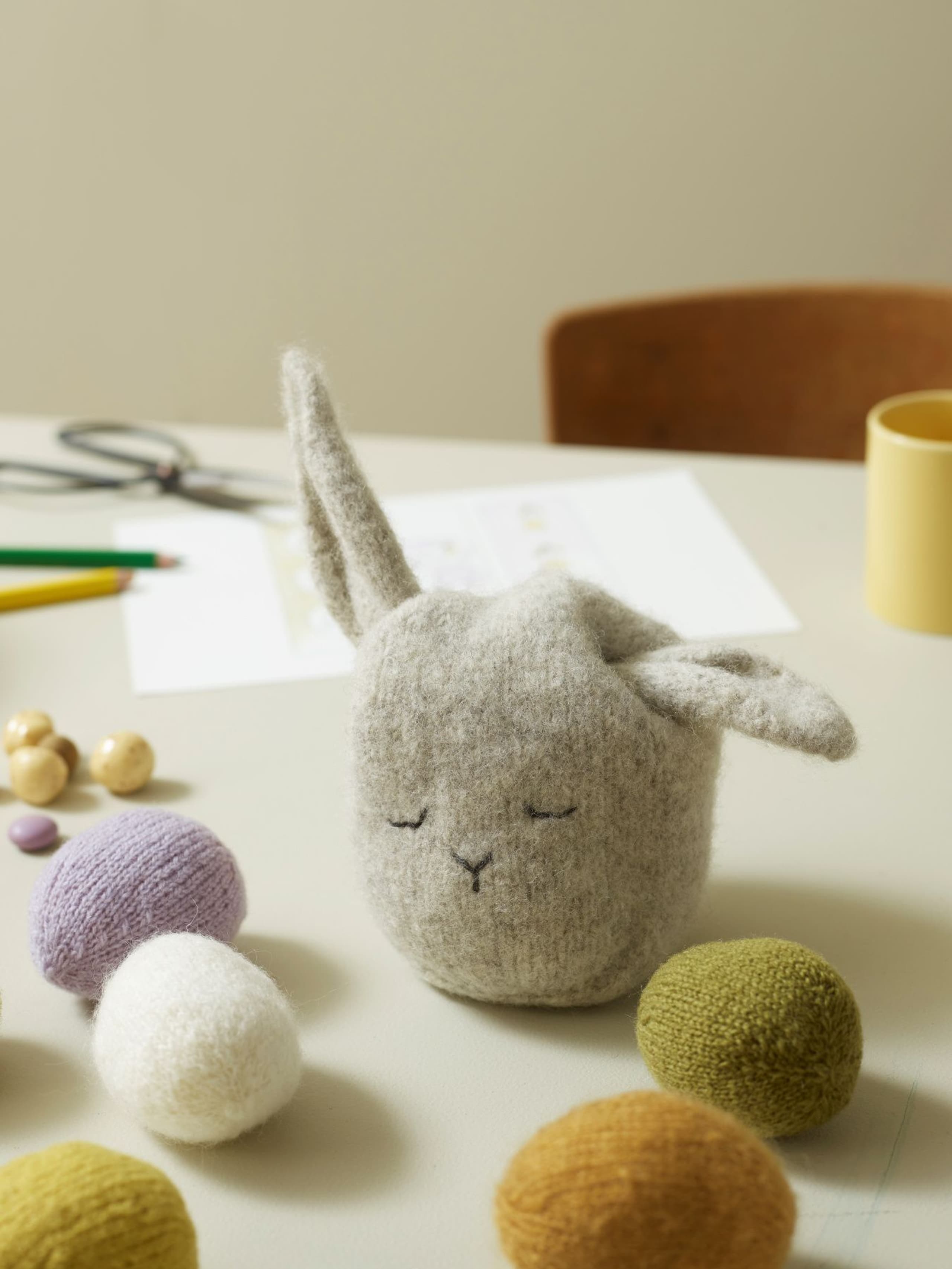 Små egg som kan brukes til eggjakt, eller som pynt i hjemmet. De kan dekoreres i det uendelige, og er et fint prosjekt til restegarnet.
