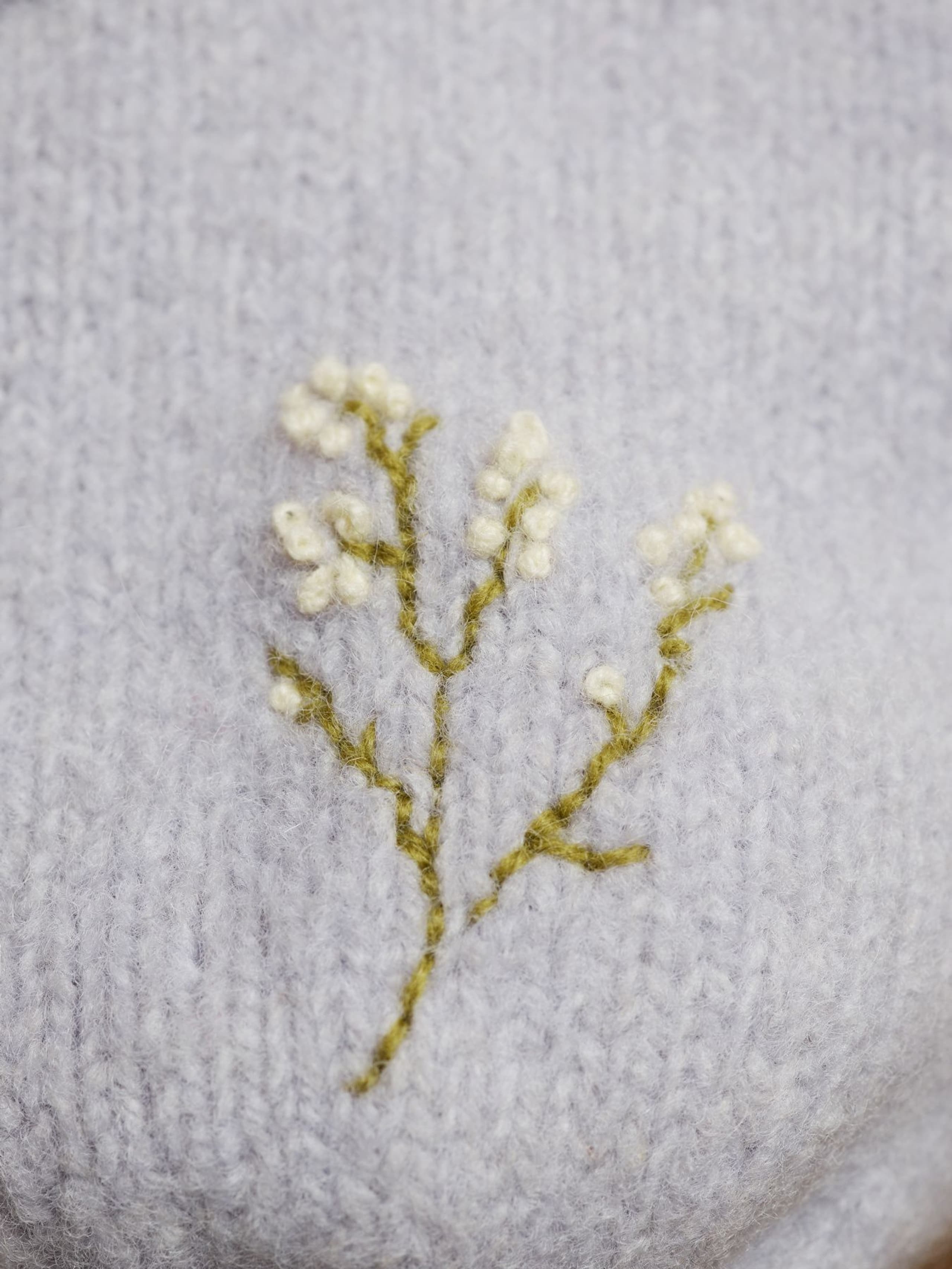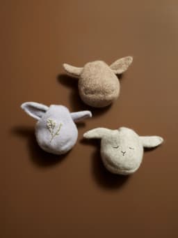 Hareposen strikkes på tykke pinner før den toves. Bruk den som gave til en venn eller som påskeegg til barna. Gjem påskegodt eller noe annet spennende inni og knyt sammen ørene. Bruk den som den er, eller broder den for å gi den det lille ekstra! Vi har laget to varianter – en med hareansikt og en med dekorative blomster.